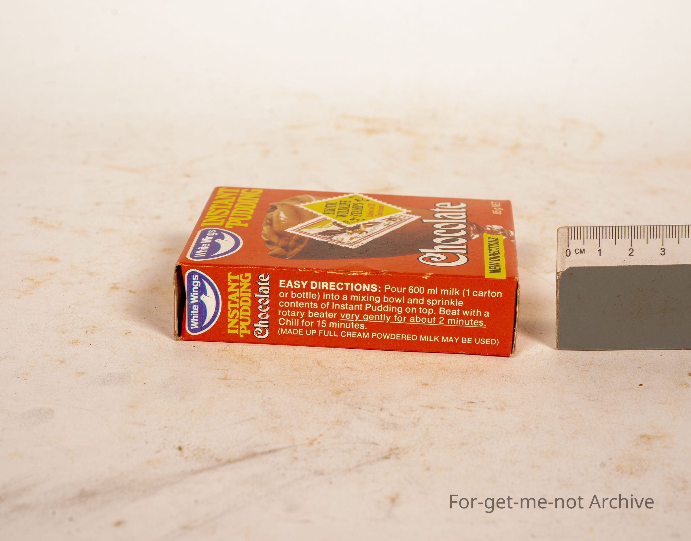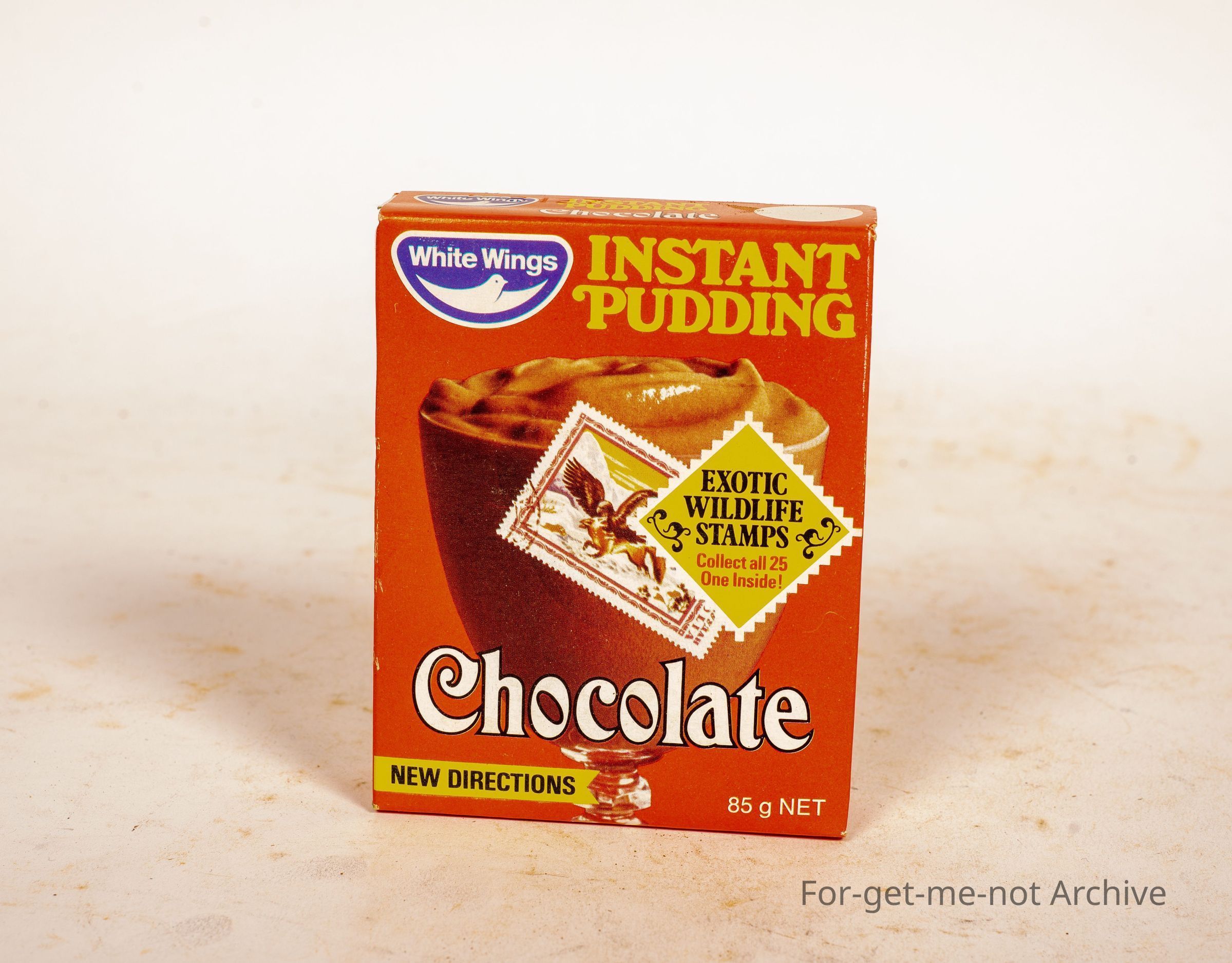 A tin of white wings, instant pudding. This also had a collection of stamps to collect, 25 in all, 1 in each packet.