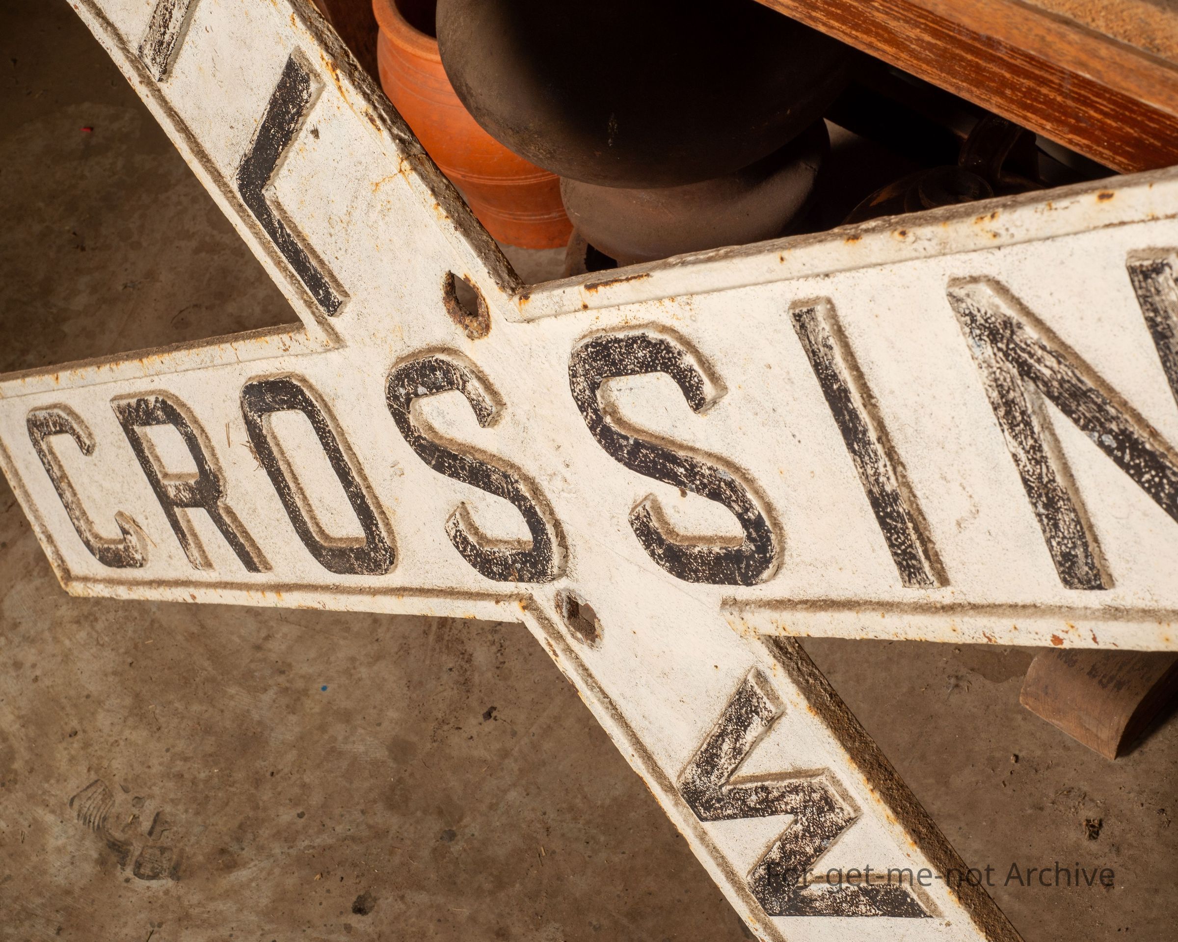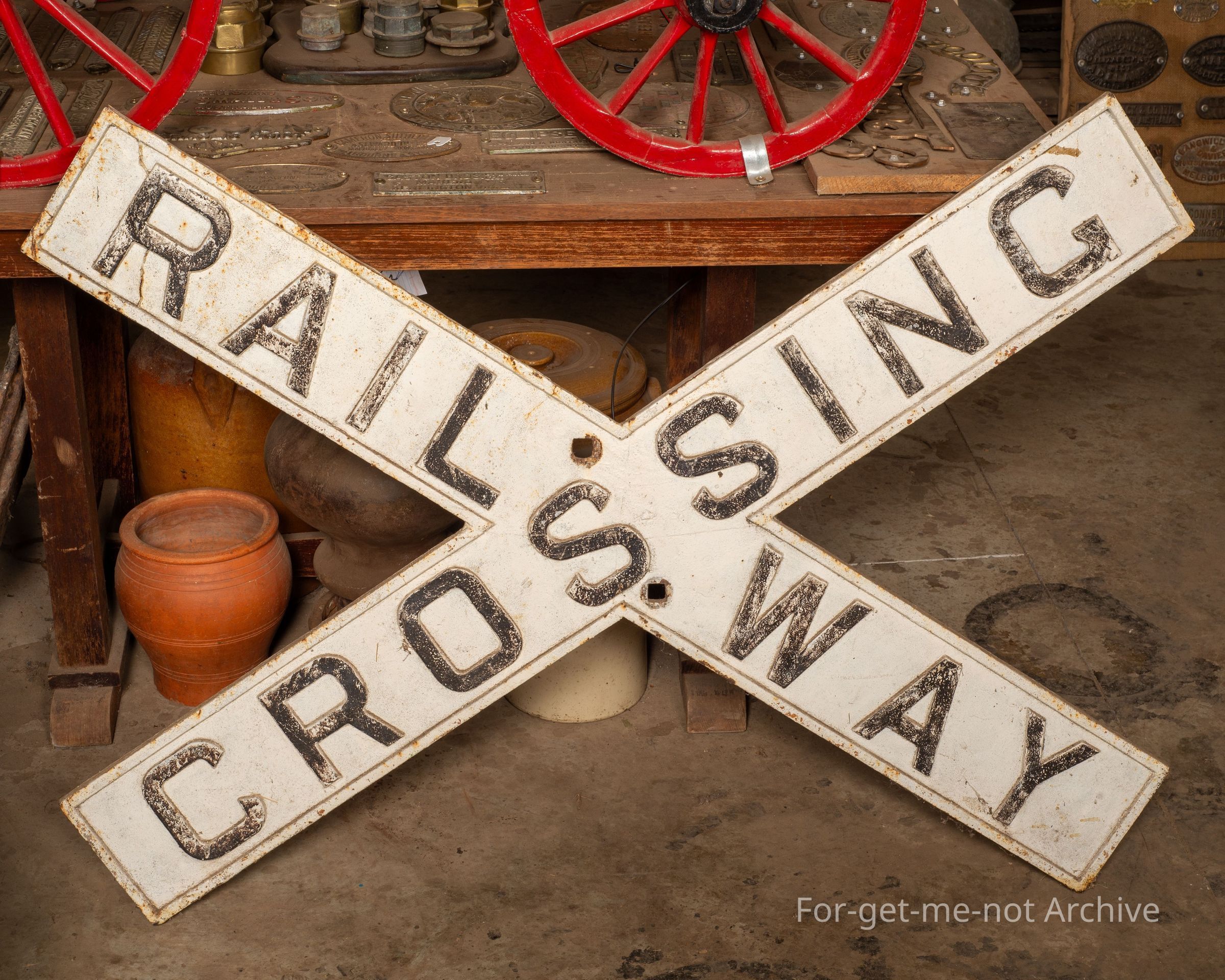 This is one of the original cast iron rail crossing signs in the form of cross arms. Very hard to find these days. This one has never been broken or repaired.
