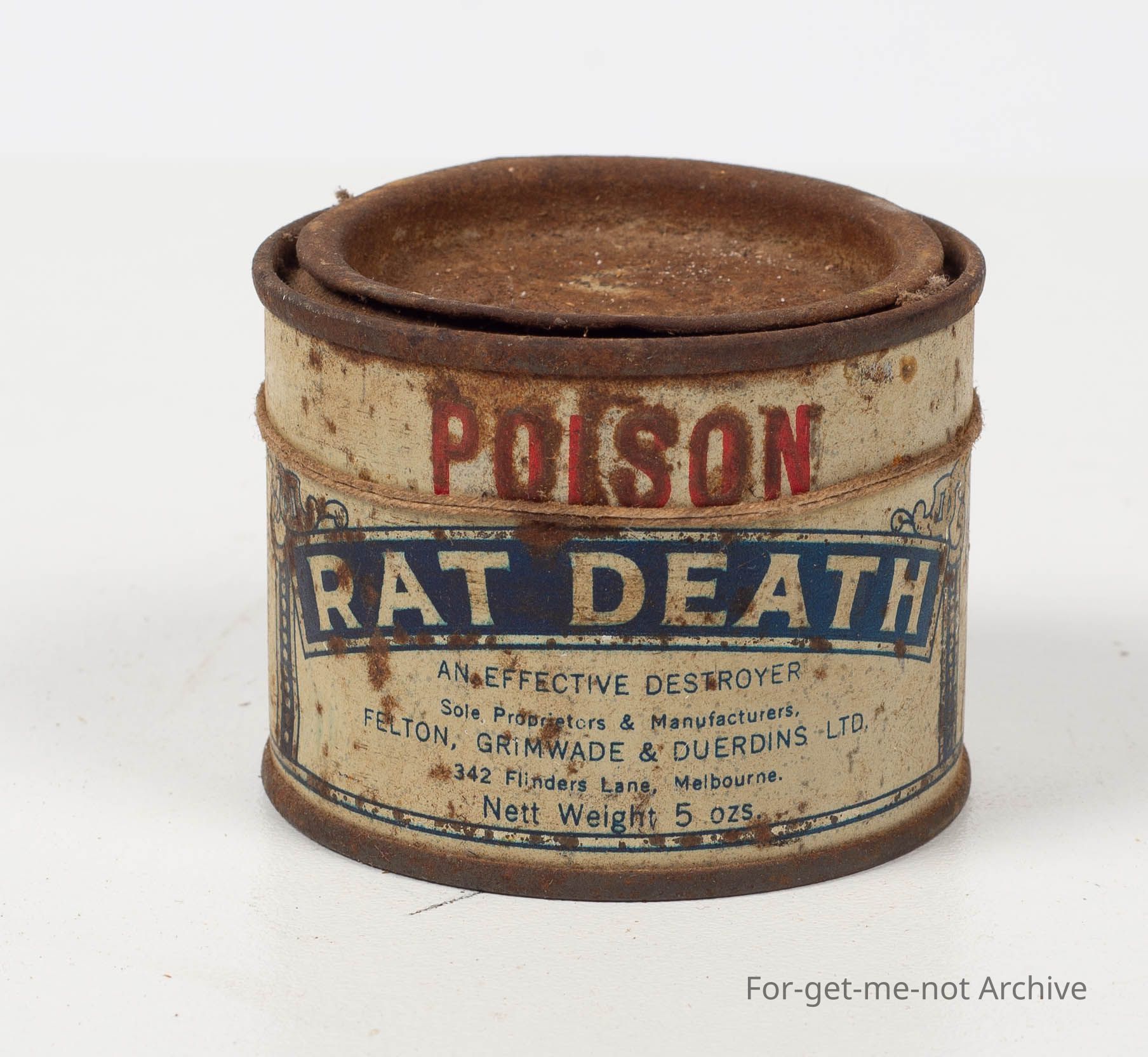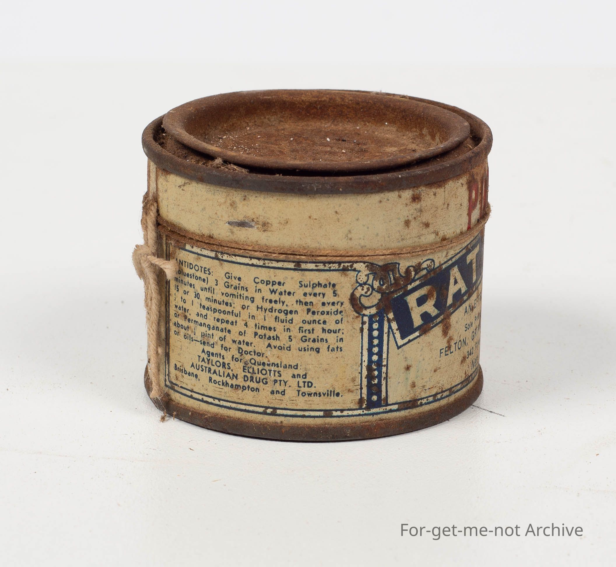 Tin of "Rat Death" Felton Grimwade melbourne