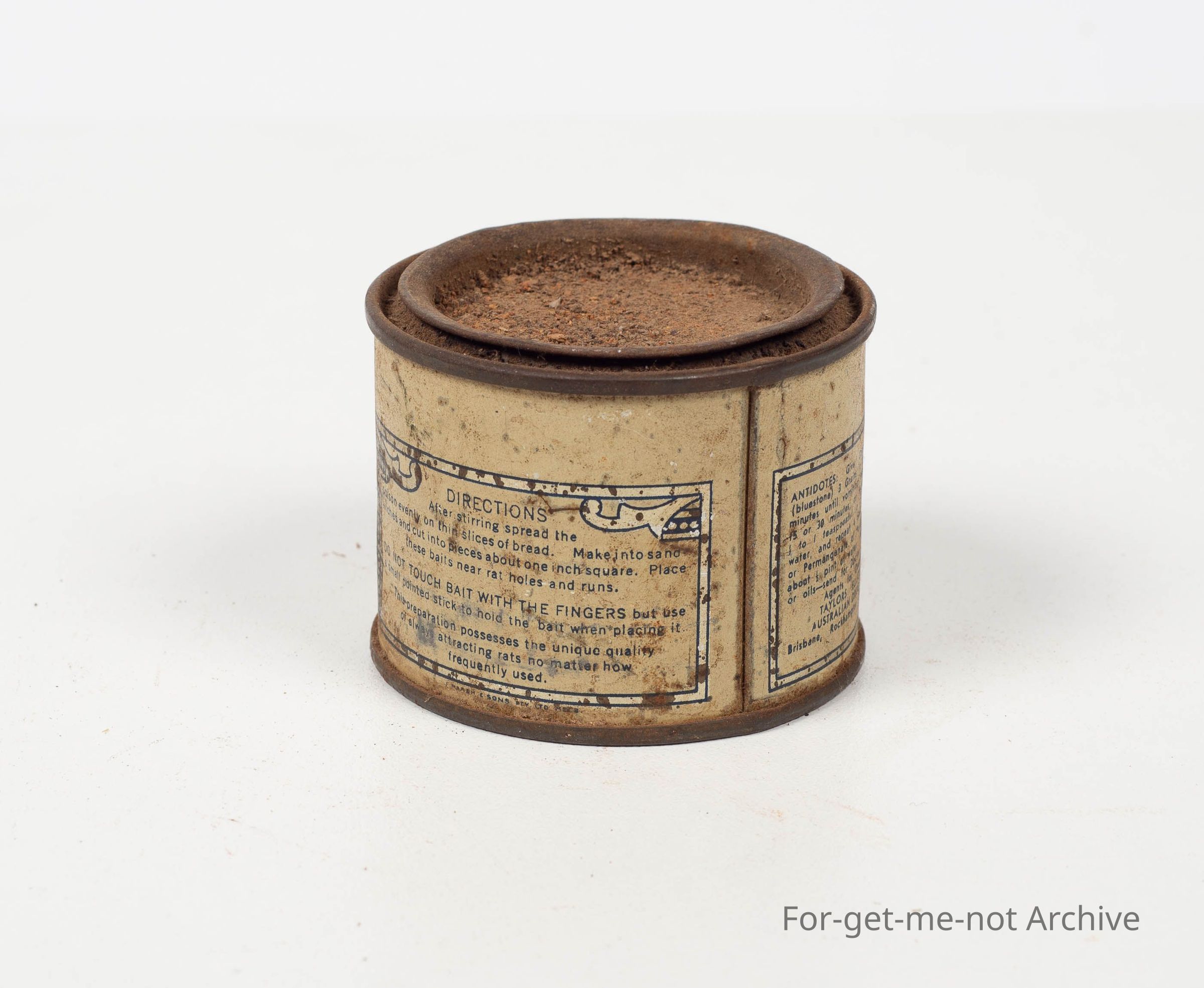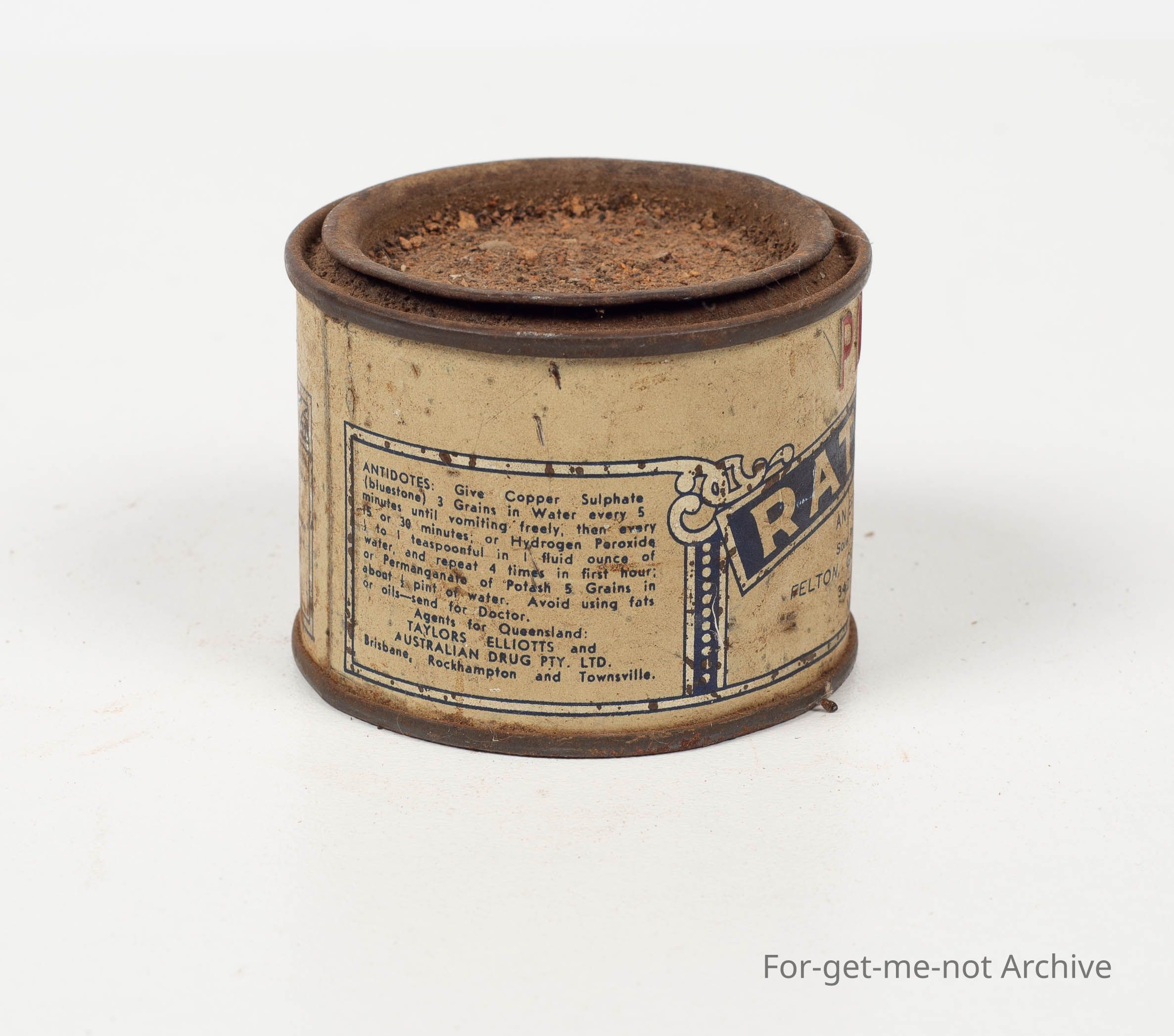 Small tin of rat death poison. Made by Felton Grimwade, Australia.