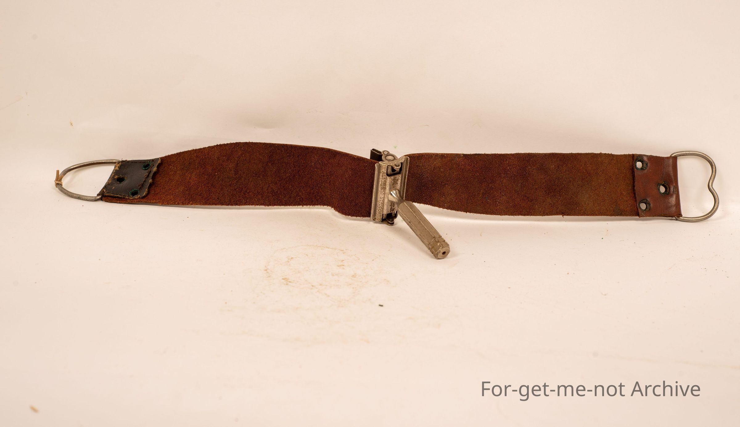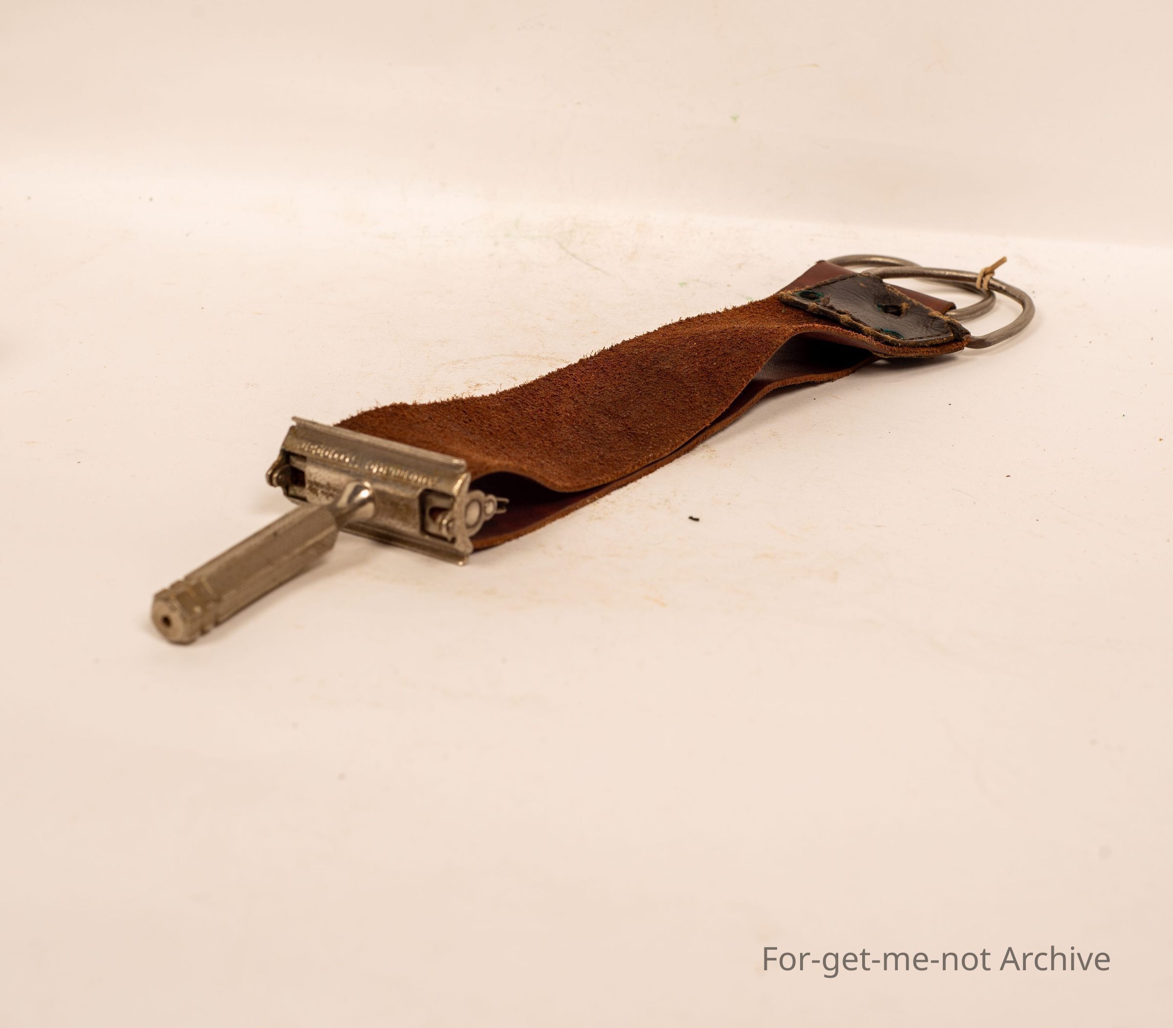 A leather razor blade stropped with razor, made by GEM