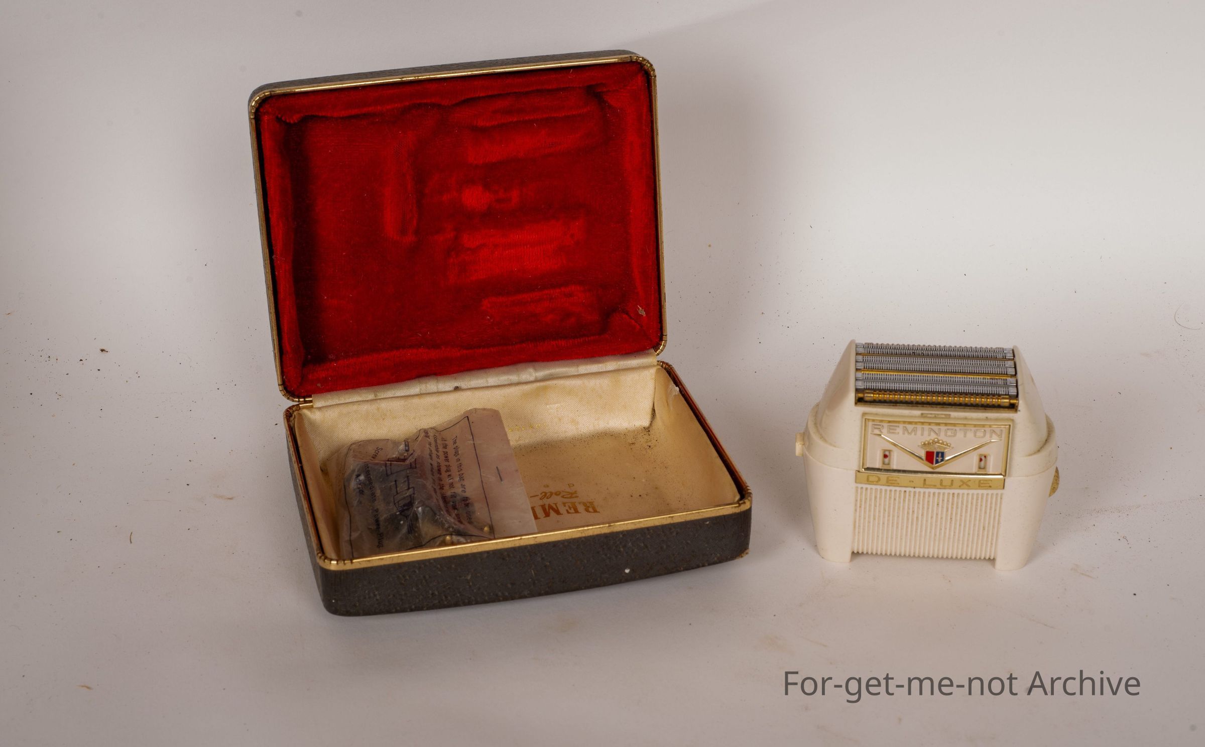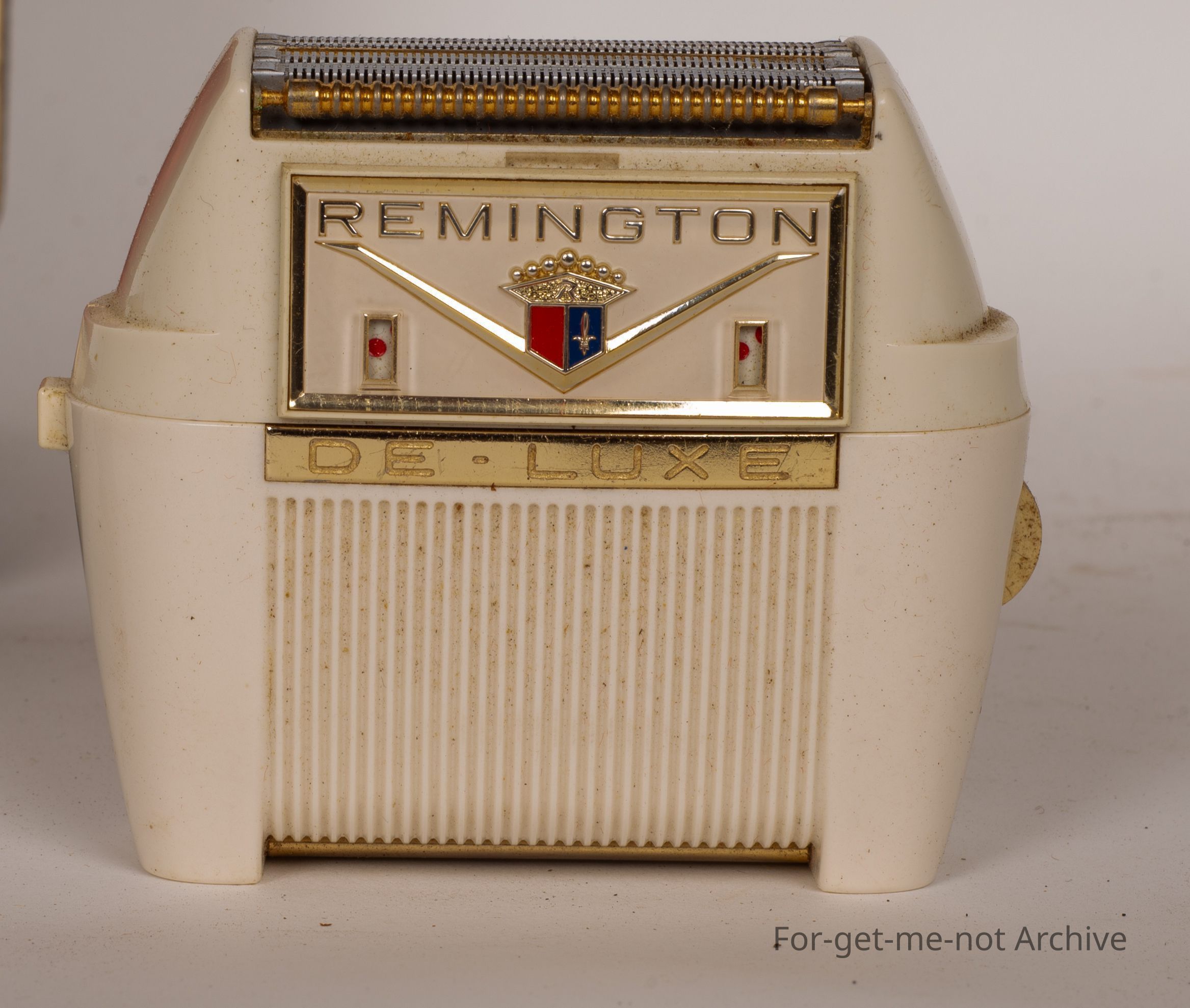 This is a glorious decorated Remington shaver made in America. Very outlandish design from the era of the big flared cars, in perfect order, probably unused