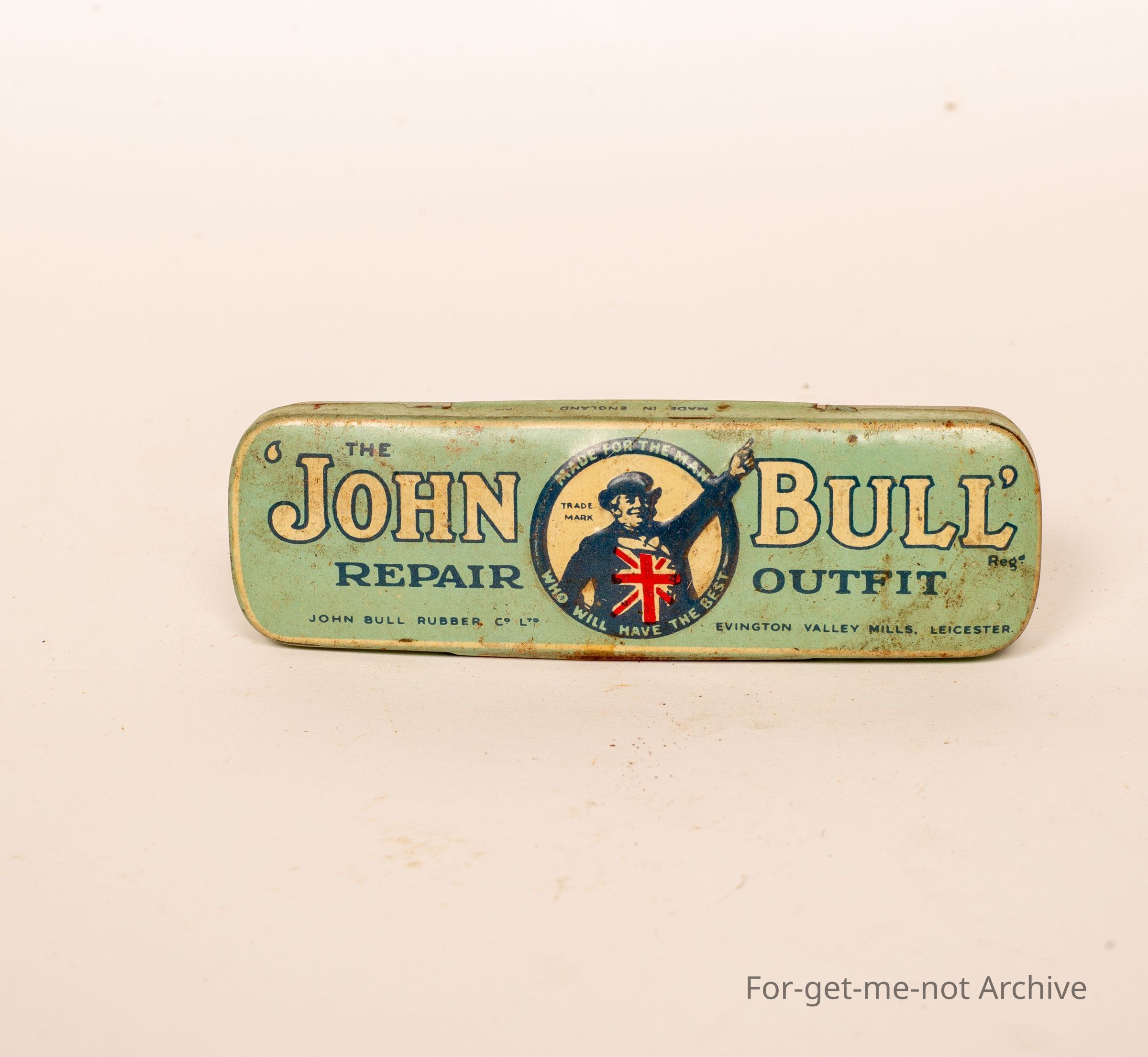 A tin for puncture repair outfit. Description. This tin is from John Bull. Made for the man who will have the best. This is for the repair of punches in push bikes. Quite good condition with an image embossed of John Bull.Collection