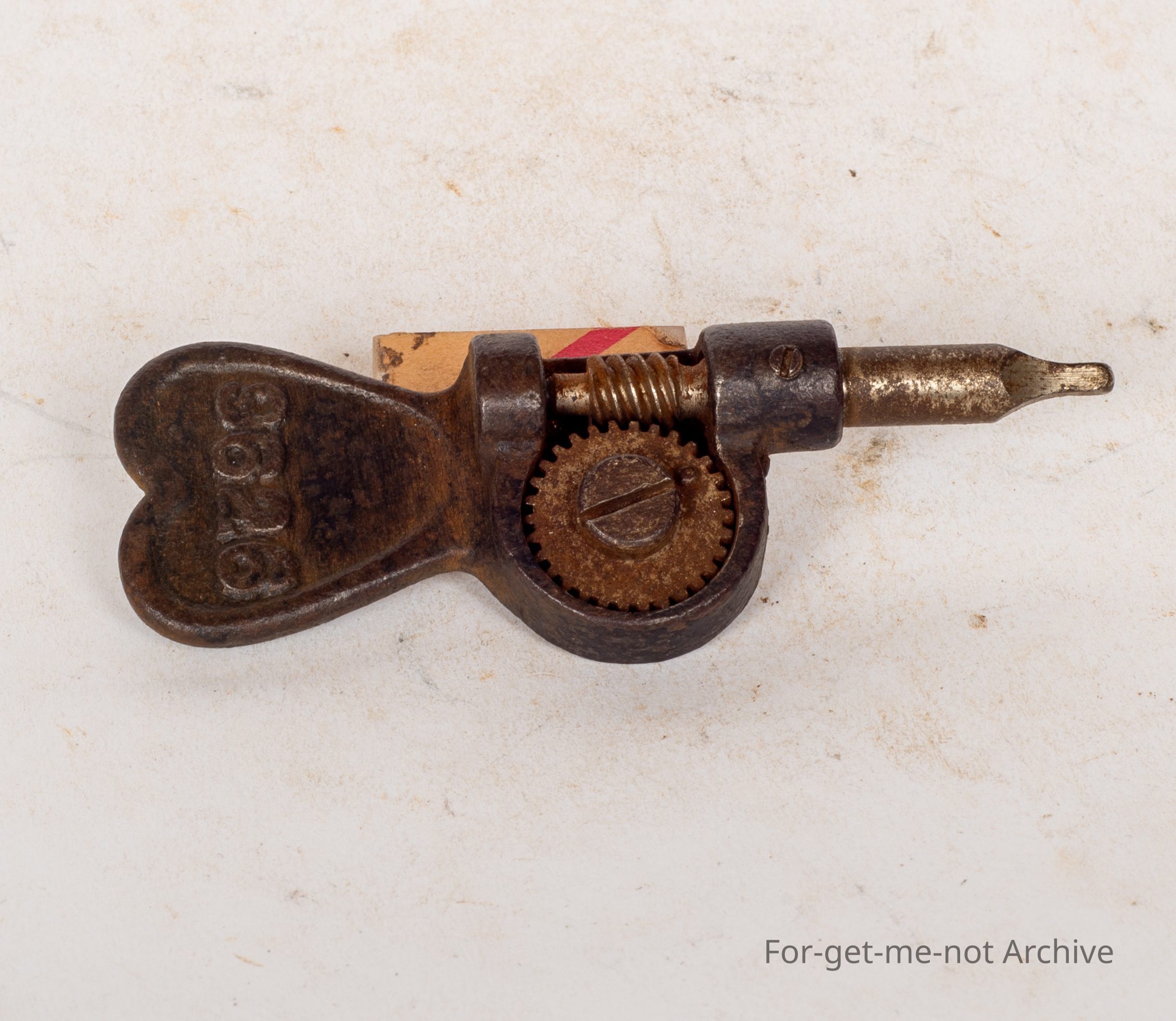 This is a little cast iron rev counter. Very early. The only embossing is 9628. It's got the marker to count the number of revs. Very simple