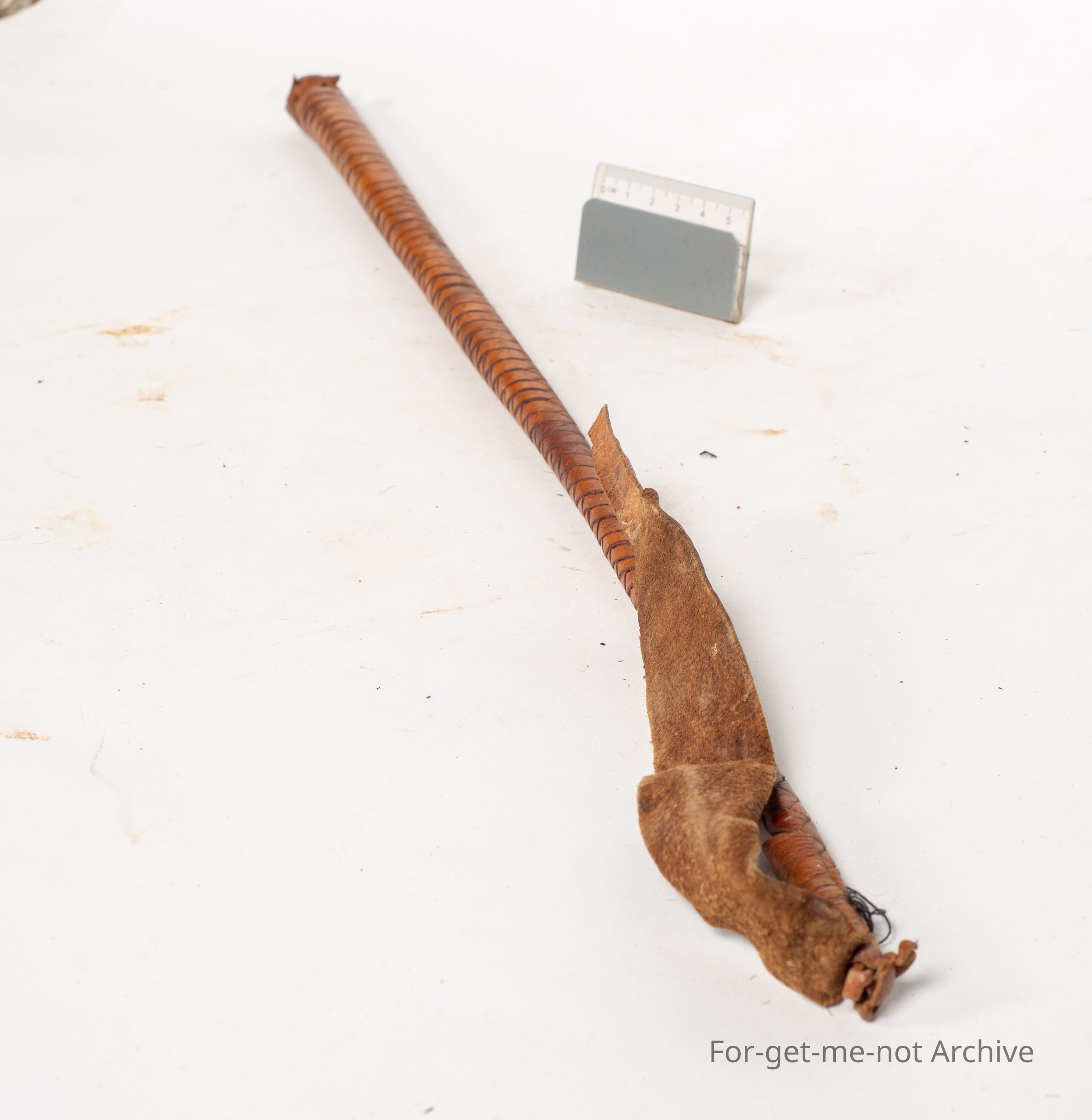 This is a lightweight plaited handle with, strand of leather attached, usually referred to as a rider's crop. Just a lightweight piece