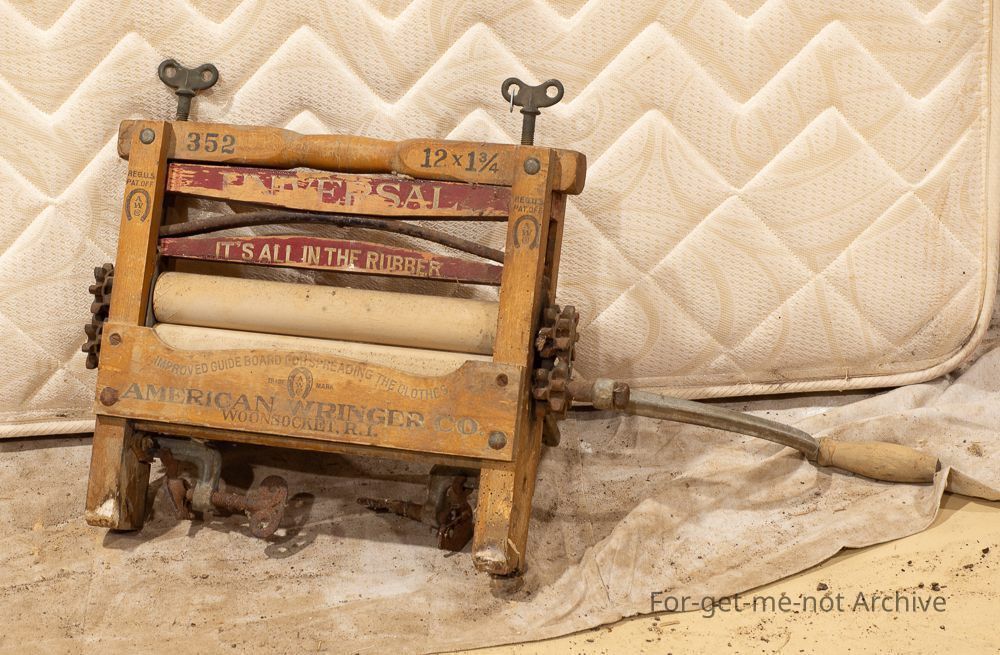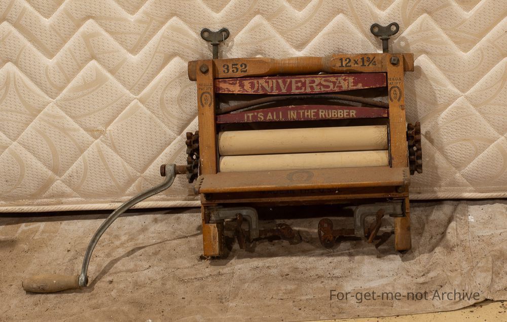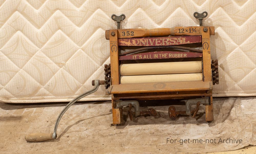 wooden frame, rubber rollers made by the American Ringer Company. Hand operated