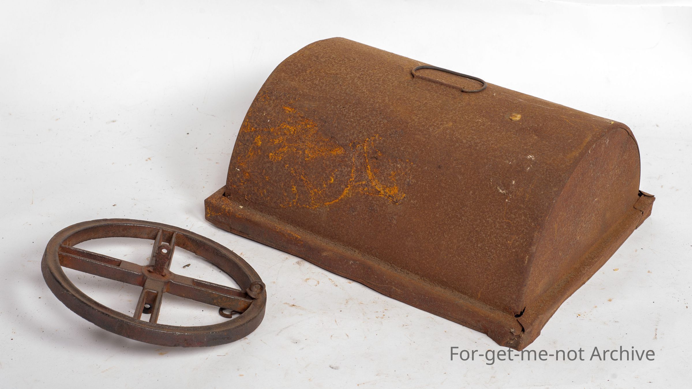 The cover to fit over a roast tin, to enhance the heat. The other piece is the circular piece that fits under a fireplace jack, and rotates back and forth. This piece doesn't have the hooks.Collection