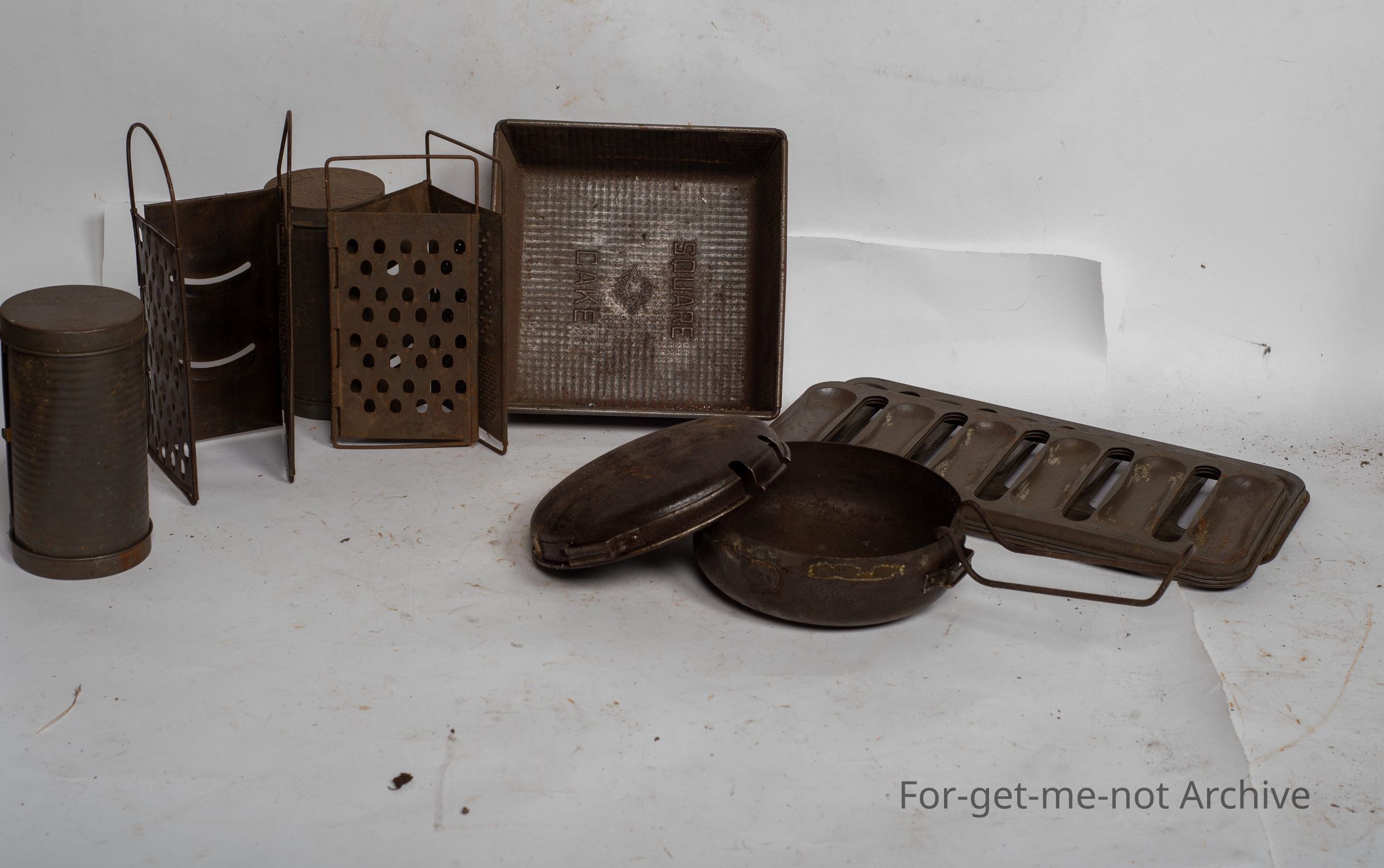 More tinware, cake tins, roasting tins, various graters, nutmeg tins, all, early tinware for the kitchen.