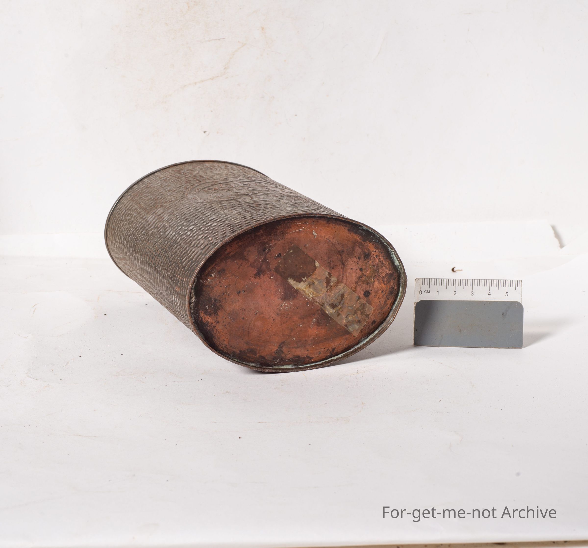 This is a canister, for a Robur Tea. Quite an early one. Beautiful pattern designed like crocodile skin pressed into the tin. Has its original lid. The unusual feature is a copper base to the tin in really good condition.Collection