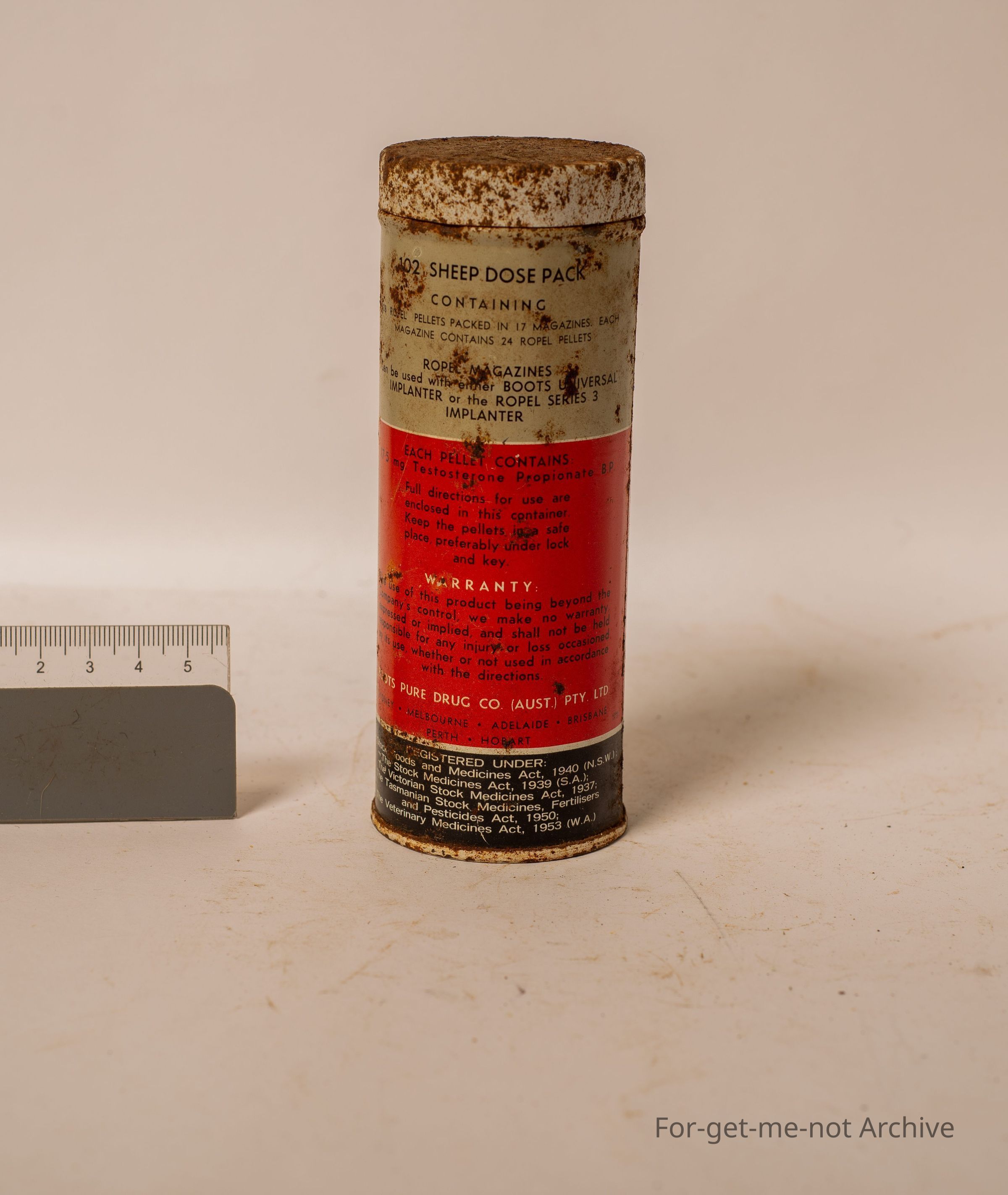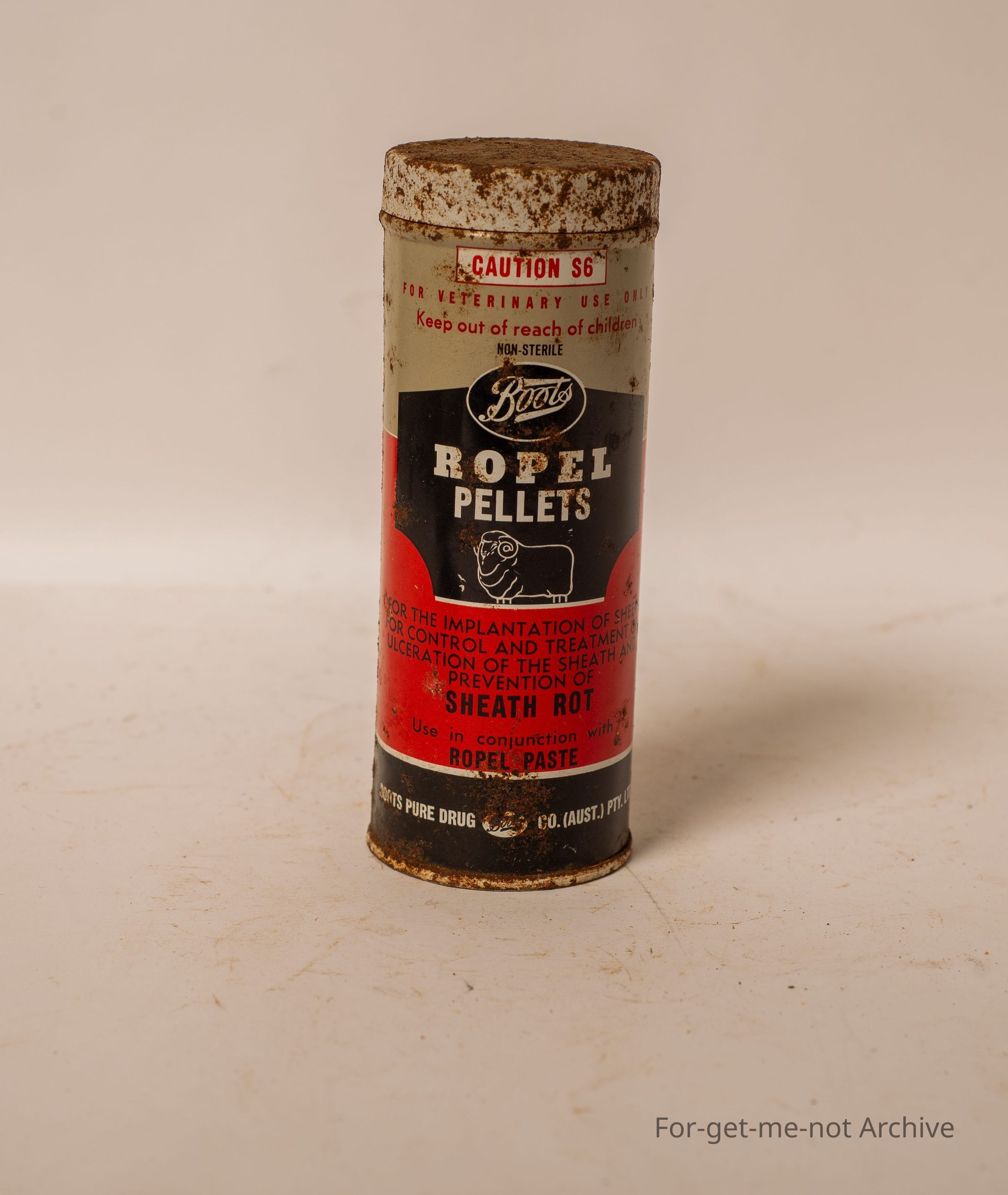 Is a tin of Ropel pellets. These were inserted into sheep for the prevention of sheath rot. No longer used today, but they are made by the boots company.