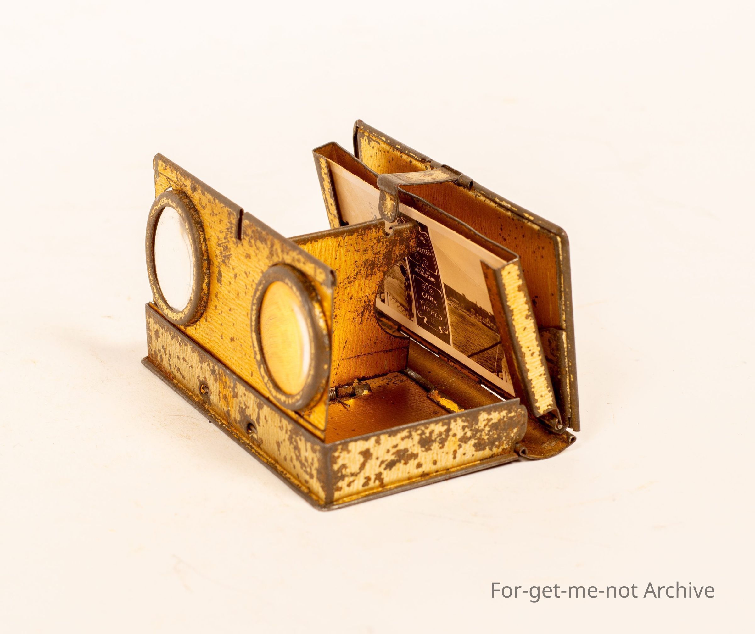 Wonderful piece called a rotoscope. Specially designed to take the small photos and closed of every bracket of the following well known brands of cigarettes. 3 Castles Vanity Fair, Life Regal, Capstan. Rare pieceCollection