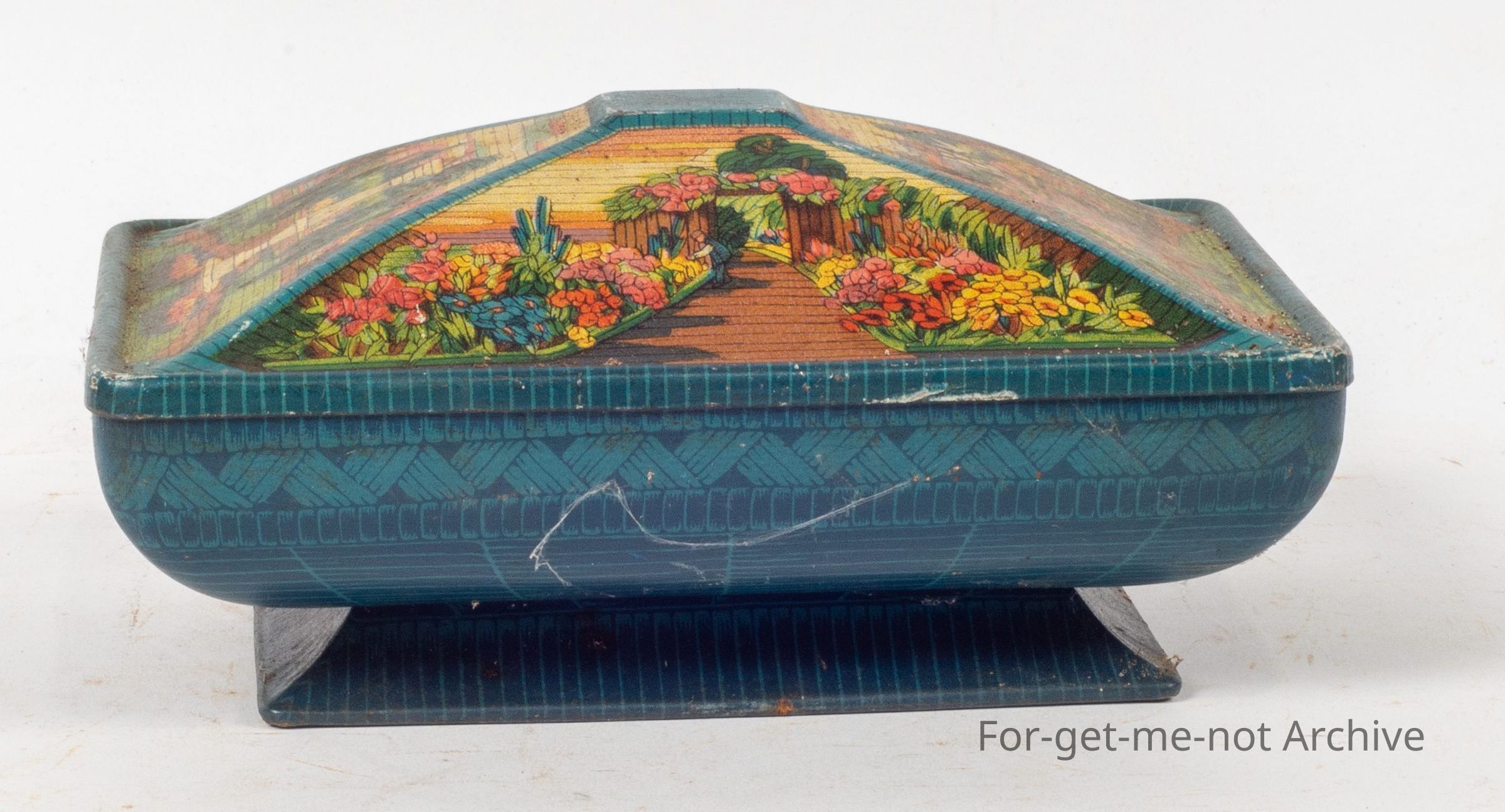 Round Trees Sweets, England, in the shape of a trunk, separate tin base, very good order