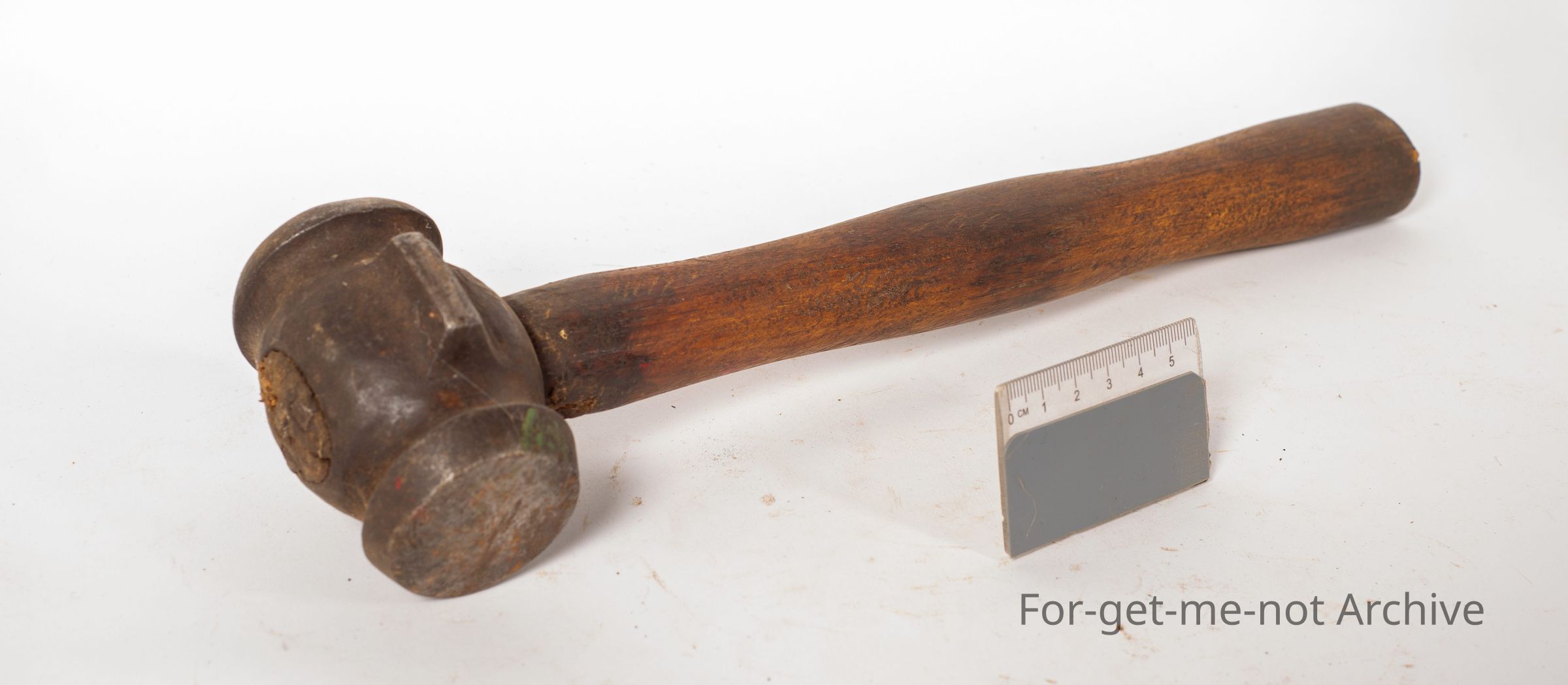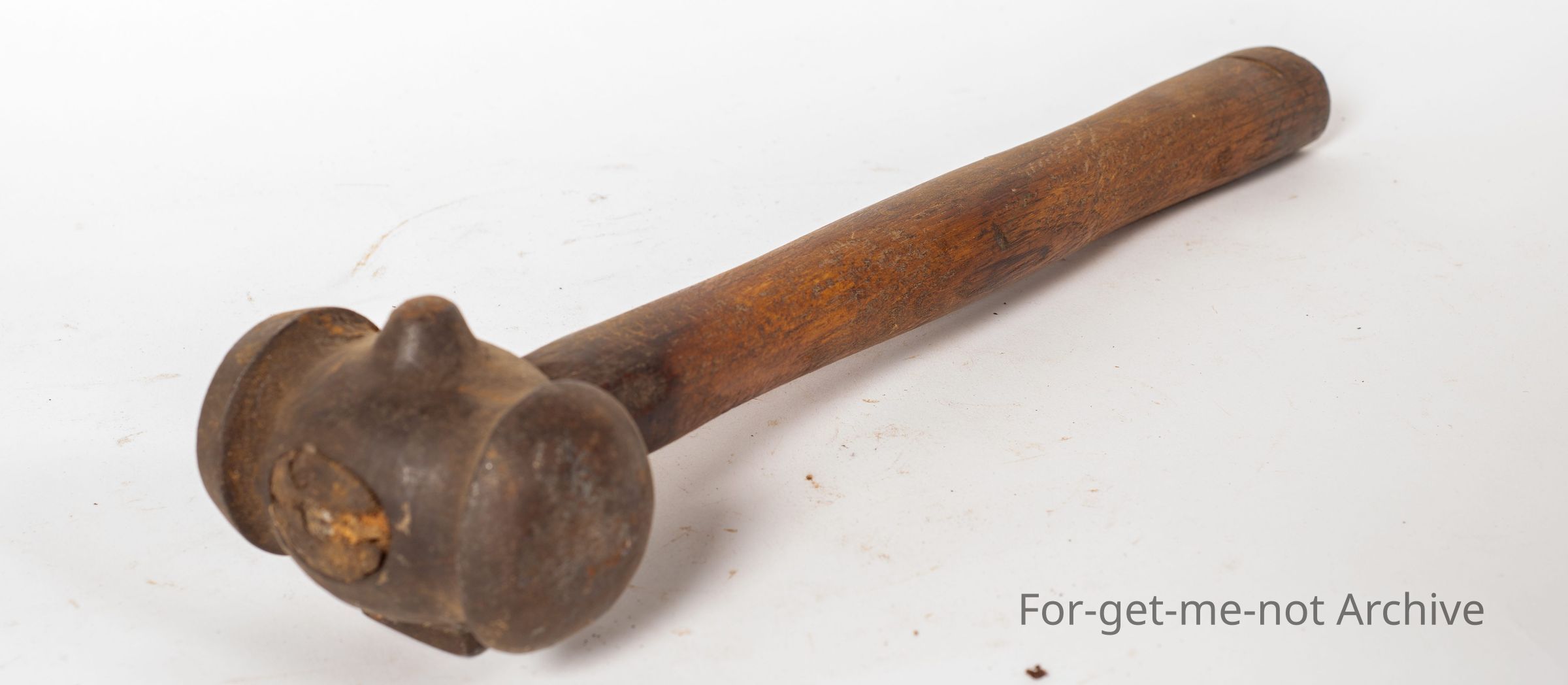 This is a wooden handled, what's called a Rounding Hammer. These were used for farriers when shaping horse shoes. No stamping or anything else but then identified by several people. Quite an unusual tool in very good condition.Collection