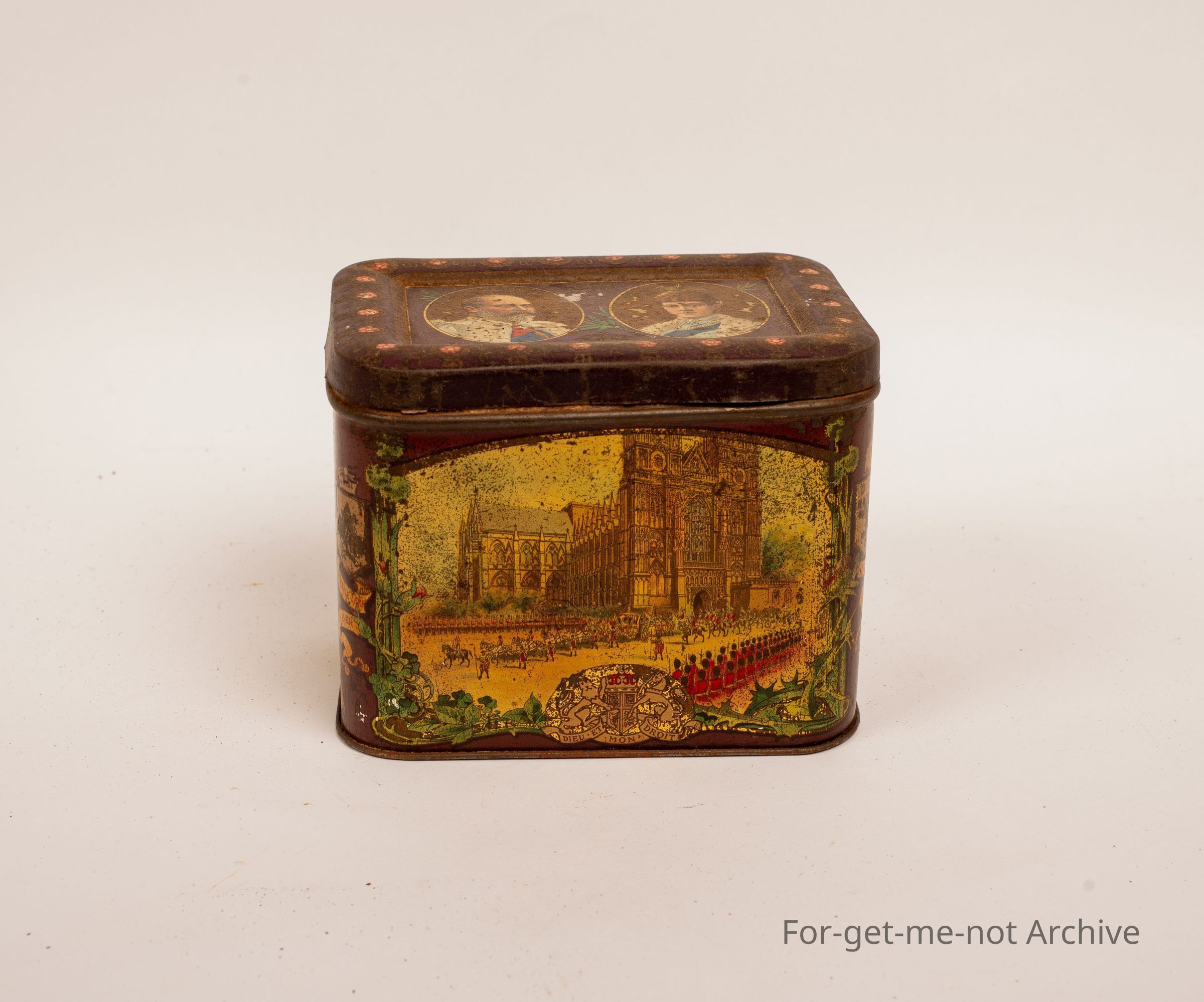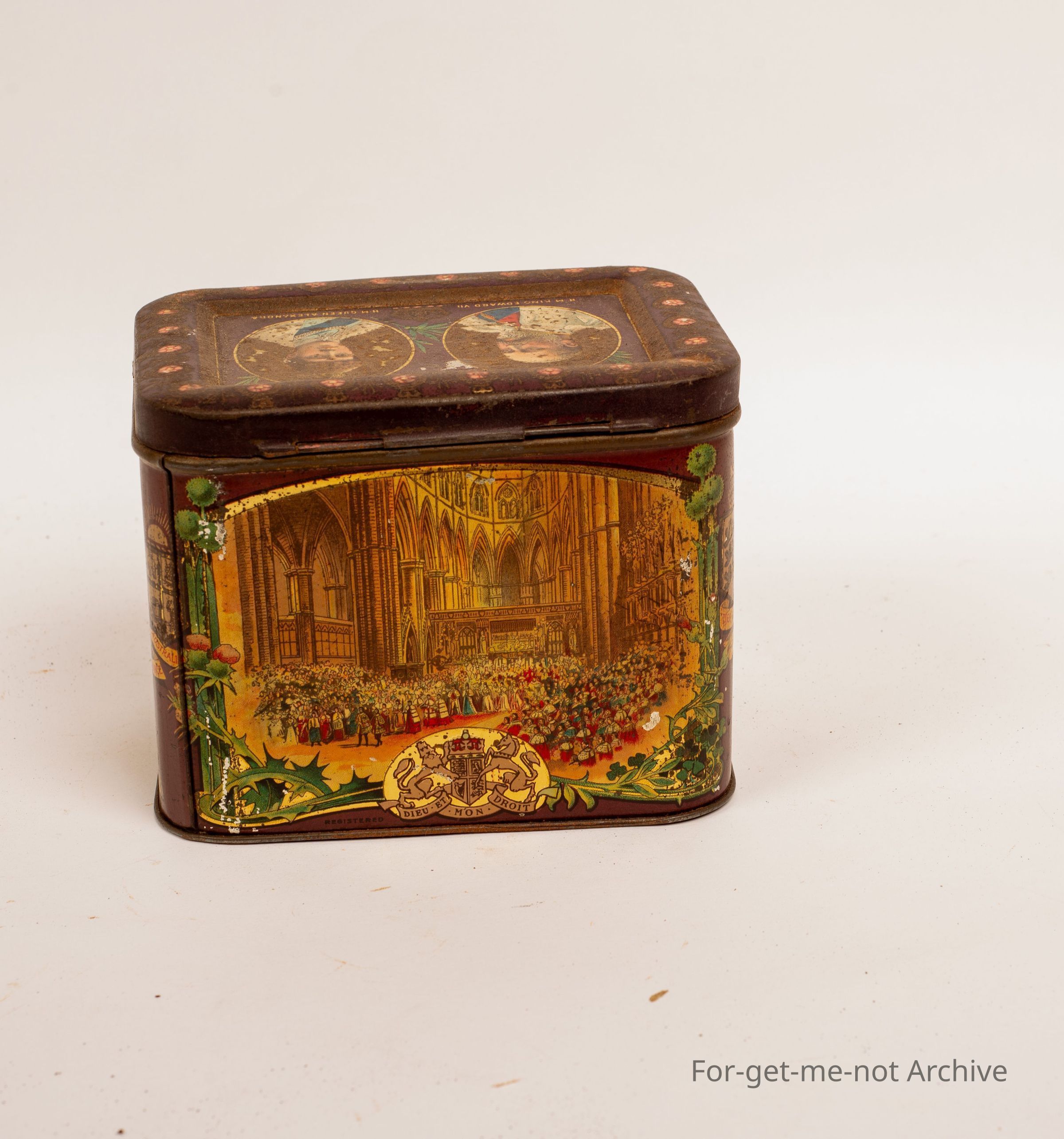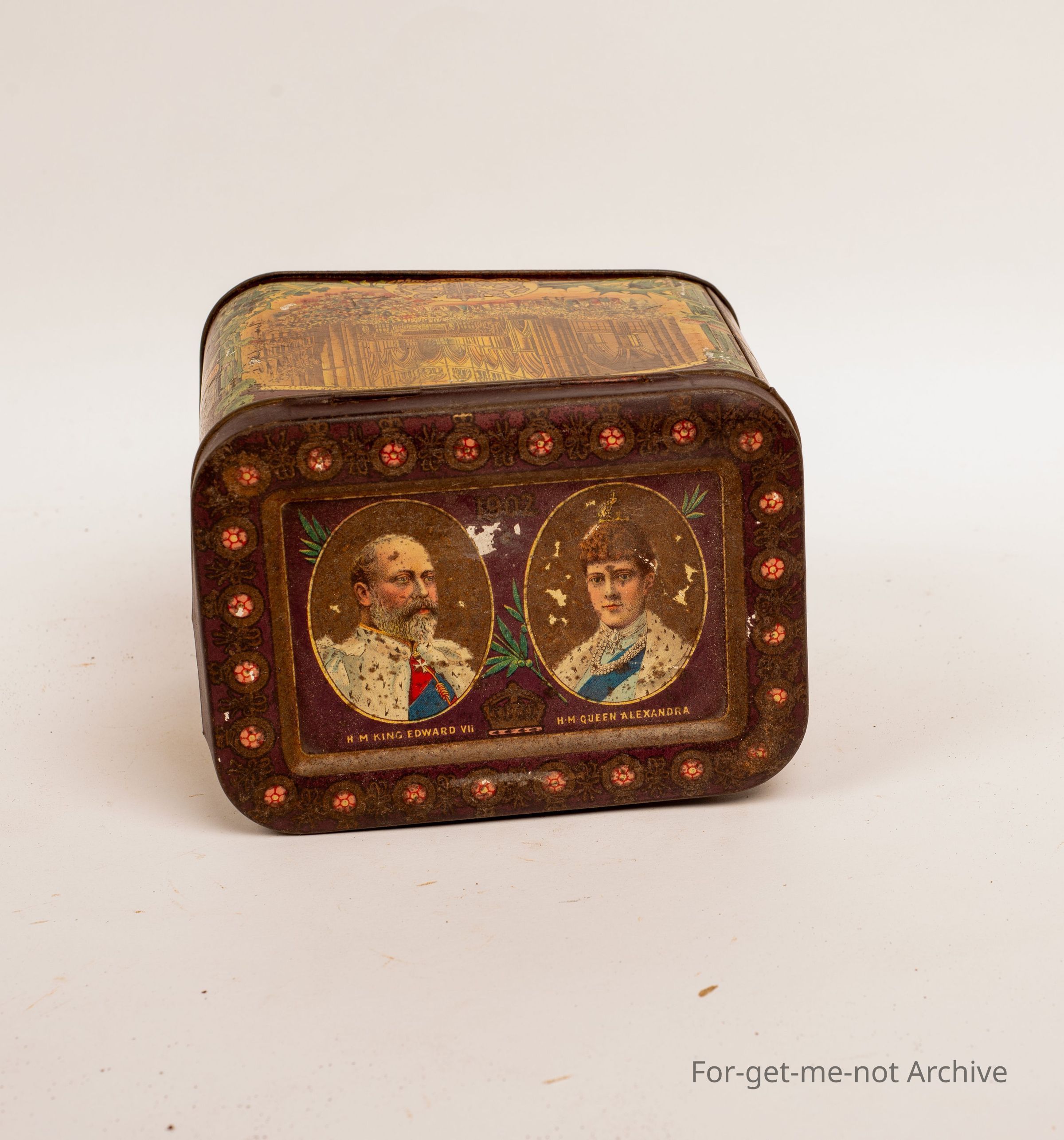 Biscuit tin featuring King Edward and Queen Alexandra 1902 probably featuring the opening of parliament in UK that year after Queen Victoria's death