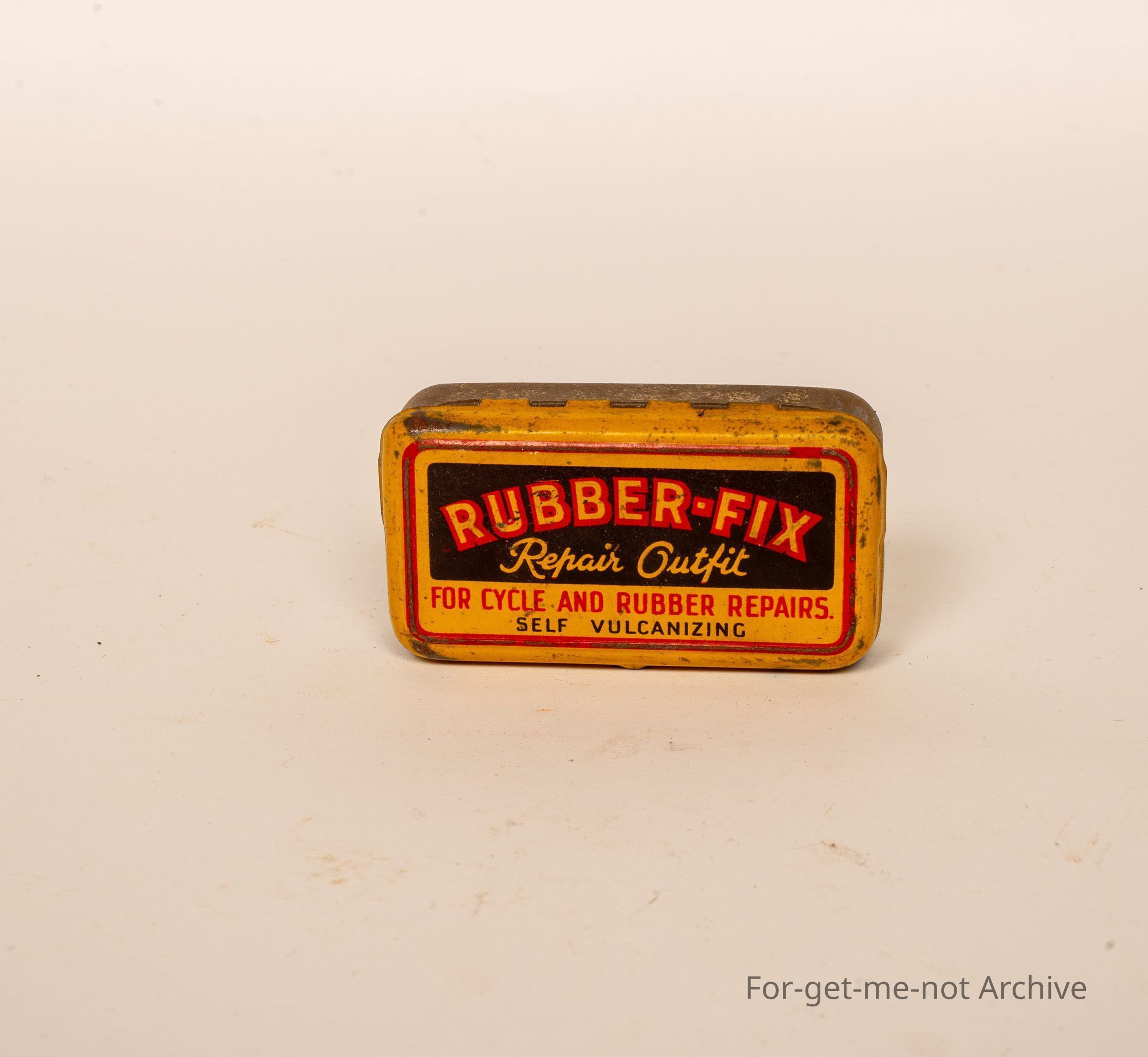 A tin for Cycle Puncture Repair Outfits. . this is called Rubberfix Repair Outfit for Cycle and Rubber Repairs Self Vulcanizing with contents.