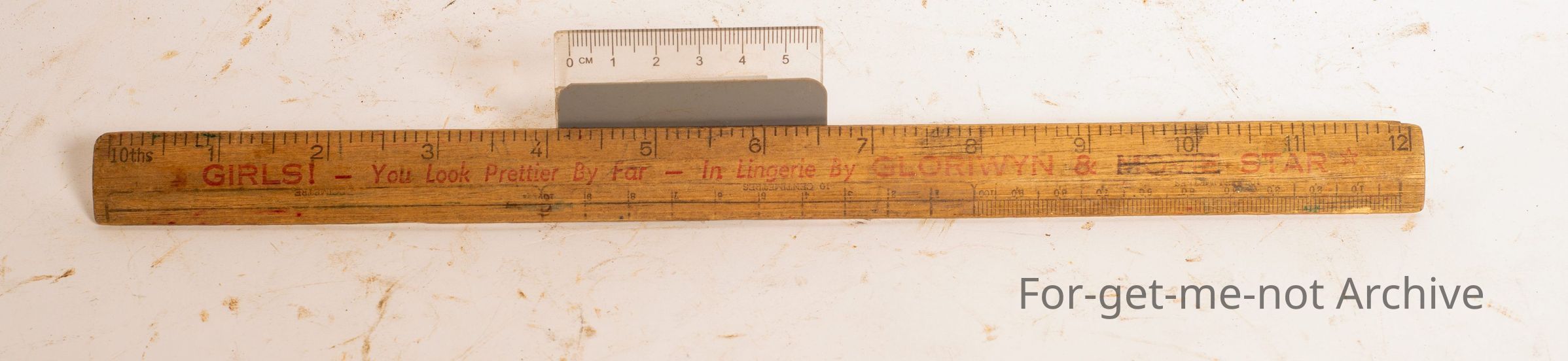 This is an advertising ruler for . Gloriwyn and Movie Star. Lingerie for girls.