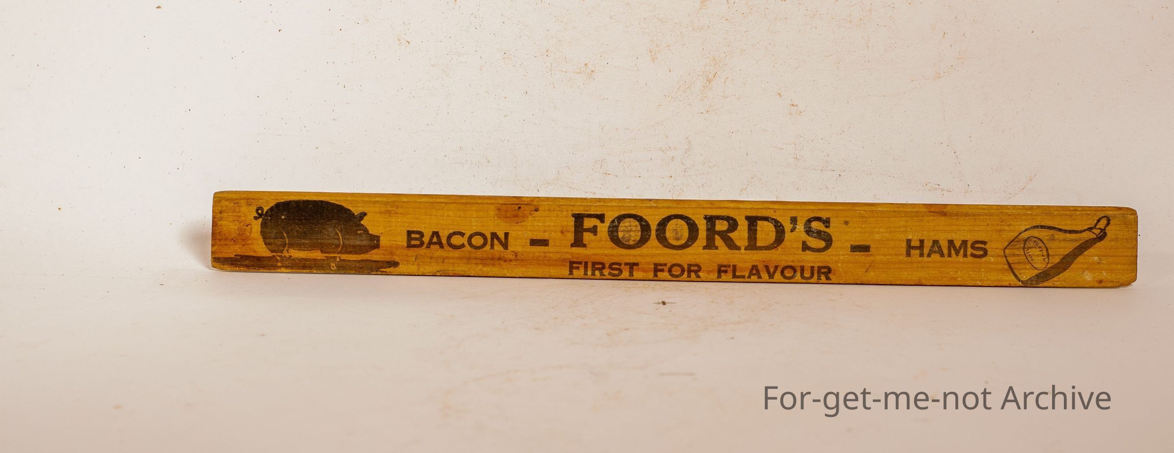 Wooden Advertising Ruler, Advertising Foords, Bacon and Hams Ballarat First For Flavour, very, very rare piece.
