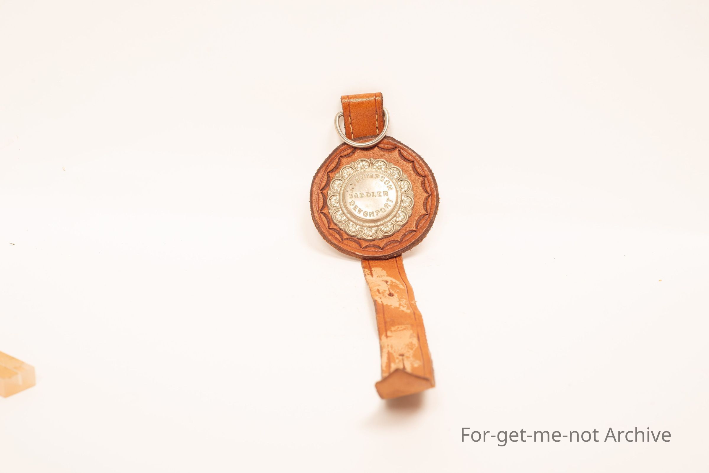 Sadler's Plaque, Thompson, J. Thompson, Devonport Saddler. Never been used. Very decorative on, a piece of leather to hang on a saddle.