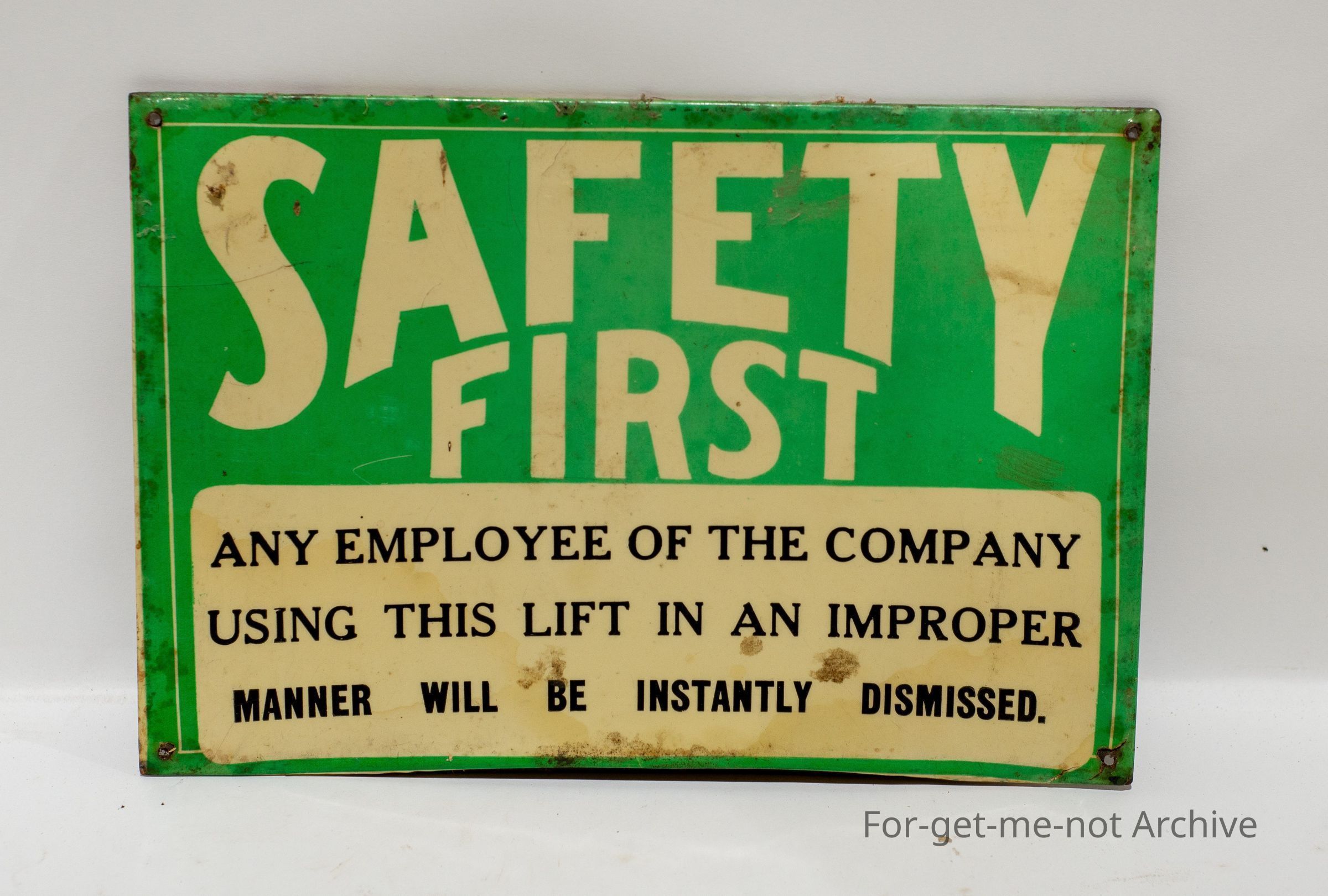 Celphane covered factory sign reminding employees of safety and potential dismissal
