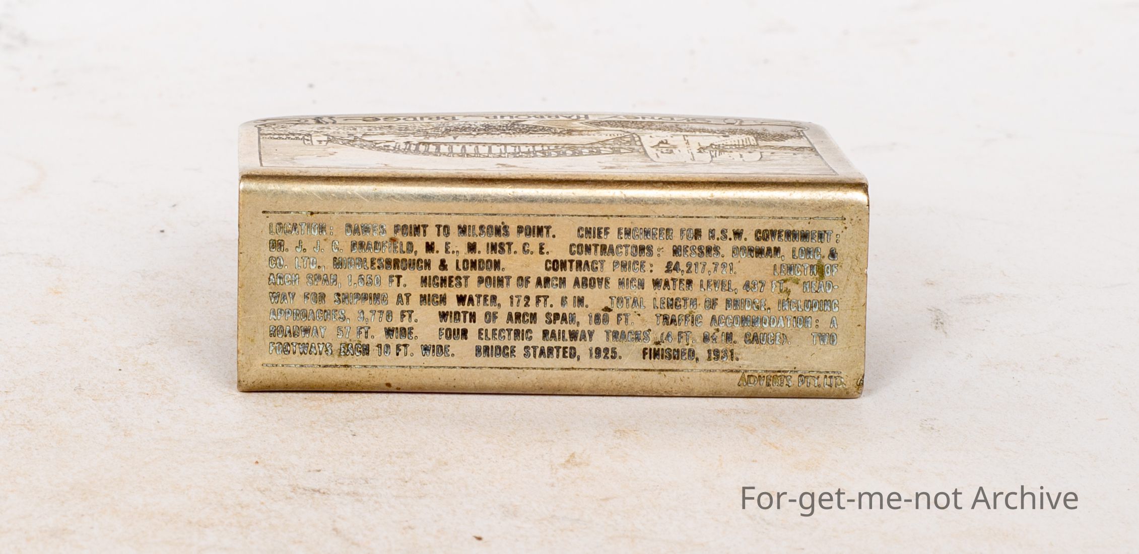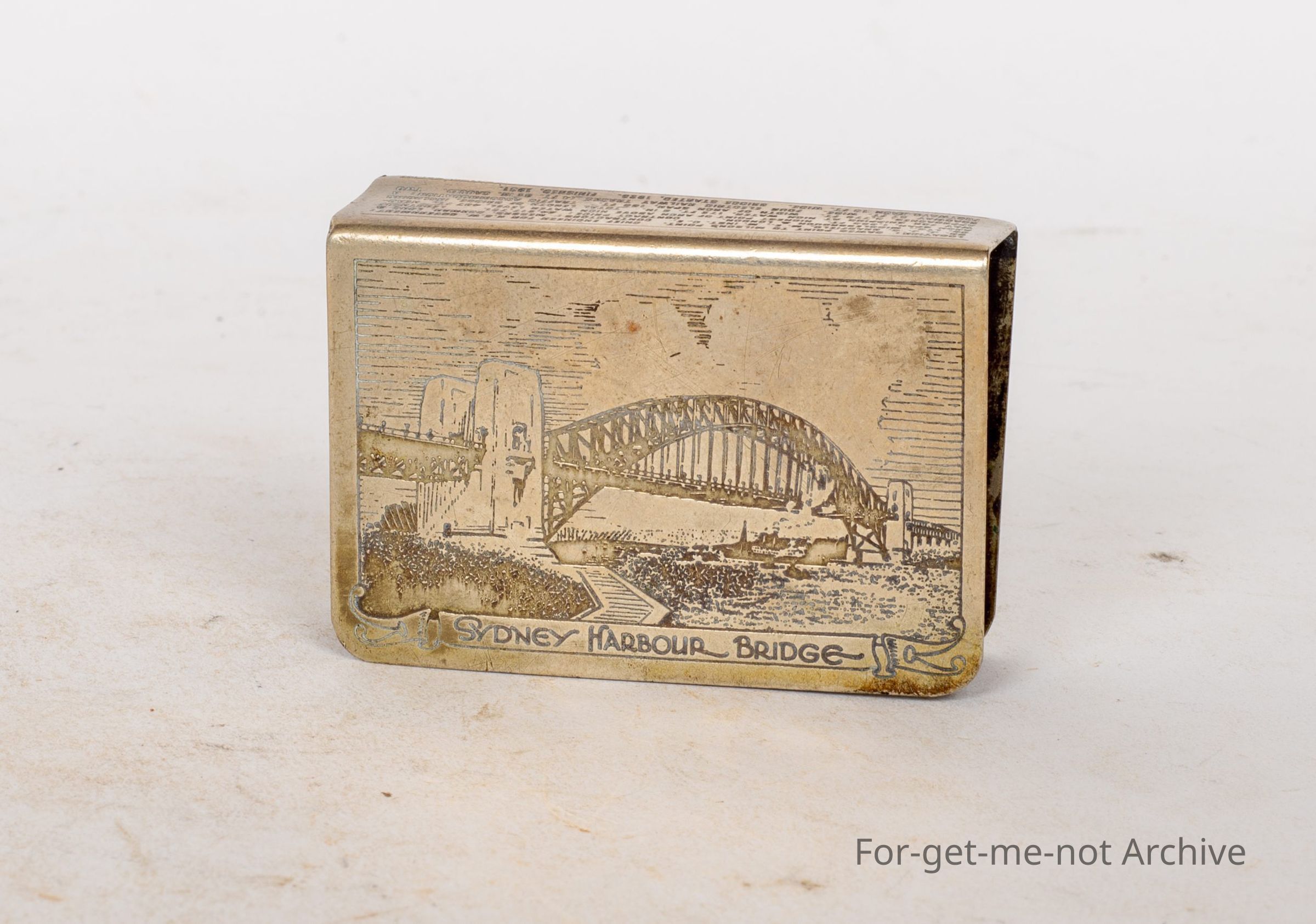 Cover for safety matches, Sydney Harbour Bridge, both sides, all the stats of building the bridge on the back. An amazing piece.