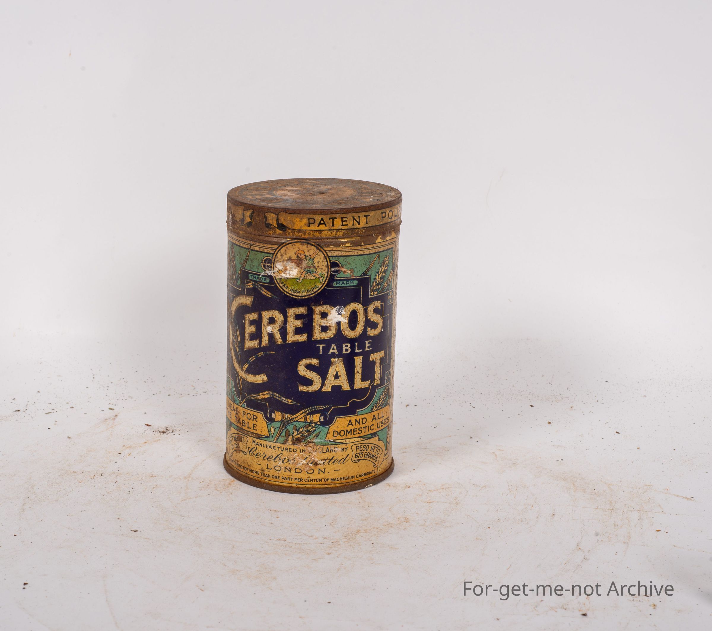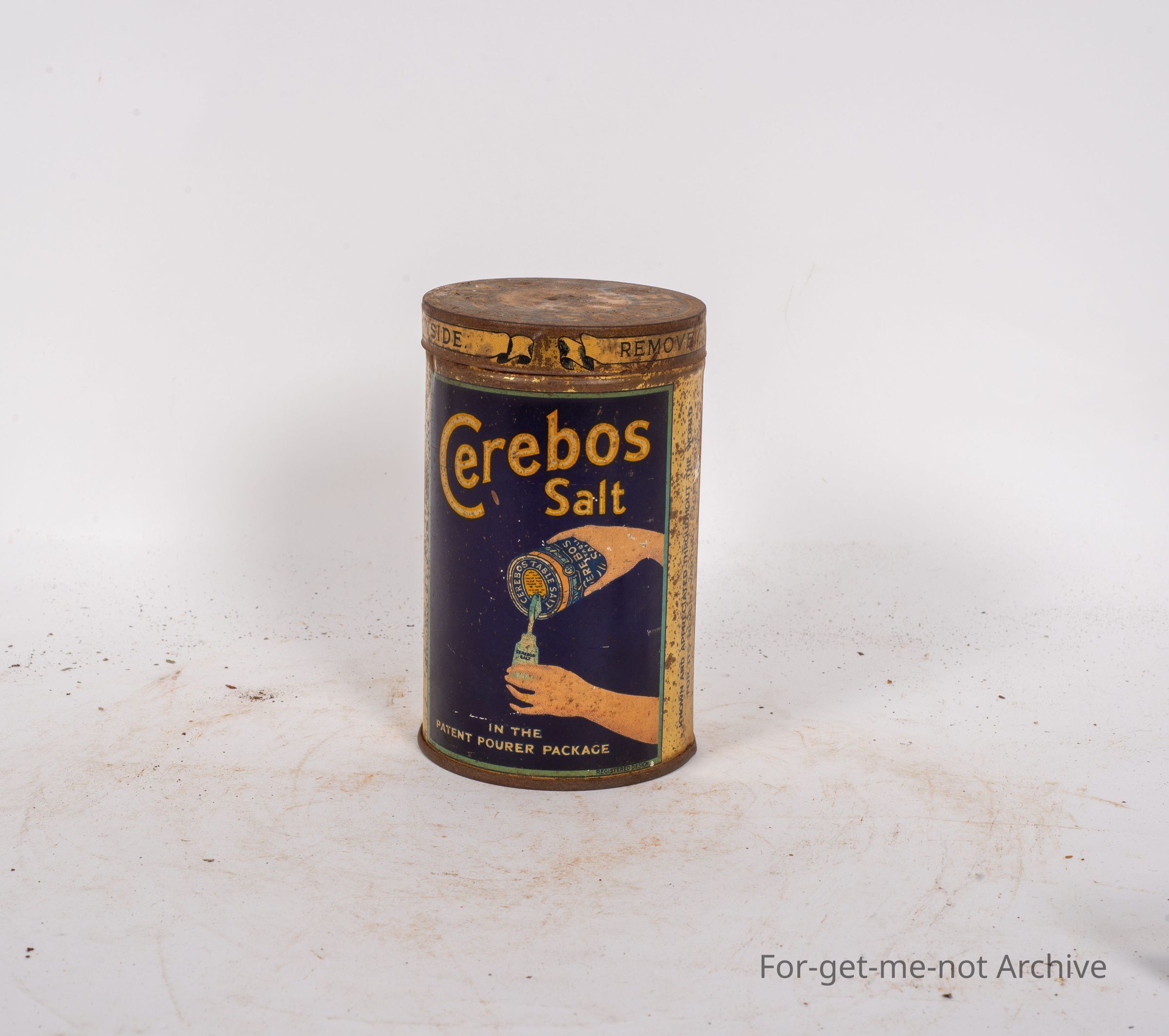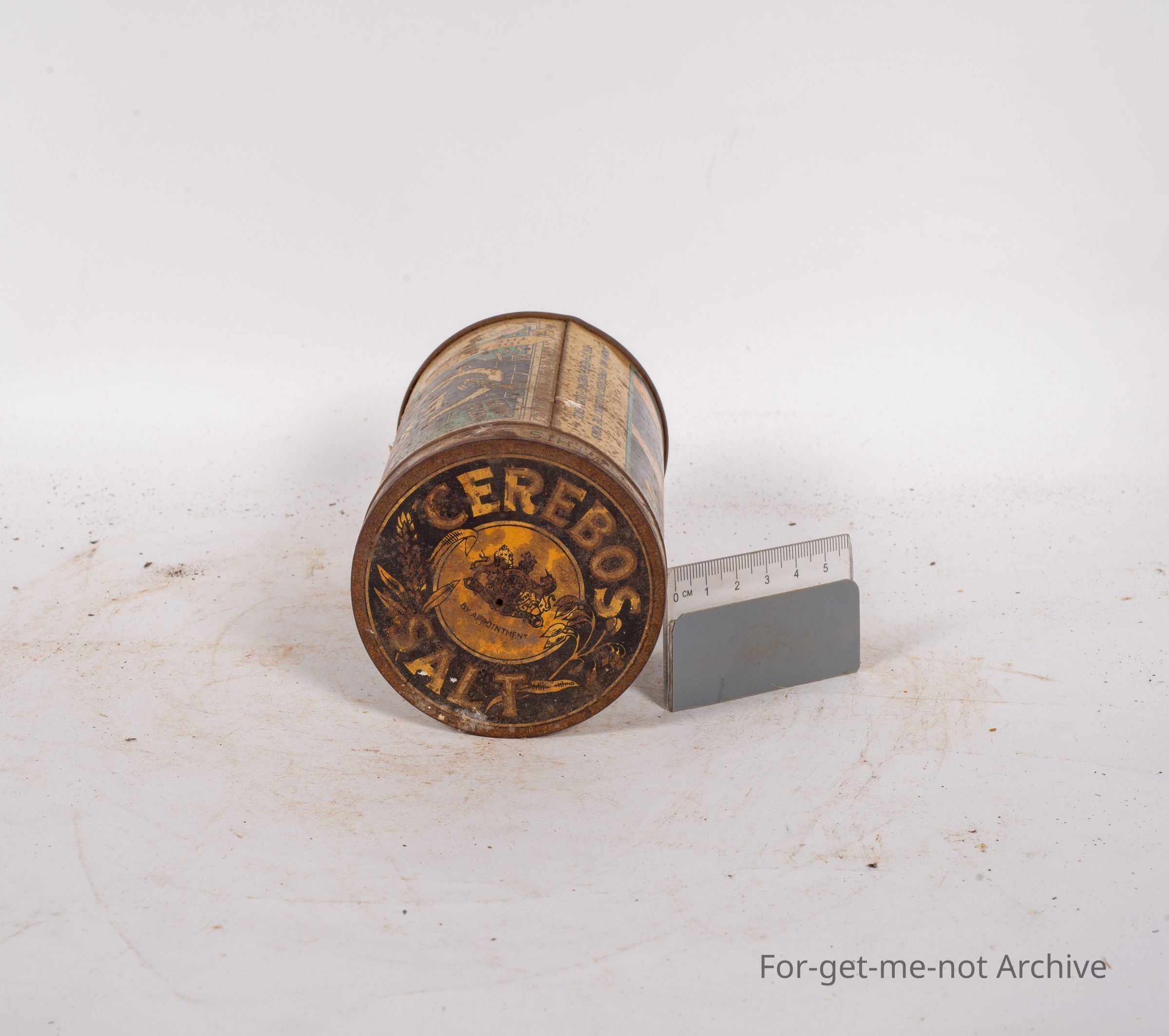This is a Cerebos Table Salt Tin. Pretty good on one side, down on the other,