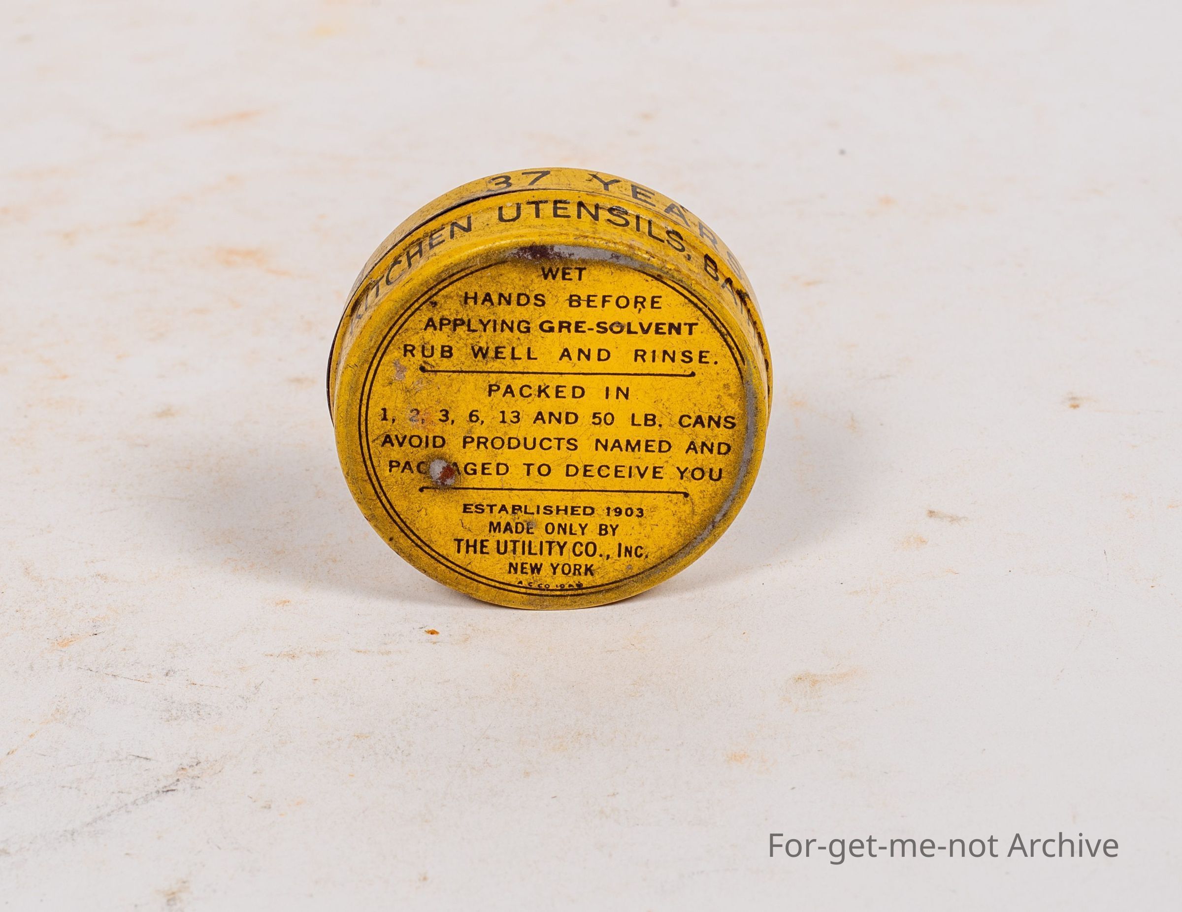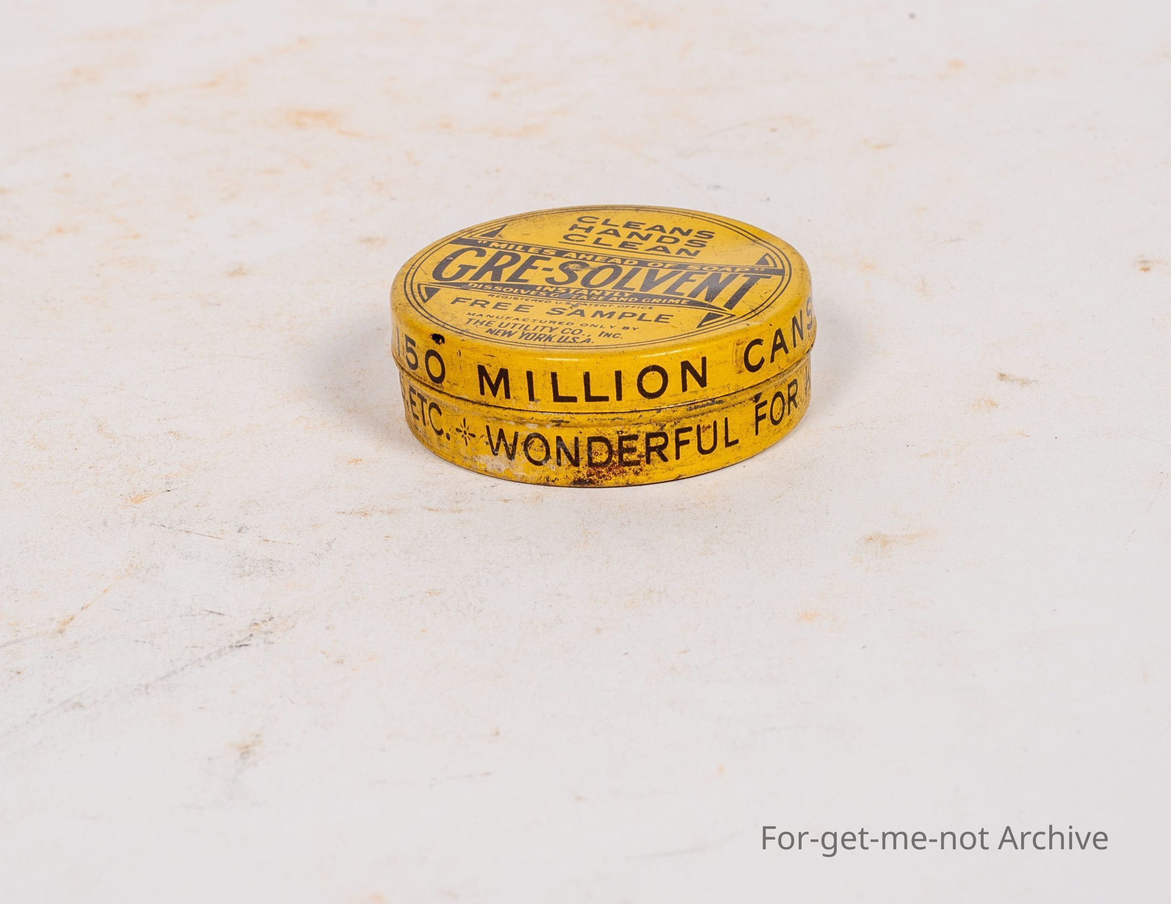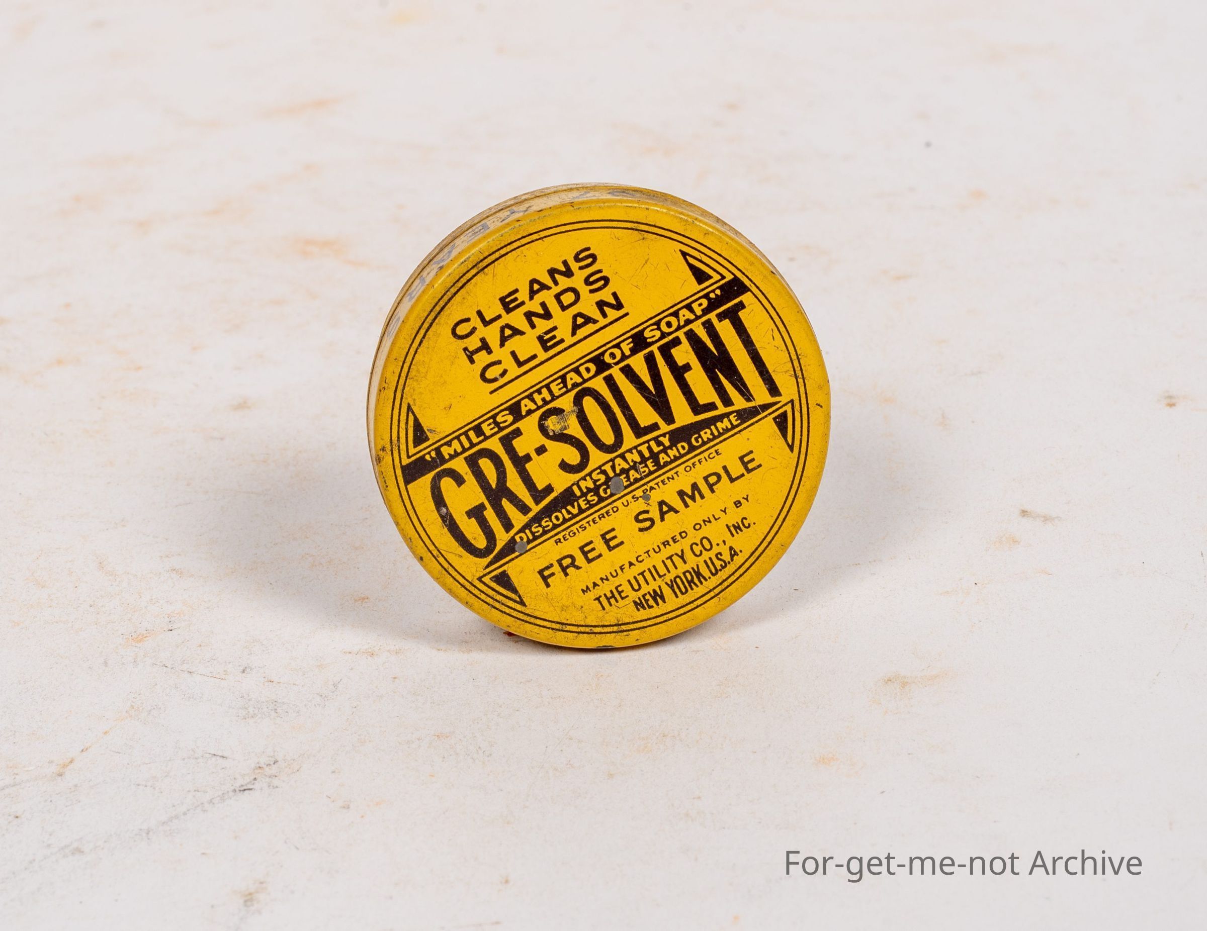 Grease Solvent. Clean Hands clean. Free sample. The Utility Company, New York. Very good order with instructions on the back,