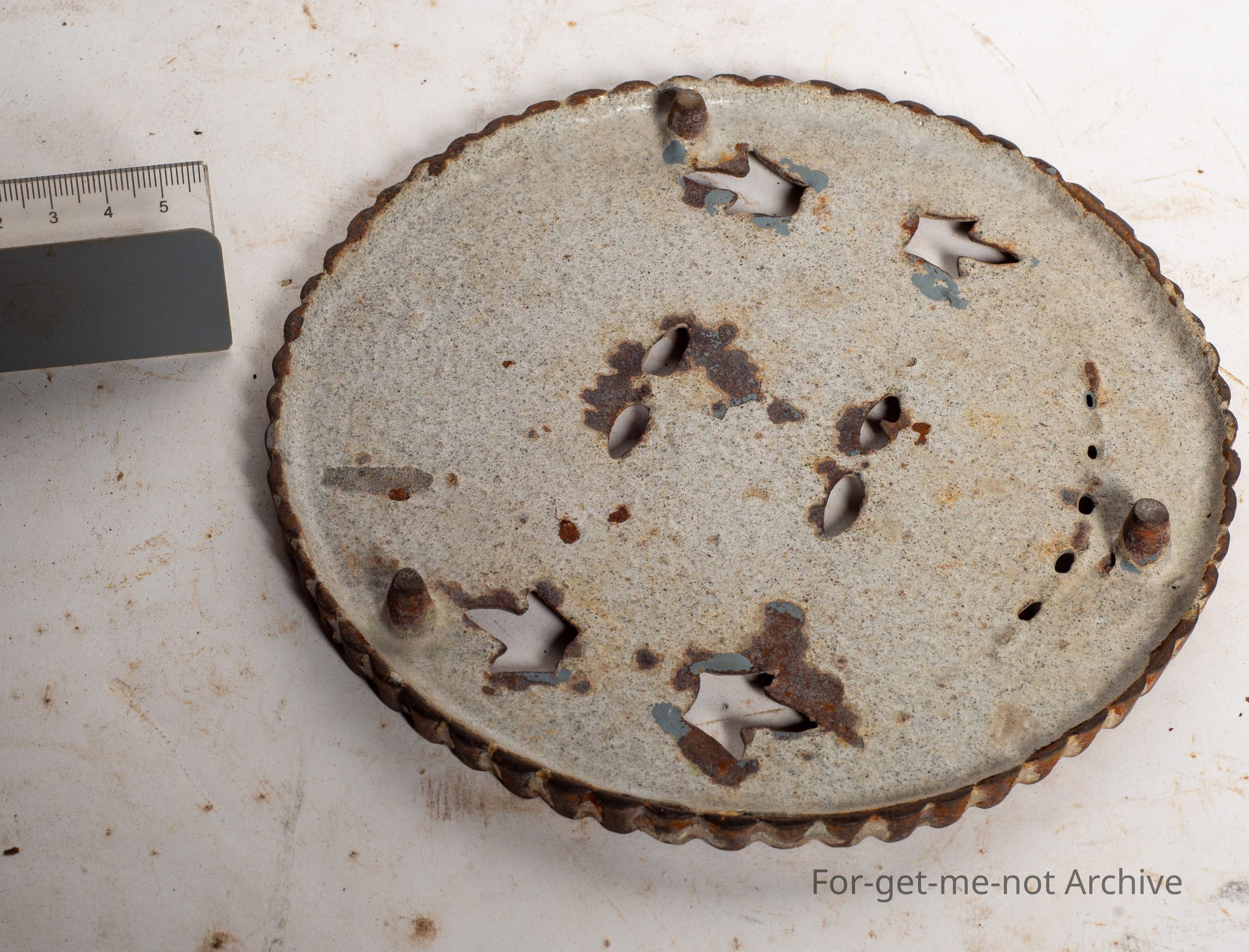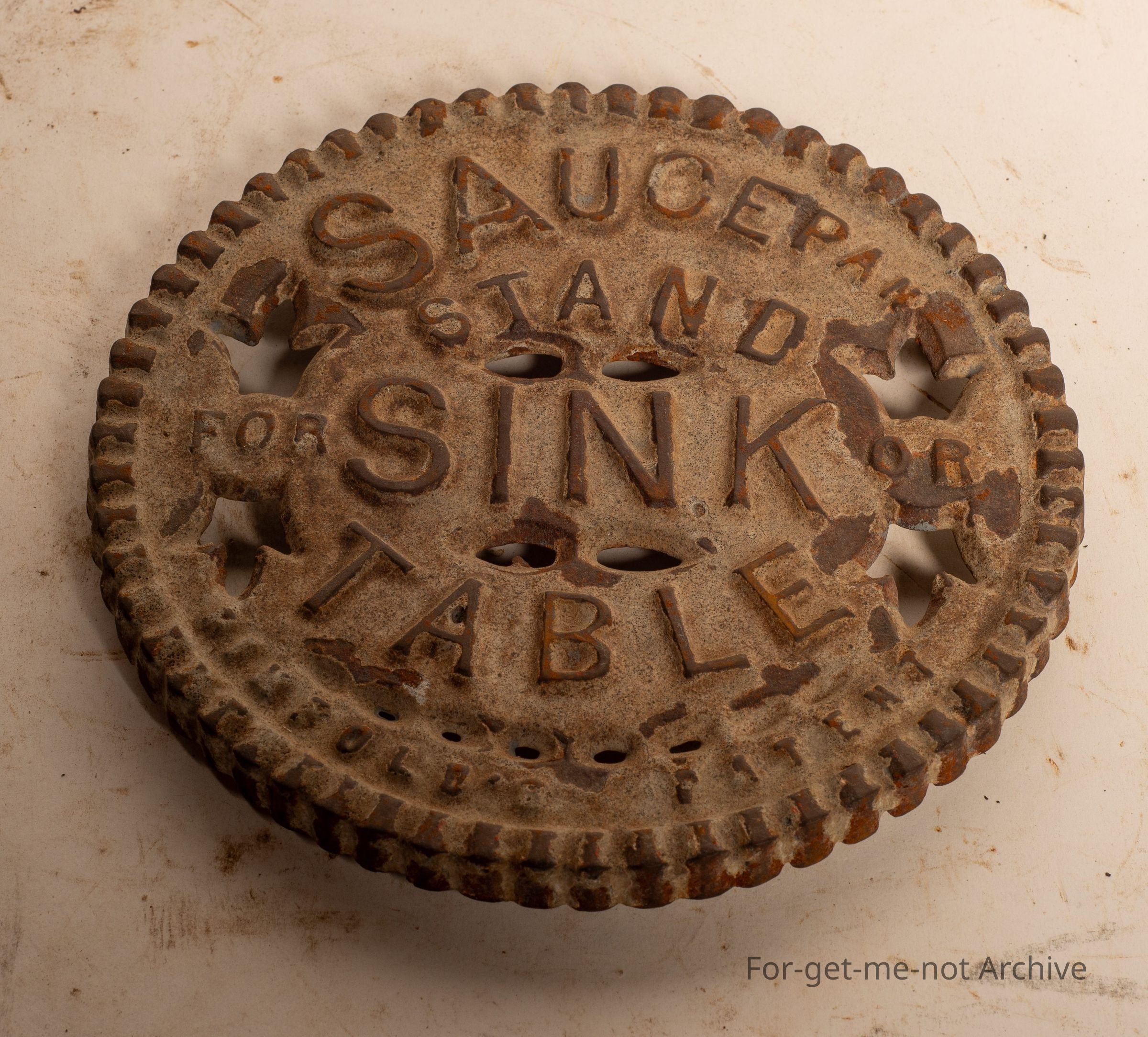 This is a cast iron circular plate called the saucepan stand for sink and table. It's like a draining stand. Quite ornate, quite unusual.
