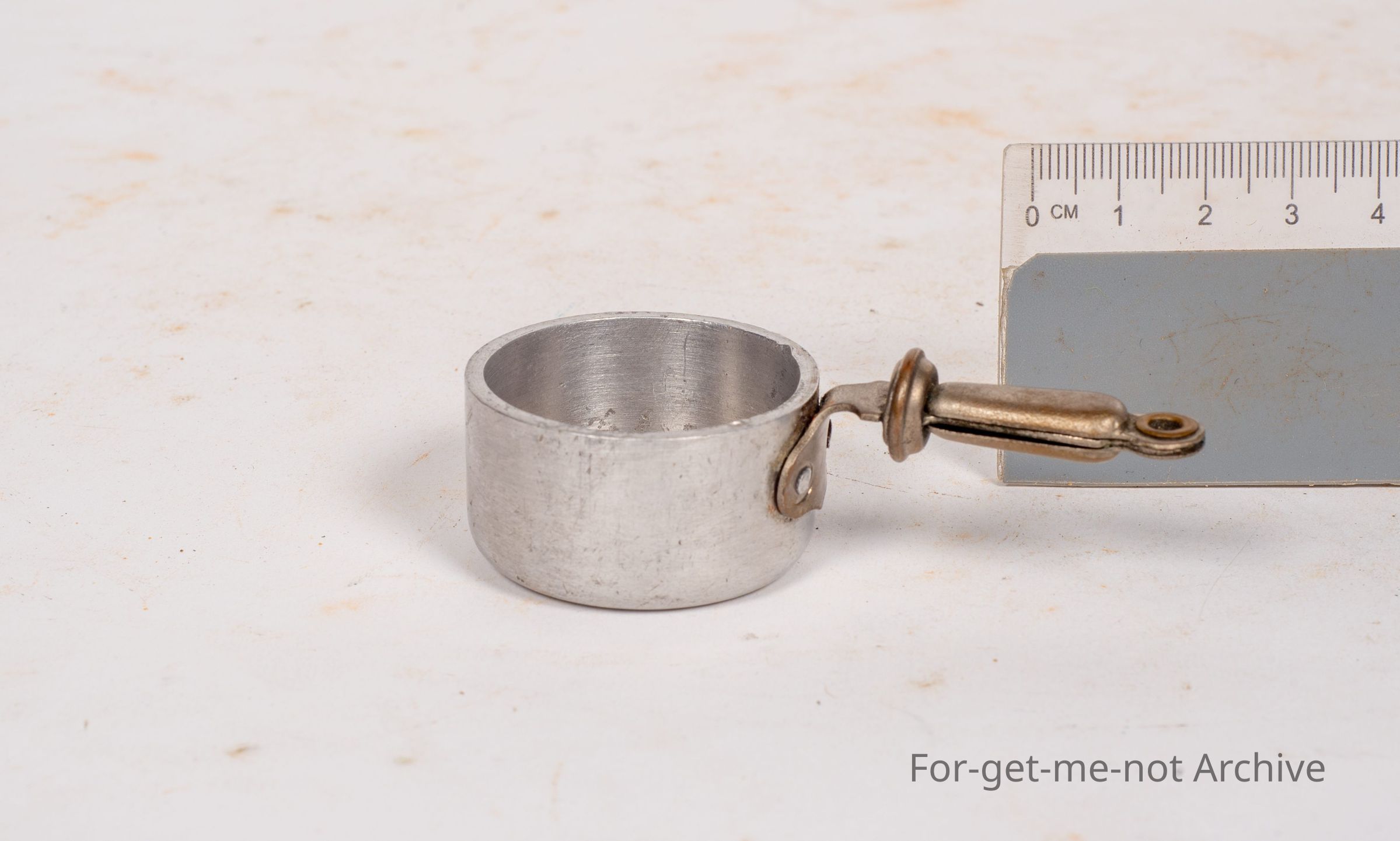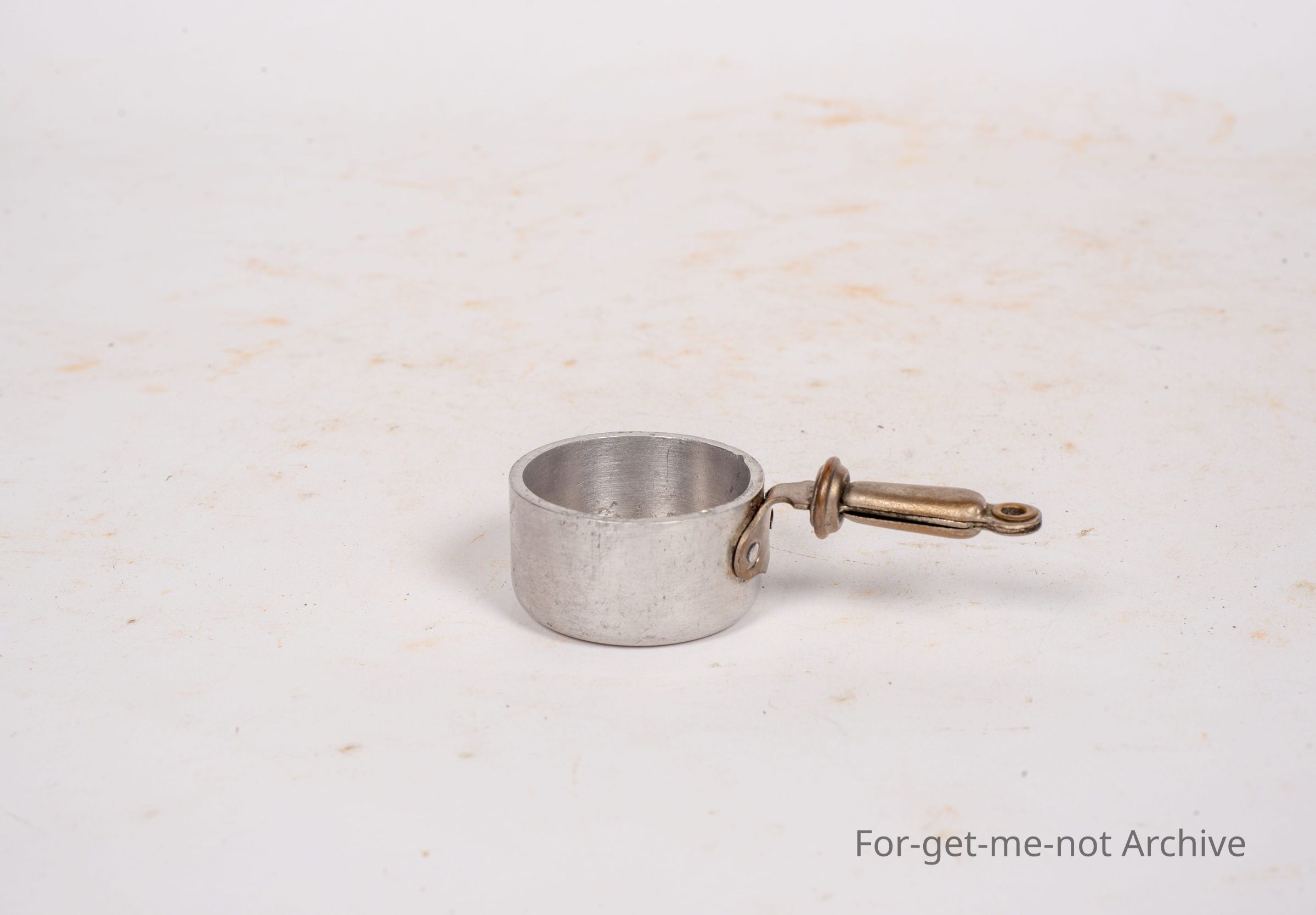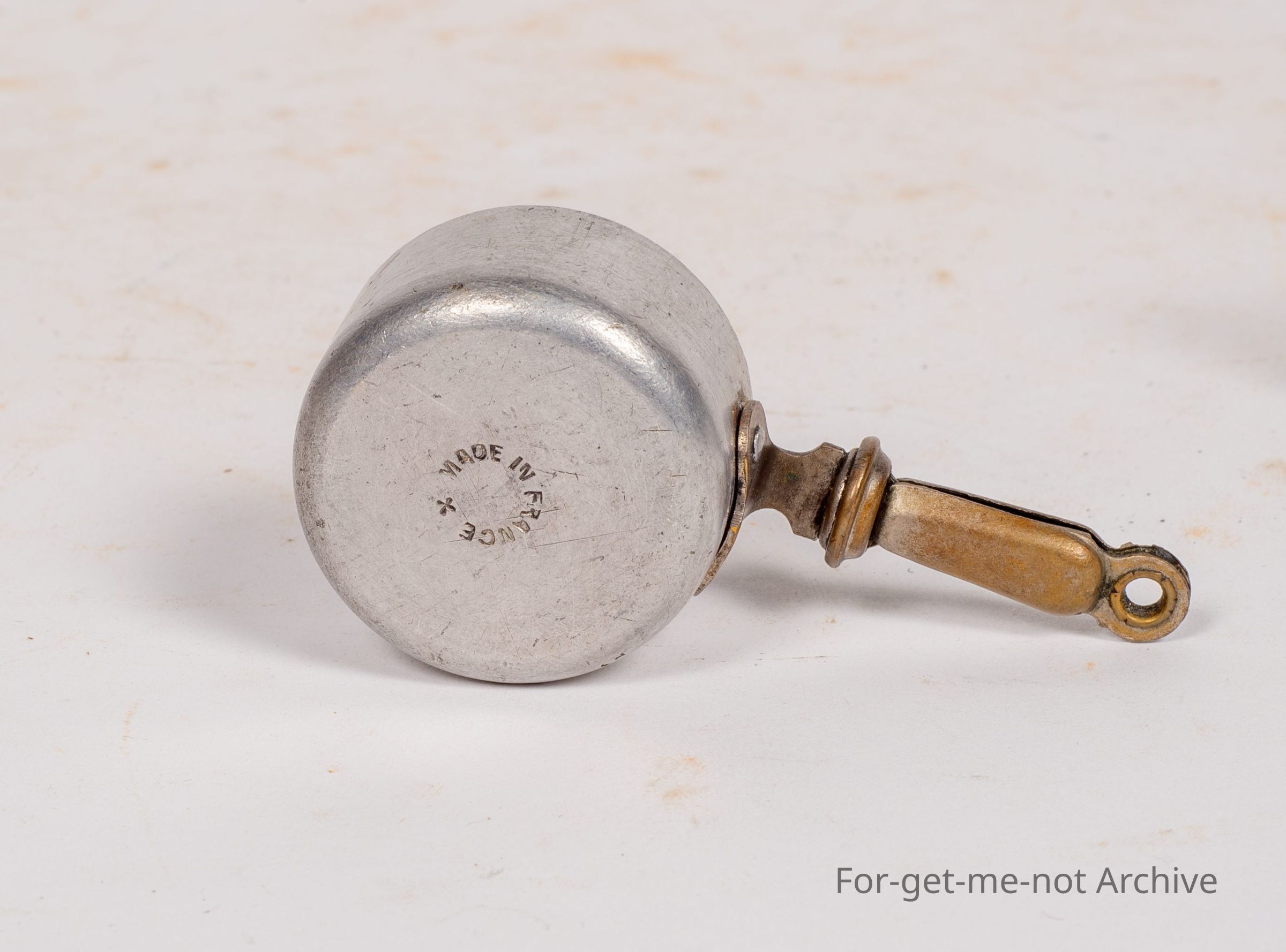Miniature saucepan. This is a salesman sample. This little source for me is stamped b o r as the trade name. Guaranteed thickness, beautifully done, made in France. Little brass handle, riveted to the body.Collection