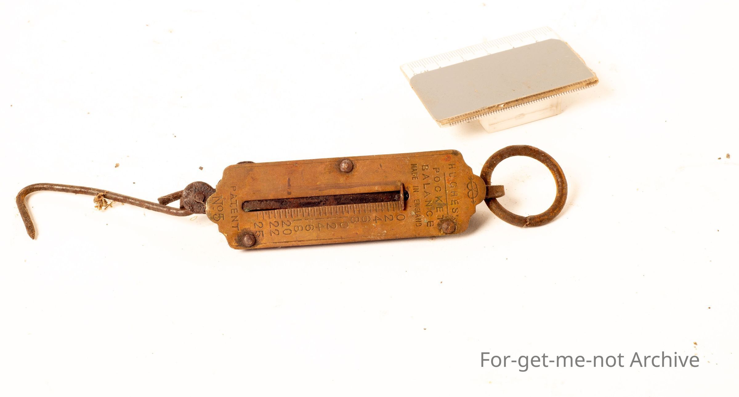 This is a very lightweight set of Hughes pocket balance scales made in England, quite a dainty little set, still in working condition. On the base it has number 5. Lovely set of scales.Collection
