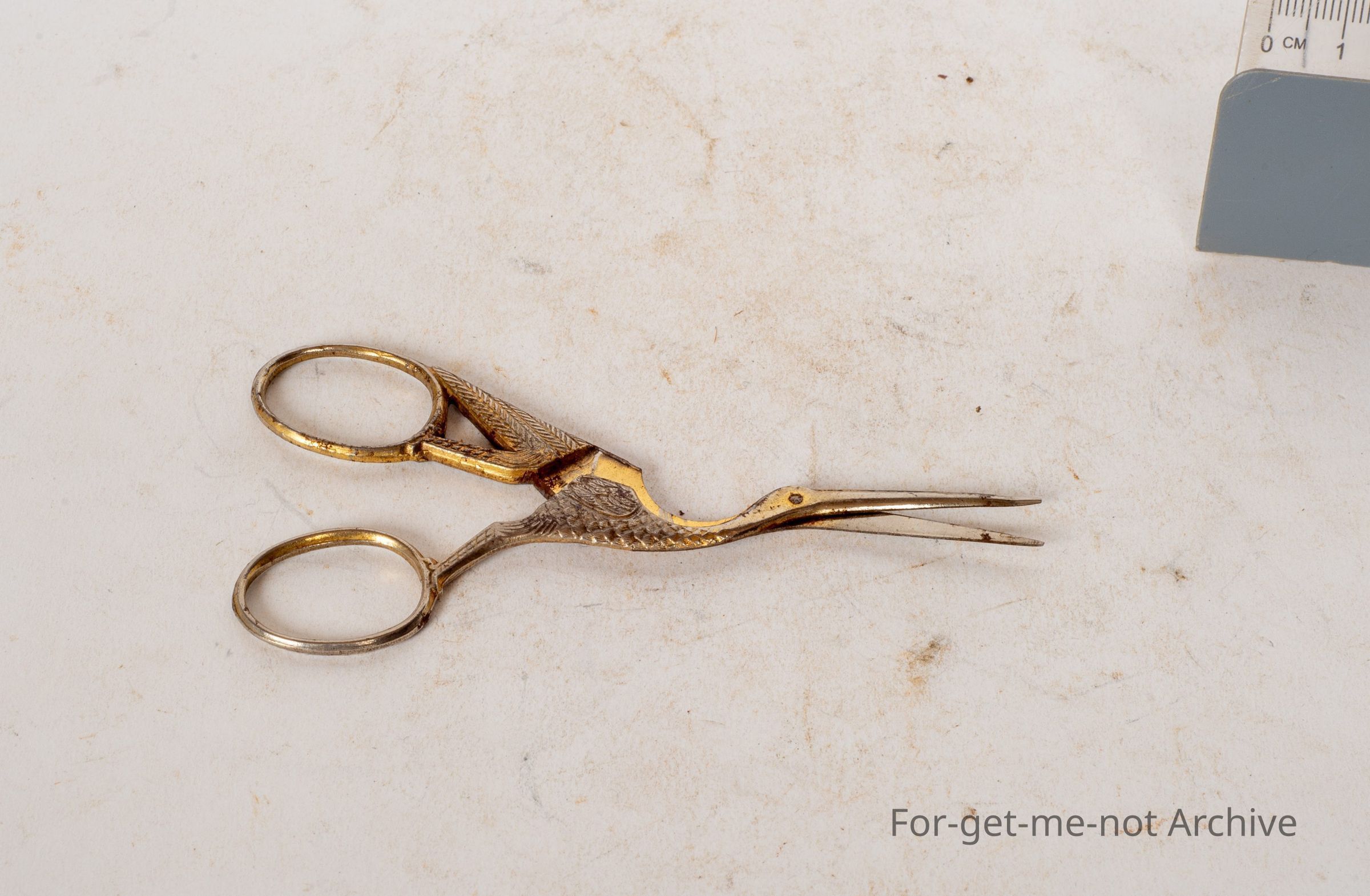 This is a small set of scissors in the shape of a stalk. This, pair is meant to belong to a midwife for cutting the umbilical cord.