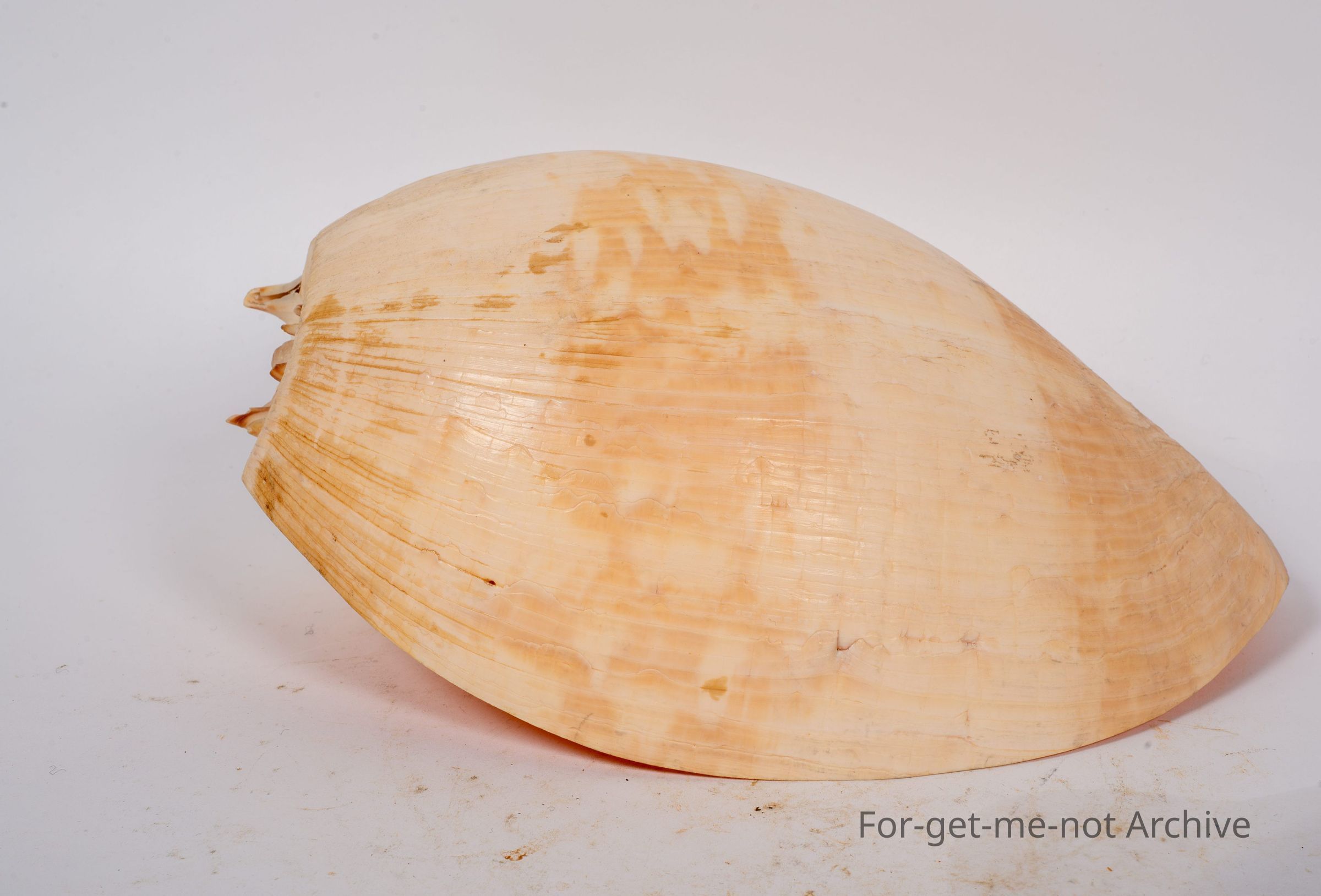 This shell is like a very huge size of the scoop shell from the Dampier Peninsula. This one is probably a very old one, in flawless condition, a beautiful thing. Probably not many about of this dimension anymore.Collection