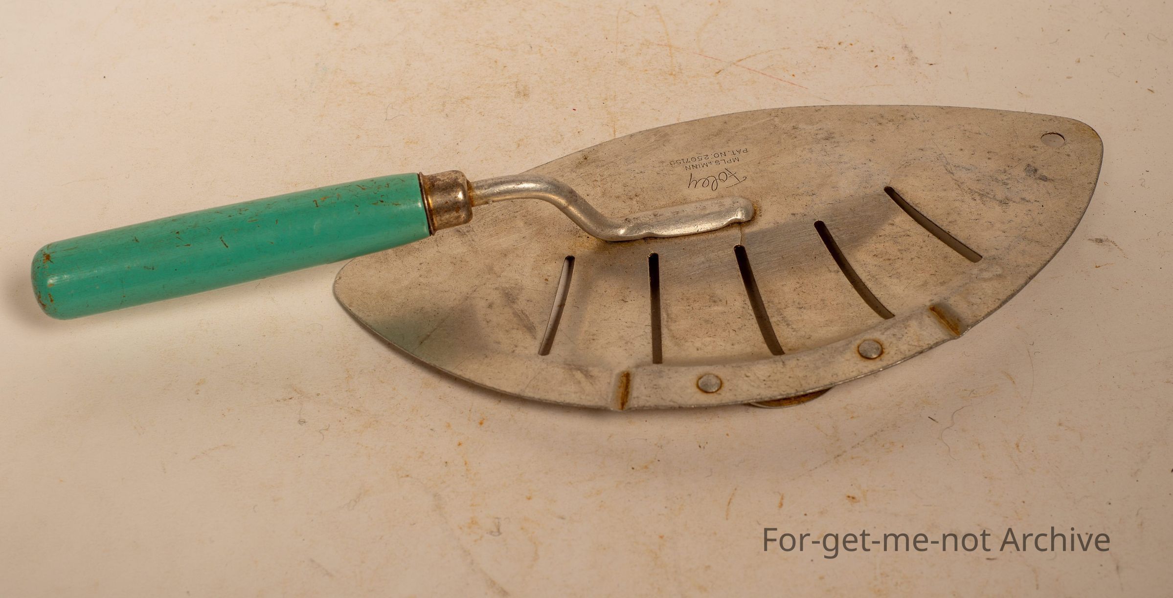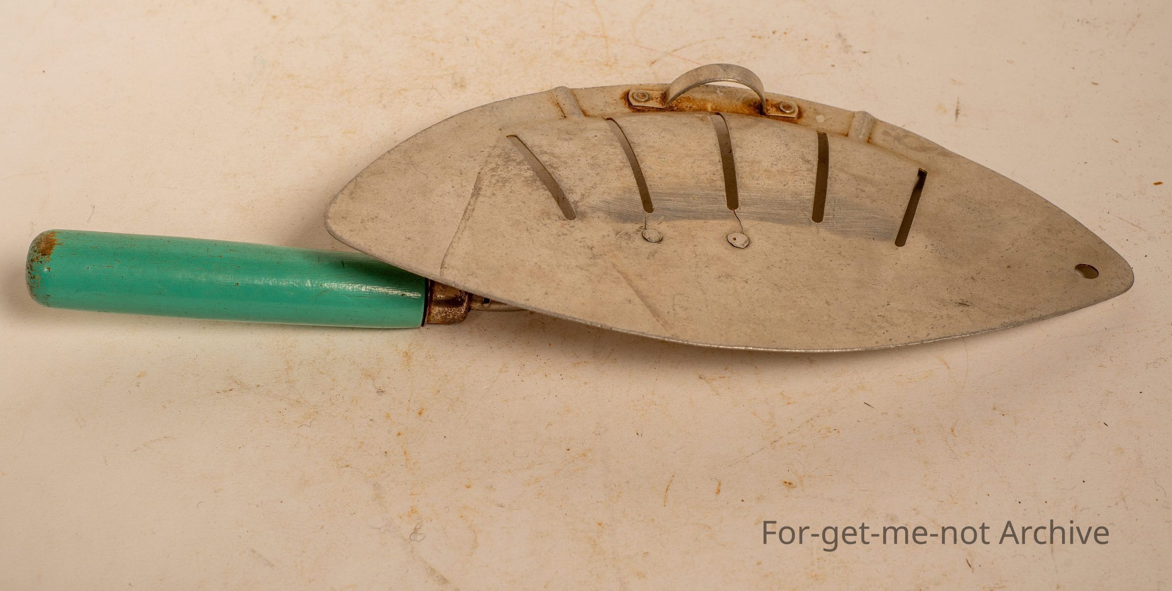 Is a wooden handled, aluminium tool, presumably a scraper of some sort.