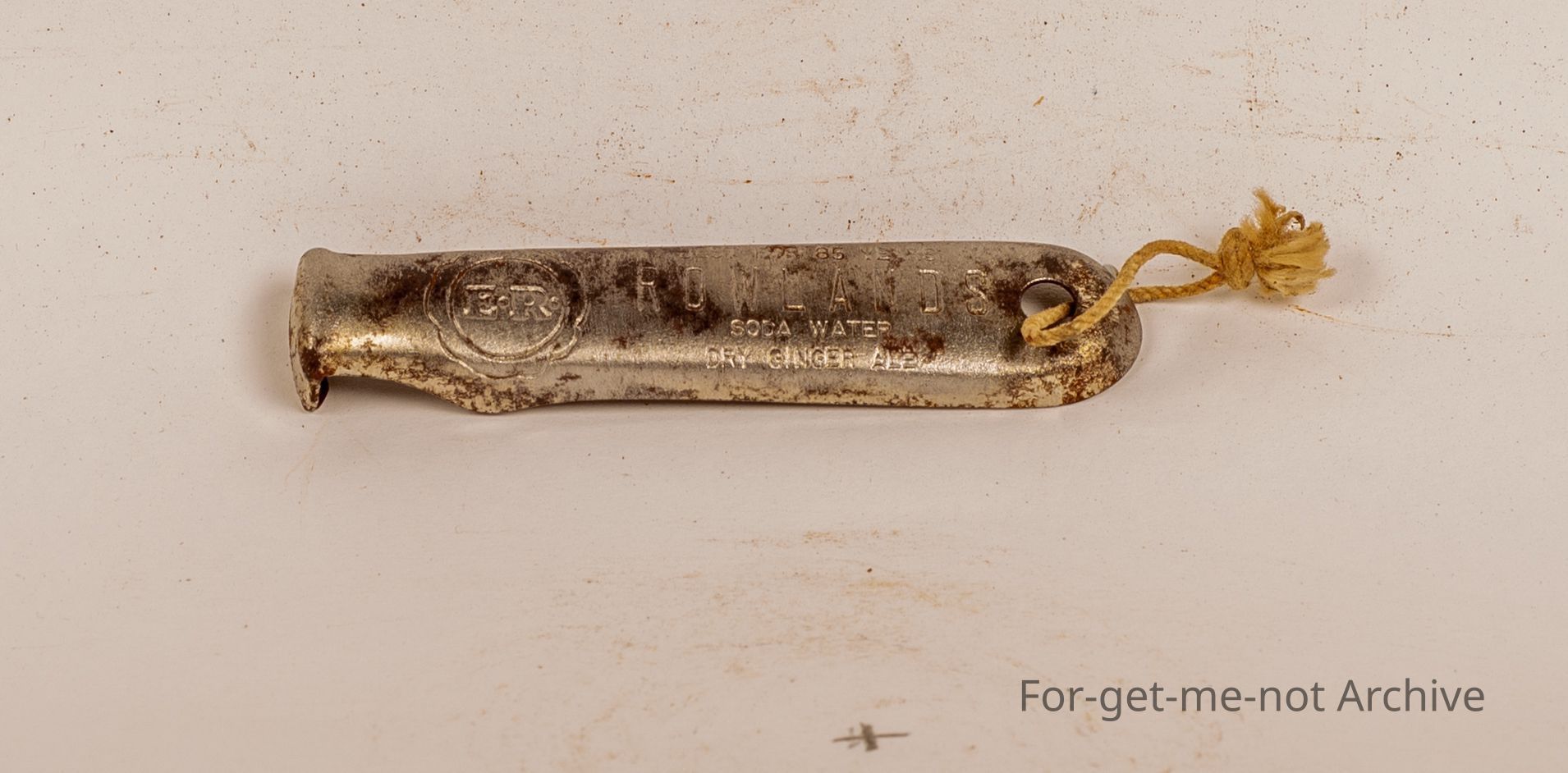 A metal crown seal opener from Rowlands, best in 85 years, stamped into the metalwork. Quite a rare piece of Rowlands advertising. soda water and ginger ale