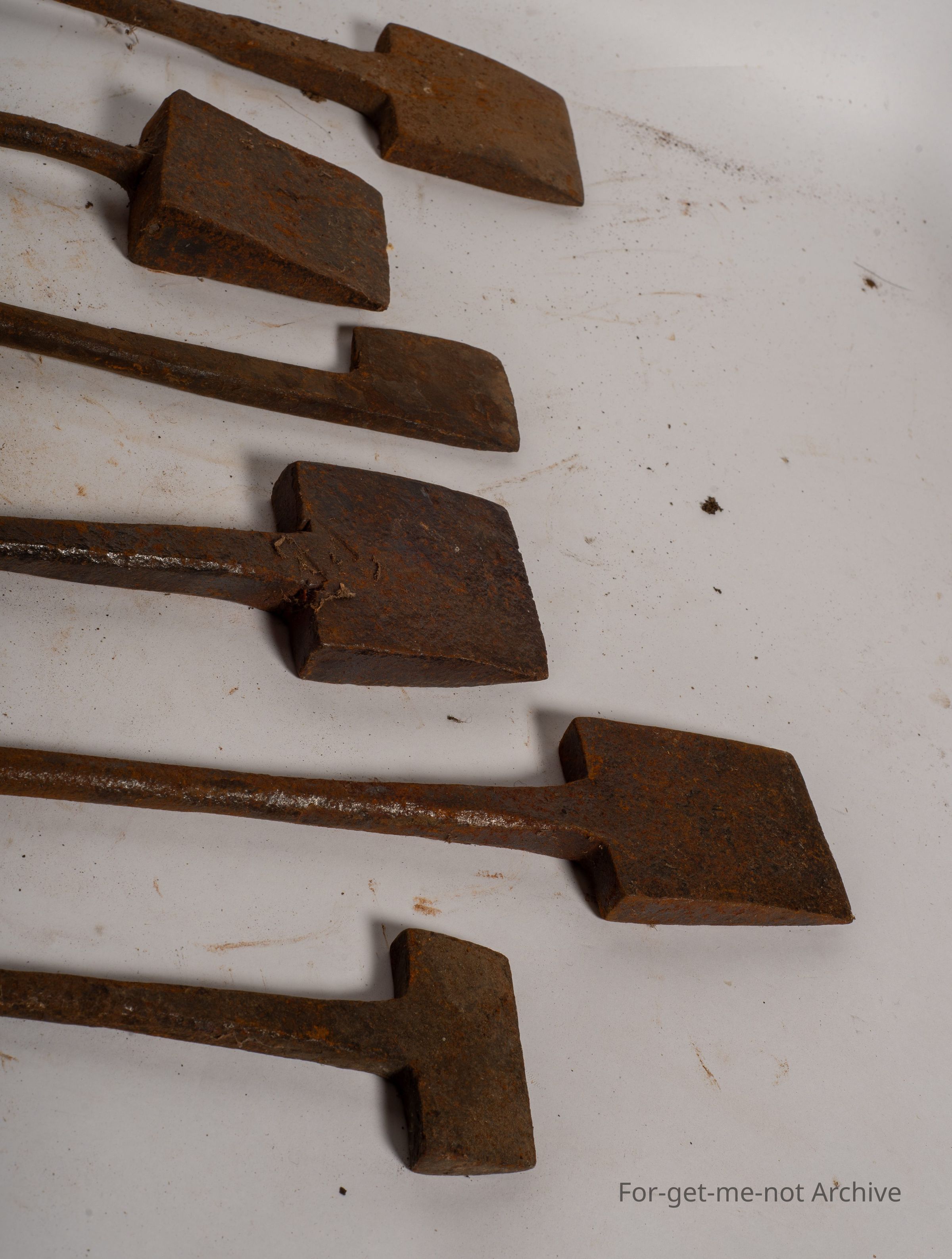 These are known as Searing irons. These were used mainly for castrating and tail docking of lambs in the sheep industry. These tools were heated by a fire, used at the right temperature and the right speed. The iron cutting the tail off seared and didn't bleed. The searing sealed the blood vessels off.Collection