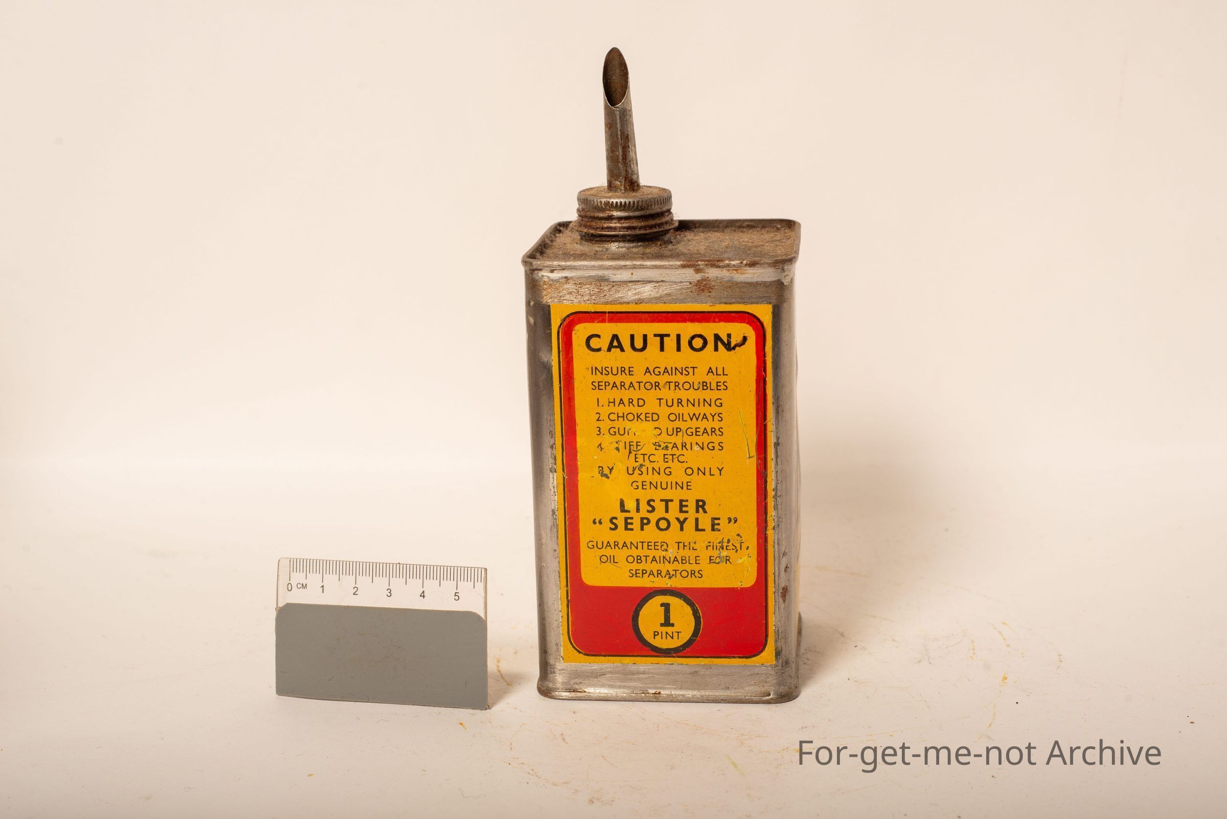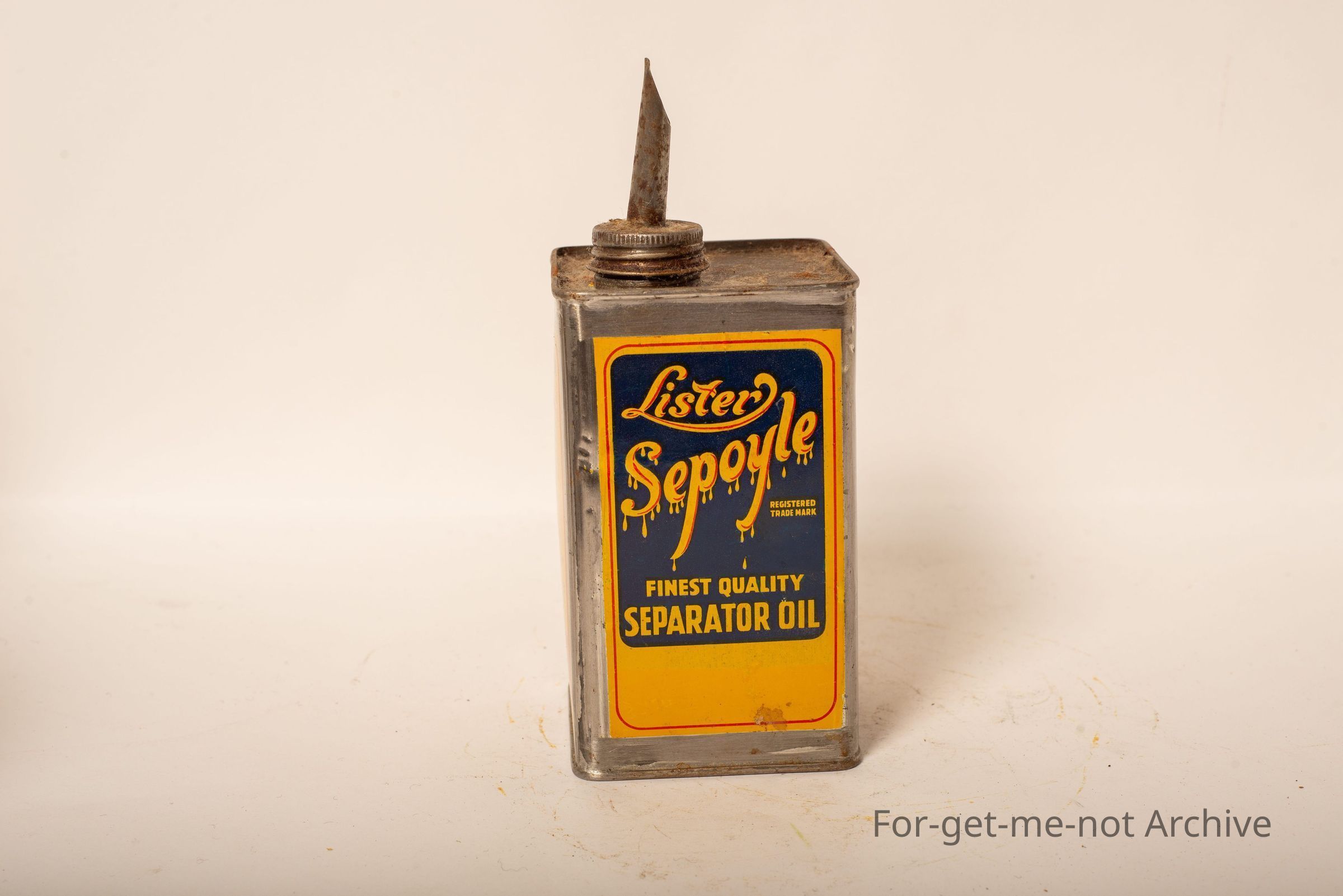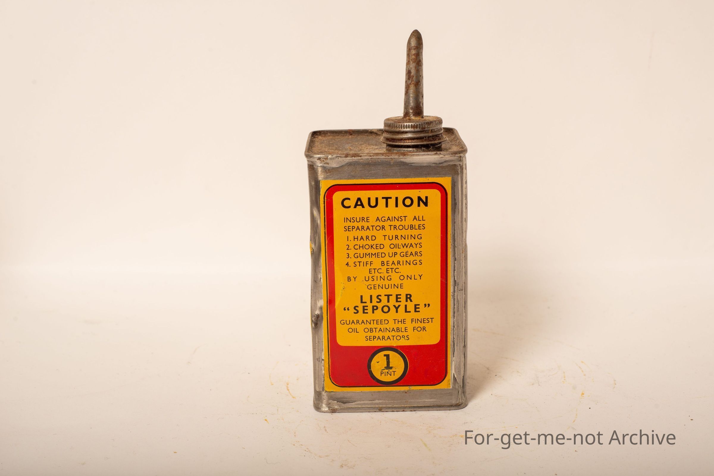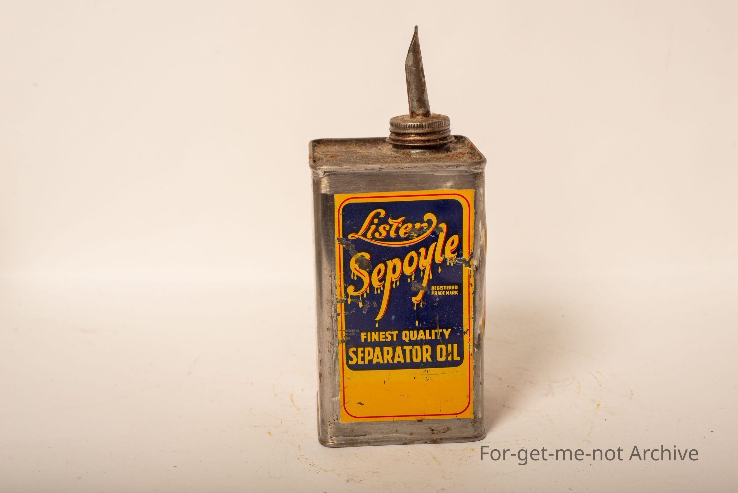 Lister Sepoyle. 1st quality separator oil. 1 pint capacity. This tin is in lovely condition. Graphics and writing all around.