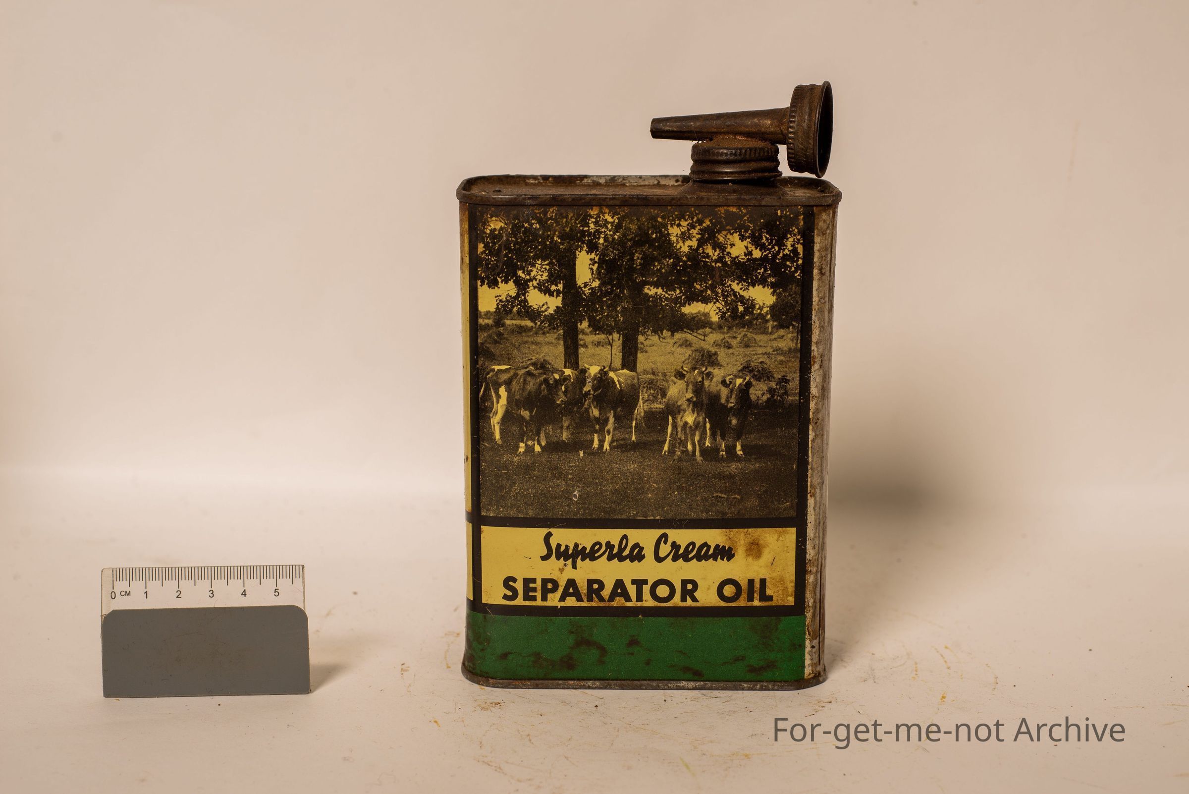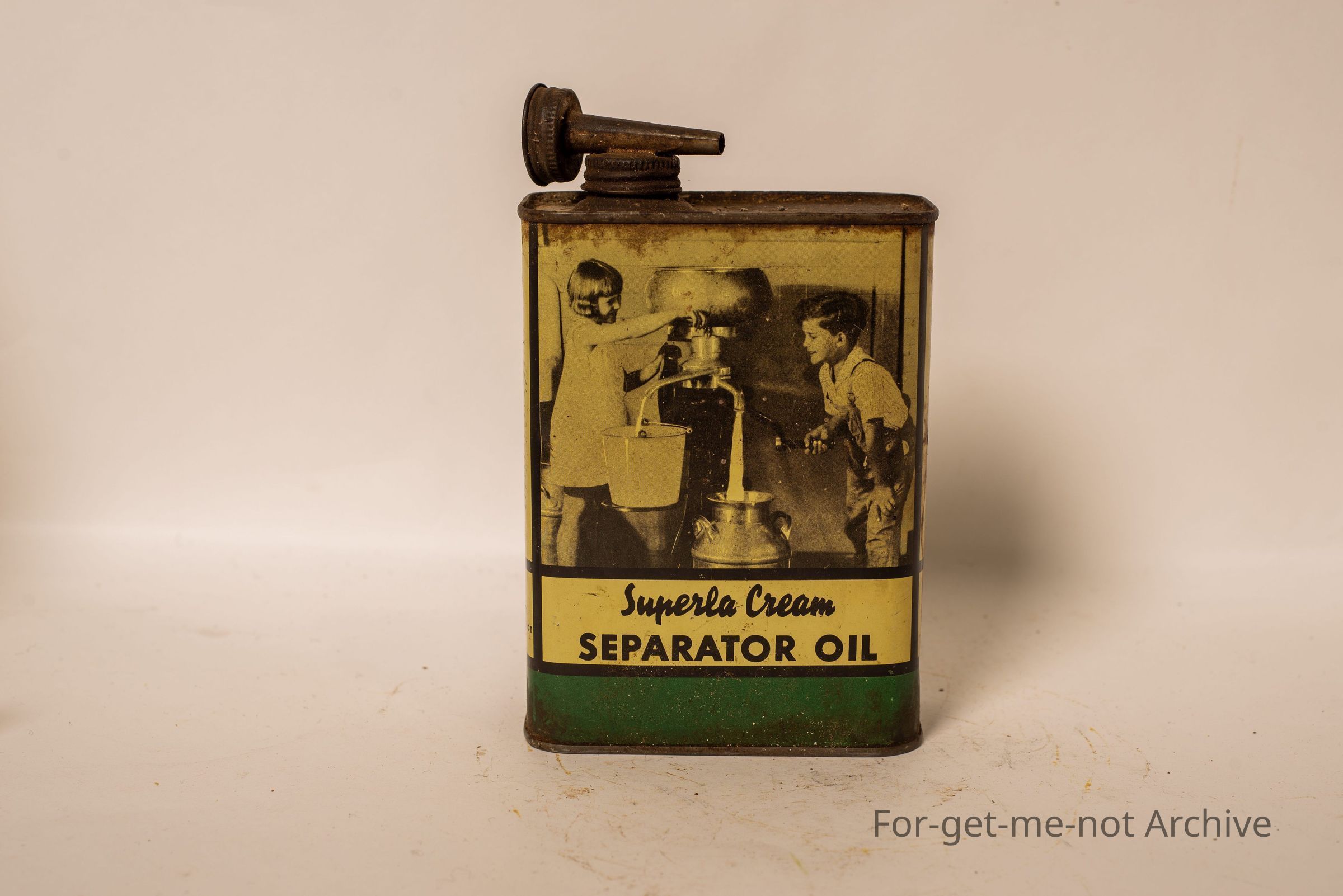 Superla Cream separator oil. Graphics of a pair of kids doing the separating on one side with a mob of cows on the other side. A standard oil company product.
