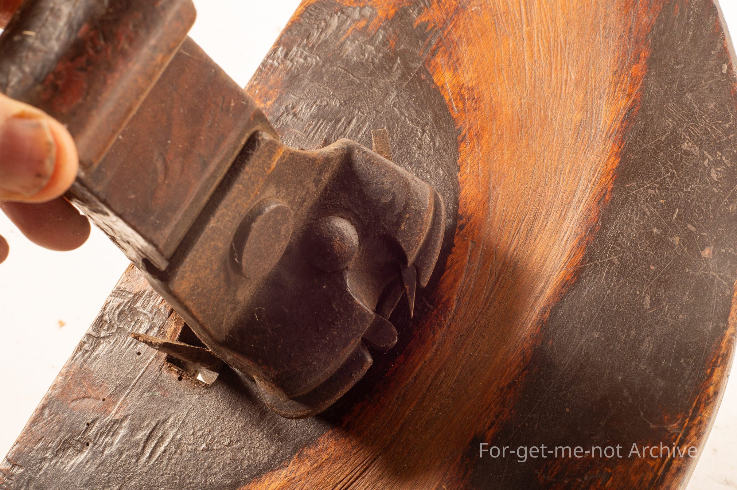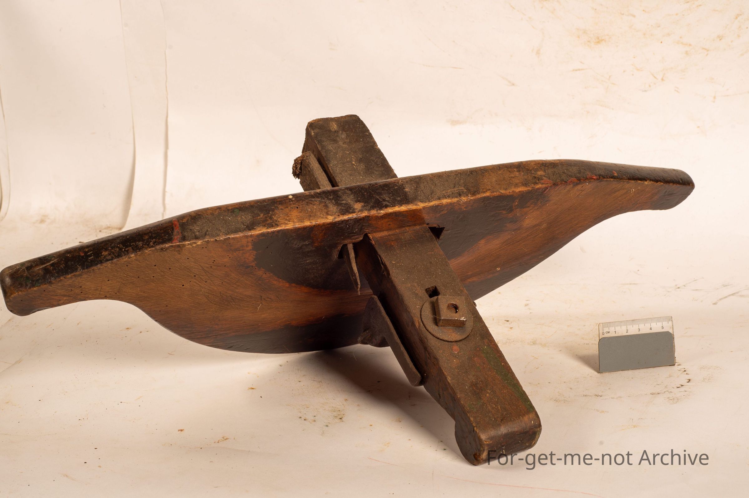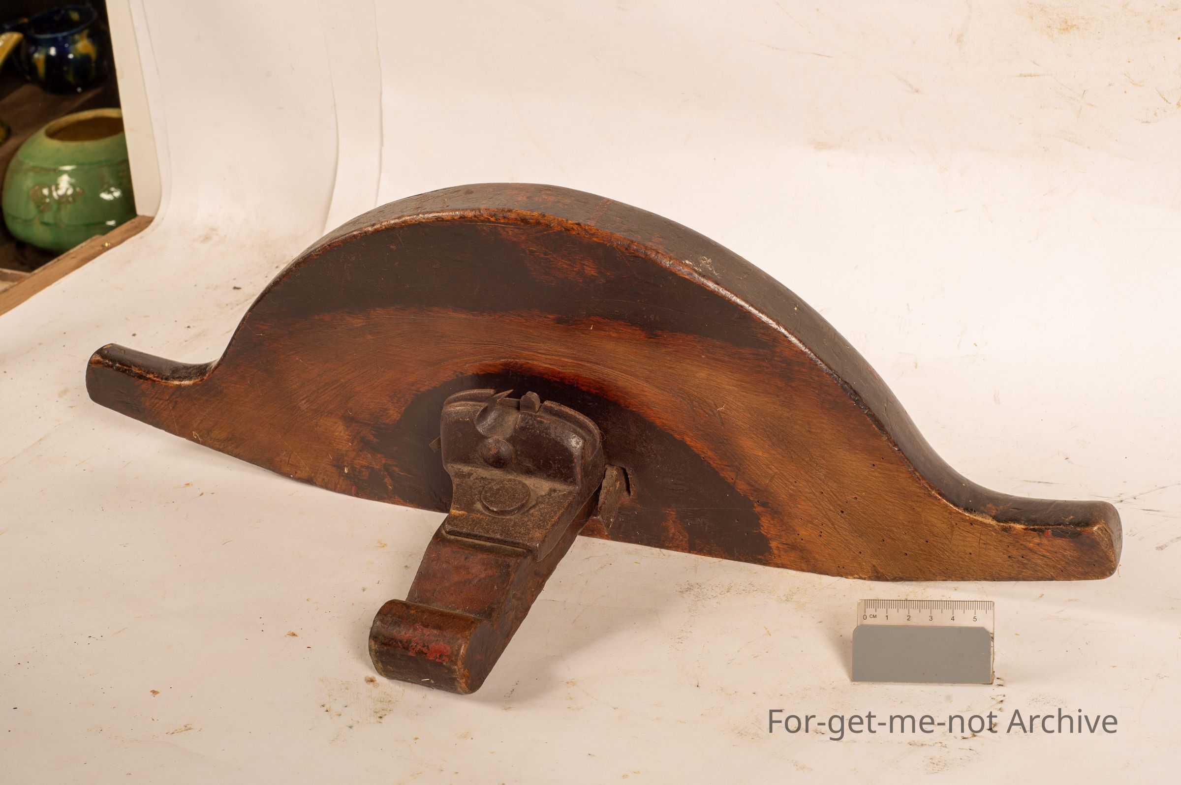This is very unusual shaping piece for, use by a cooper when putting the staves into a wooden barrel. Not certain how it functioned, but it is in original condition. All the wood is pretty sound.Collection