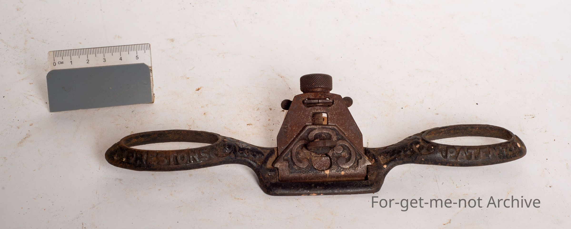 This is a beautiful cast iron spoke shave made by Preston USA. Very decorative, very collectible.