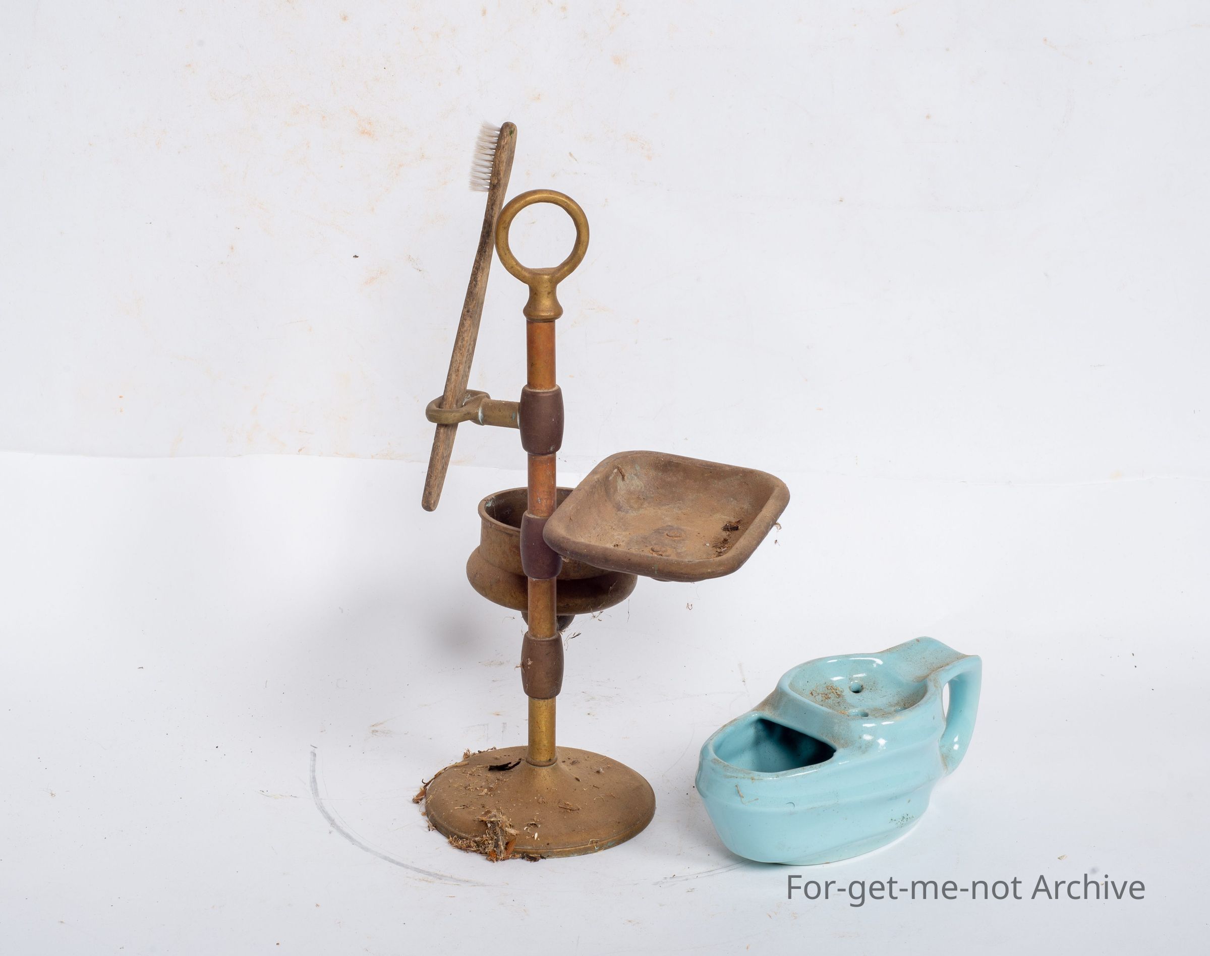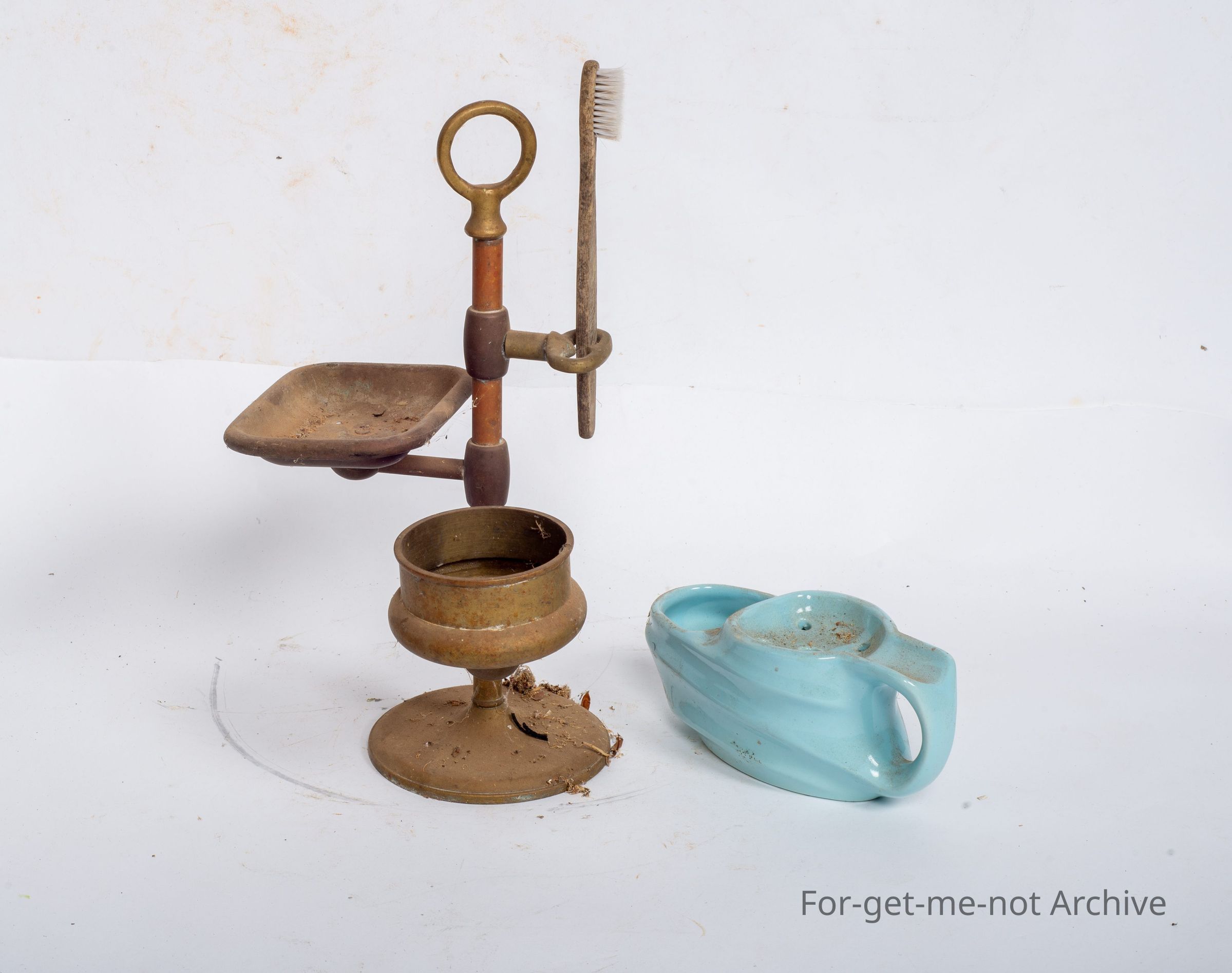 This is a shaving set from a bathroom holder for soap, toothbrush holder, an area for putting, the can of toothpaste or what have you in, also with a shaving brush all from the bathroomCollection