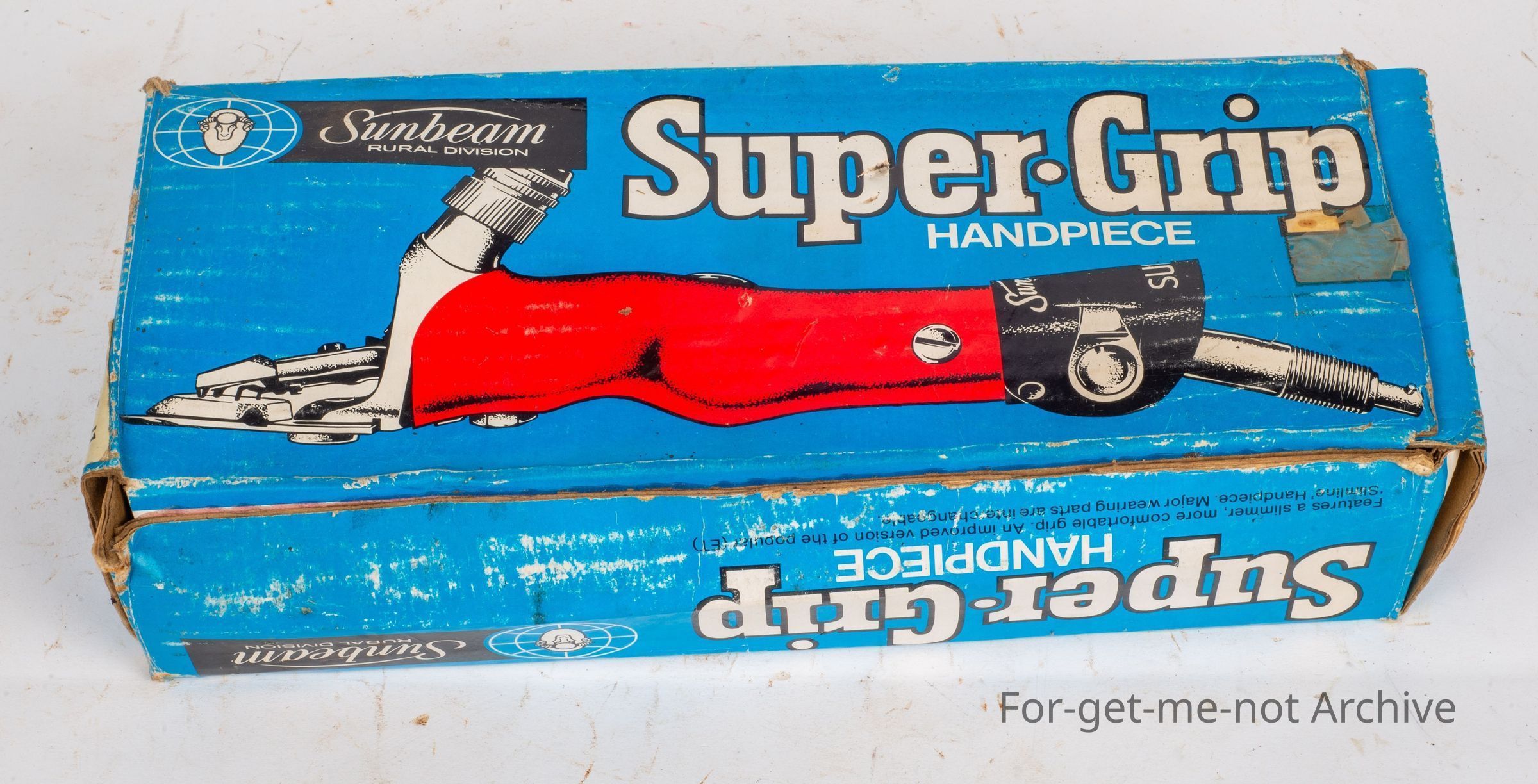 This is an unused Super Grip handpiece from Sunshine Sunbeam Rural Division, still in its box and wrapper. This is an improved version of the popular ET. Pretty unique to find one unused in its original box.