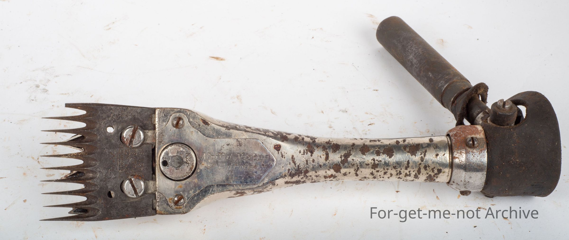This one is a Moffett Virtue No.7, in lovely condition with its original nickel finish still complete. The leather on the back joint is in good order. A lovely clean, tidy example of this handpiece.