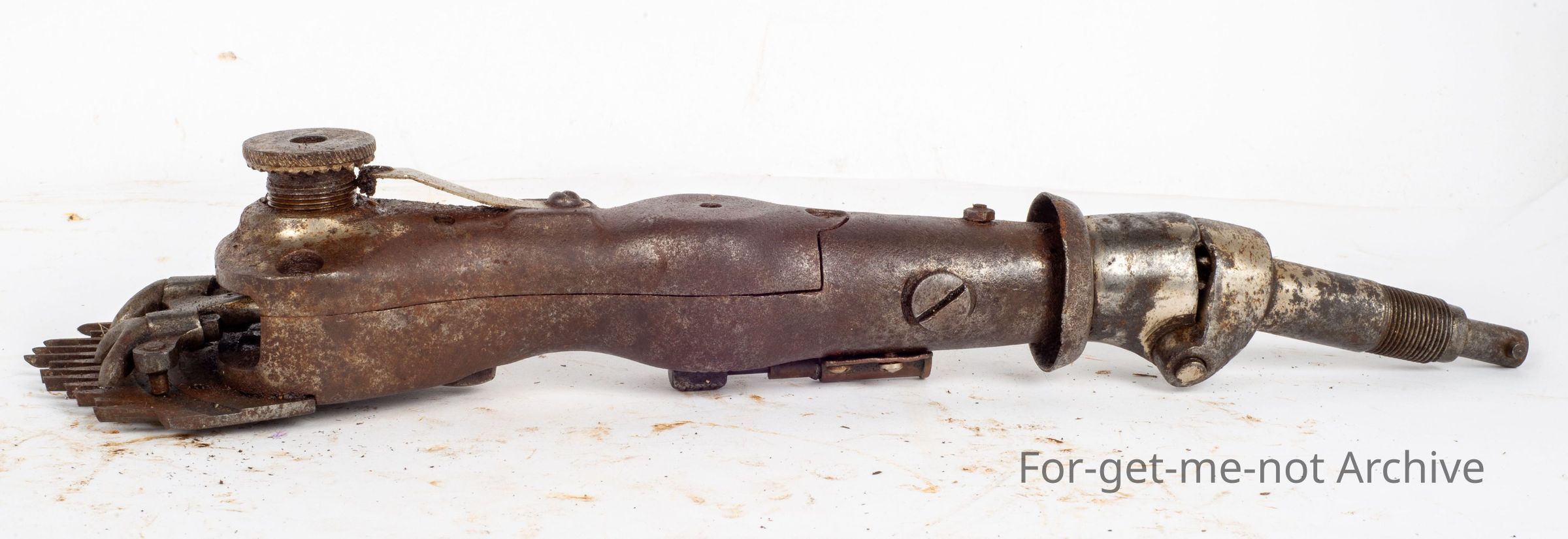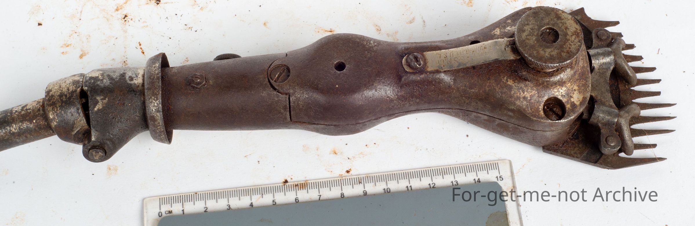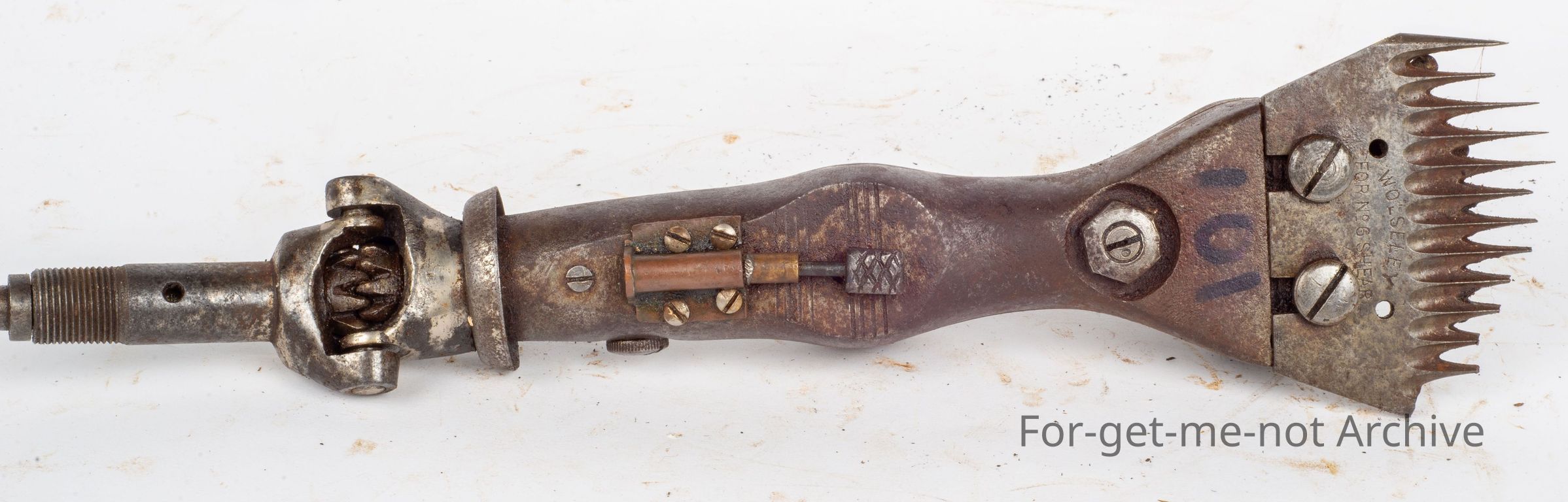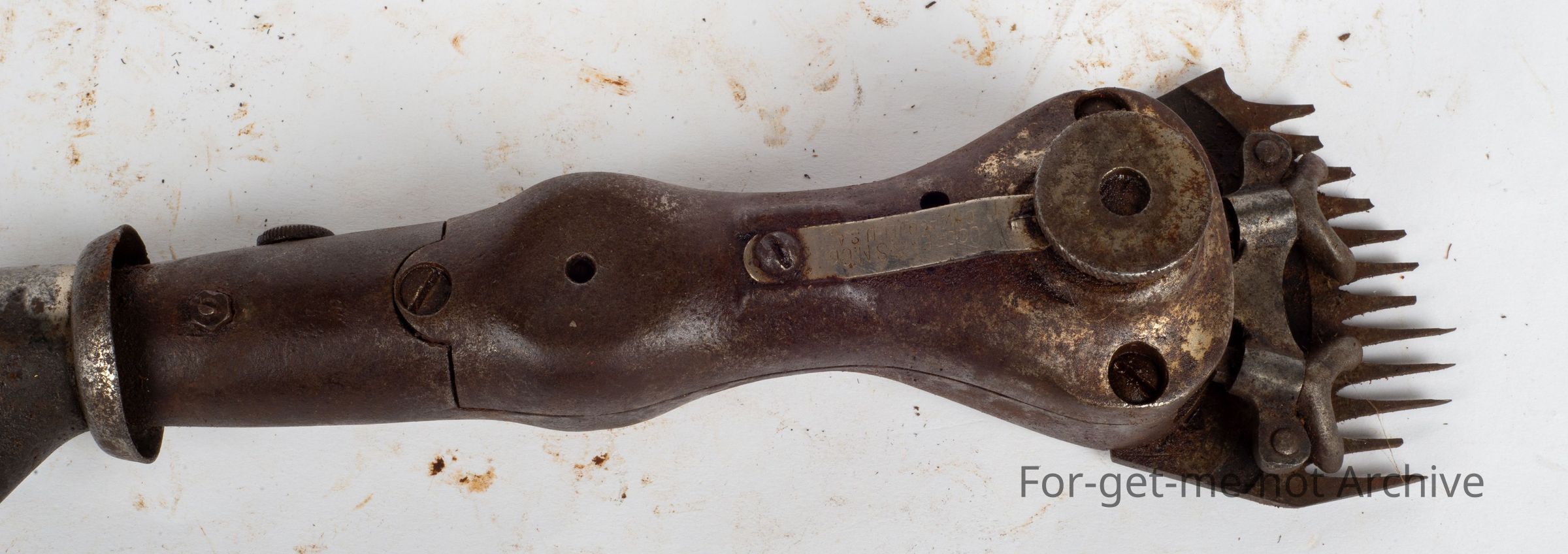 This is a Cooper USA, Stewart Sheep Shearing Co. Chicago Ill. USA with a wide fork fitted and a clutch mechanism under the handpiece, which makes it quite an unusual addition to the handpiece. This is 1904. Very rare to see this clutch on a production model.