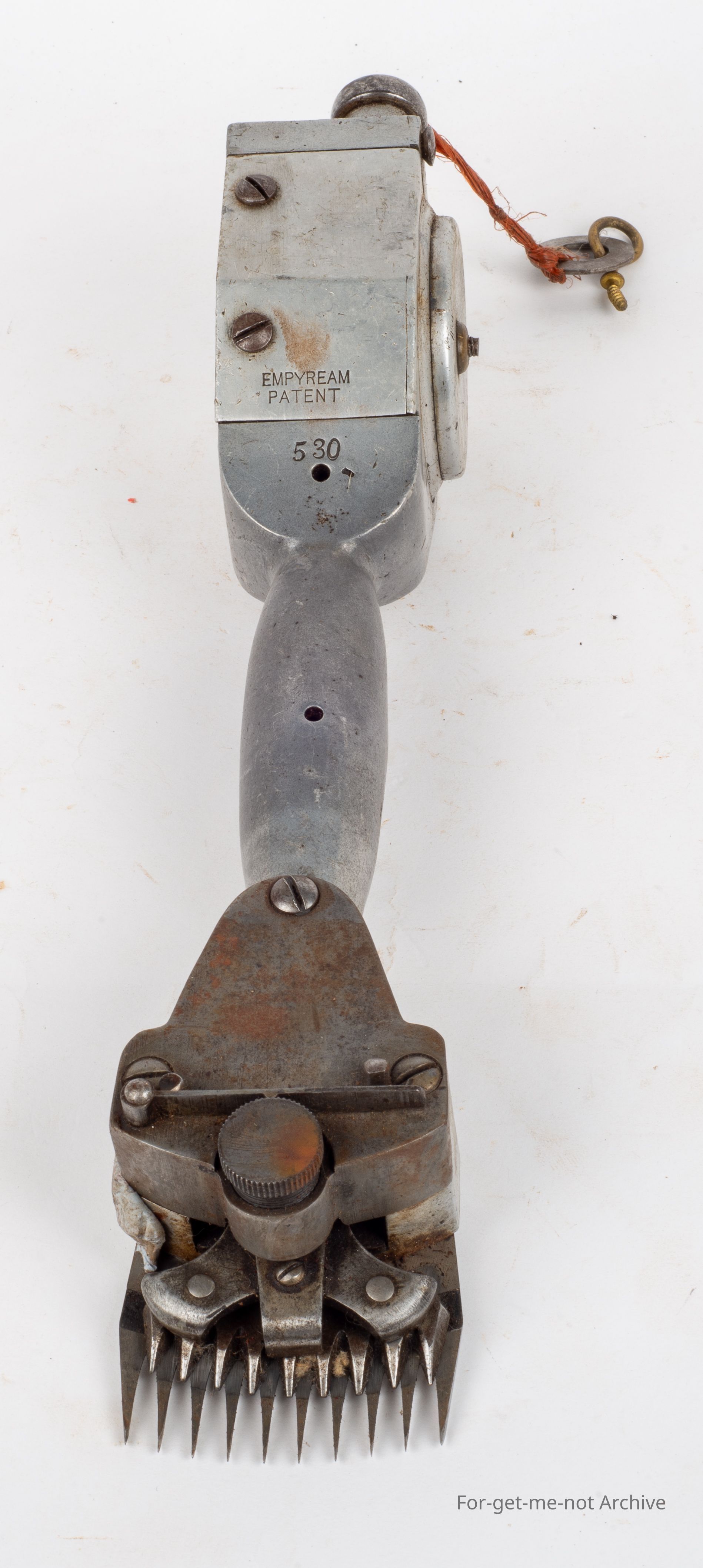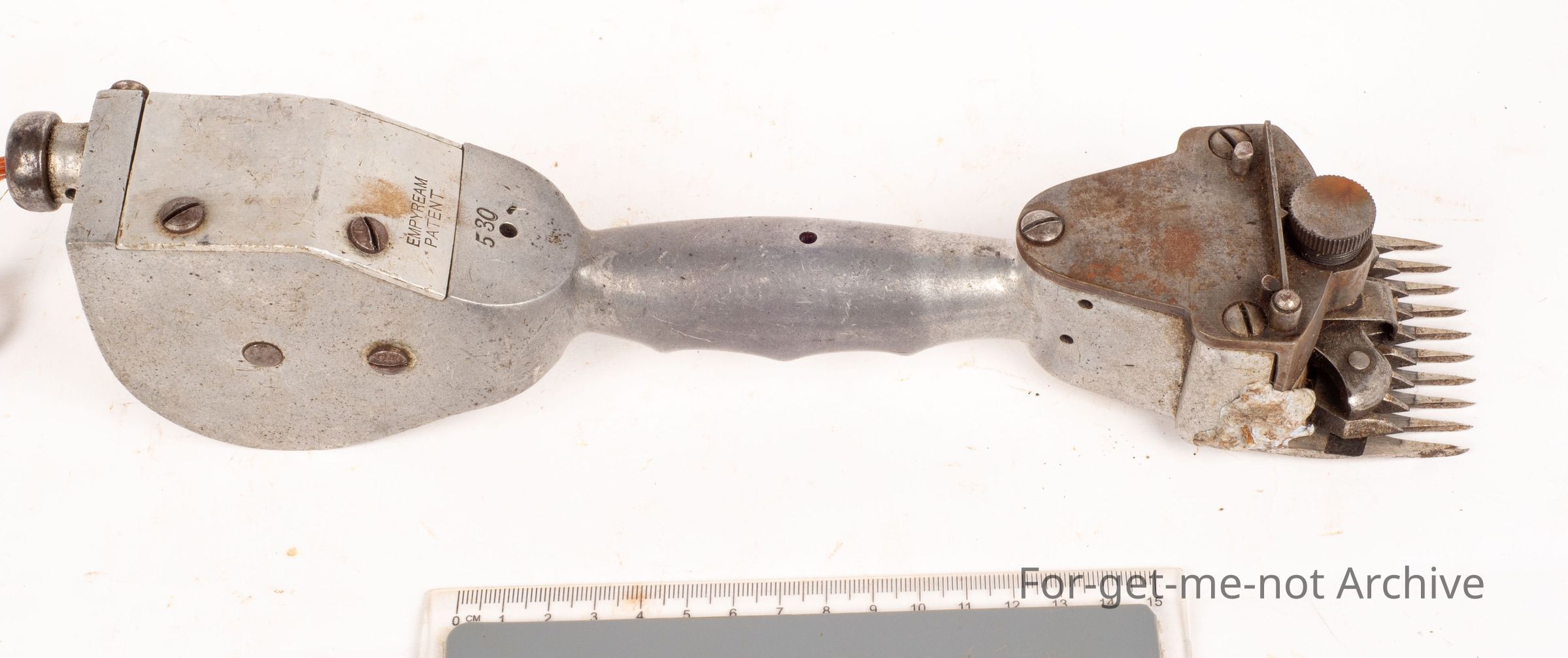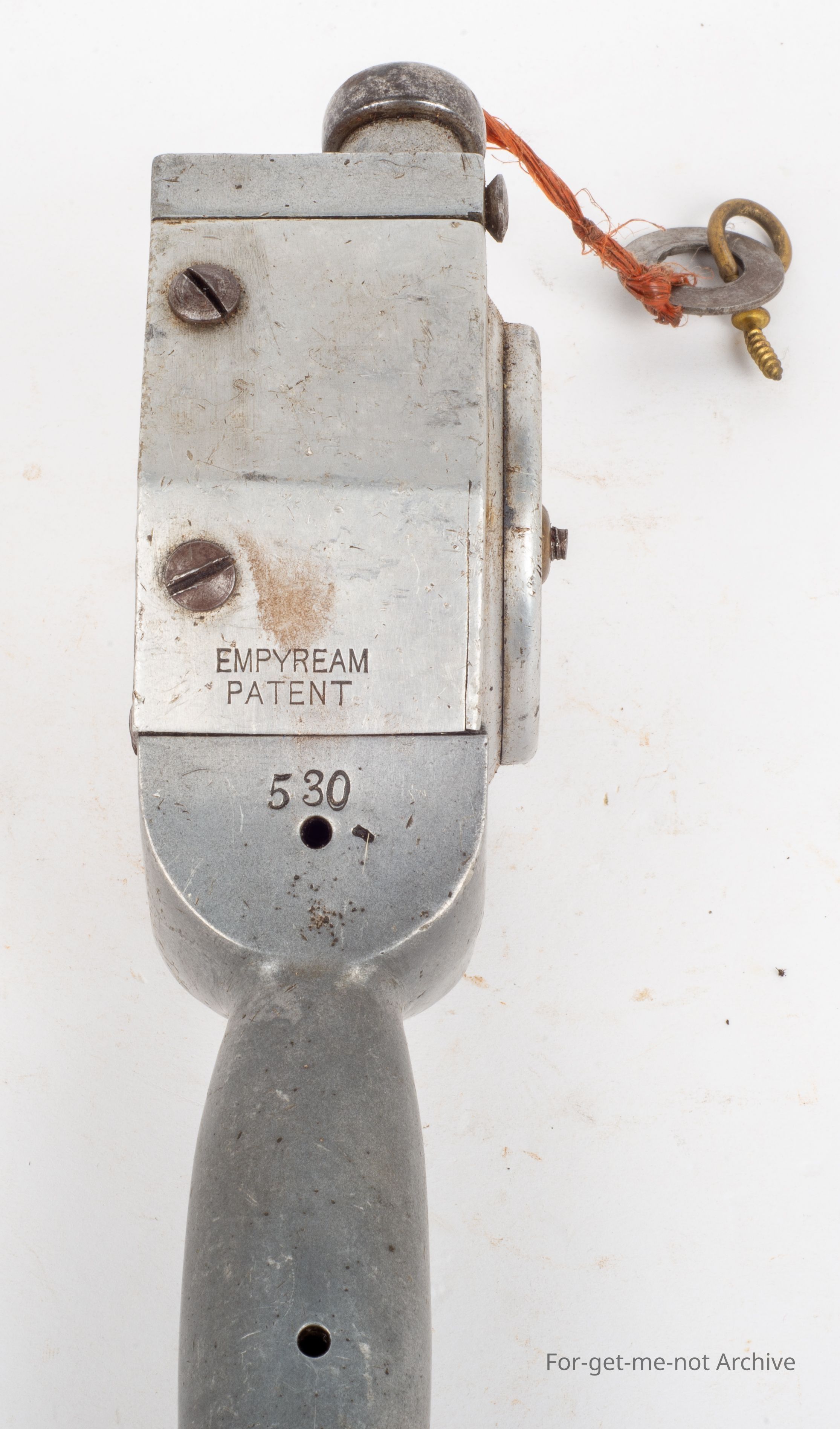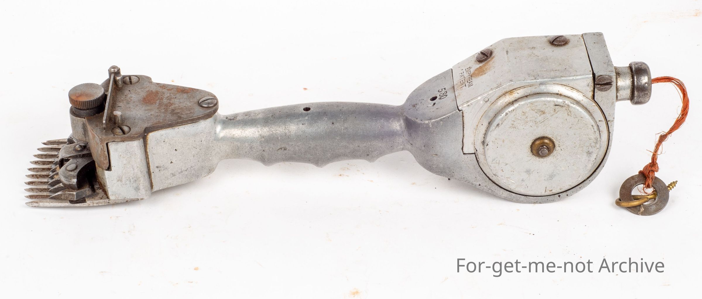The Emprium. Was also known as the McLeod in the 1890's in Australia and was a copy of the Barnes handpiece from England, Very unusual, of alloy body construction. This has a 9 tooth cutter which is the original one. This was driven from a spring set up in the back and each stroke you did cut the mechanism worked and then it rewound when you put your hand back for the next blow. Very scarce, unusual, probably not a successful one.