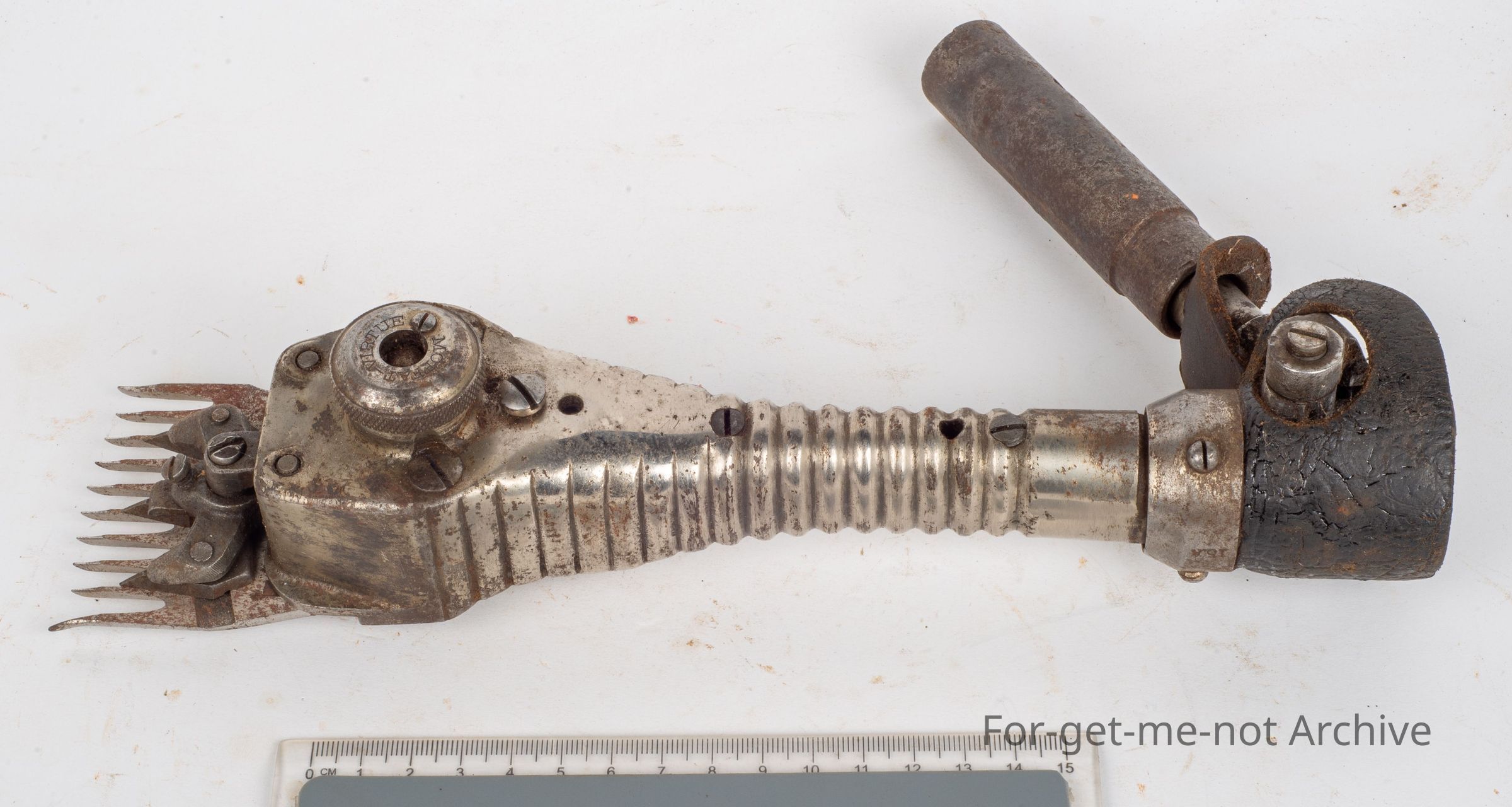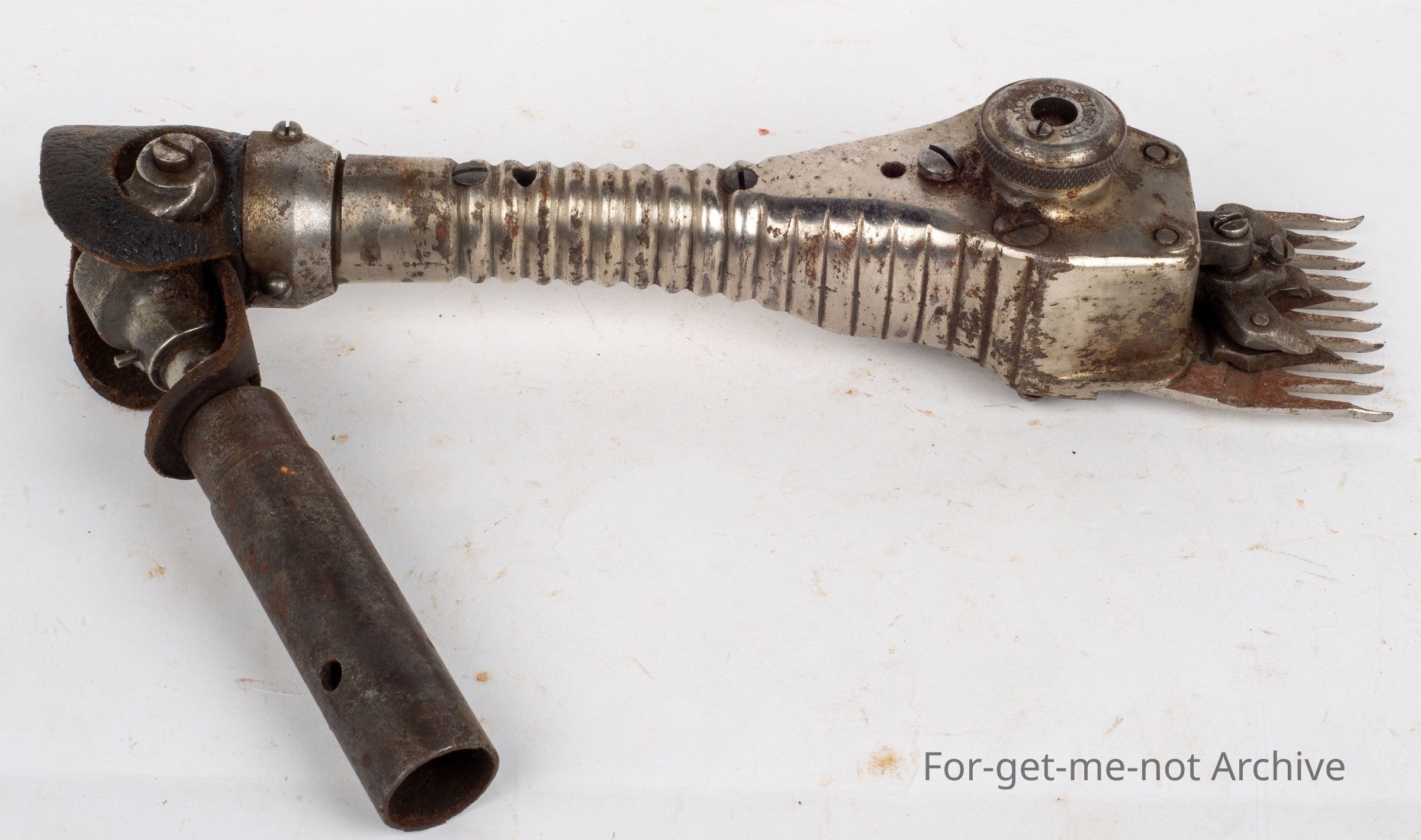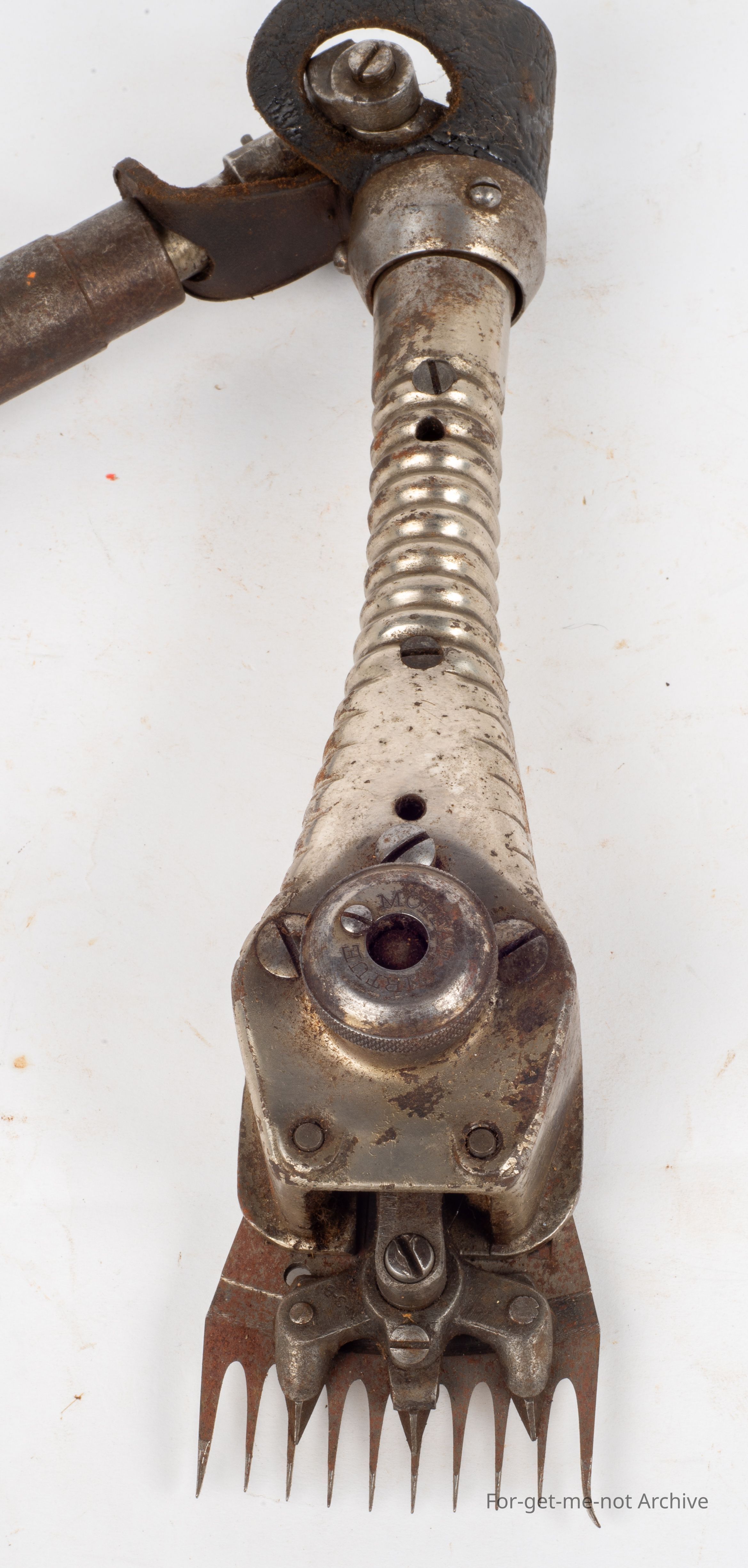 The ribbed body Moffett Virtue in beautiful condition, an Australian handpiece. Moffett and Virtue were from Queensland. Moffett provided the money. Virtue was the engineer. The origin of the manufacturer is unknown at this stage where they were made, possibly in Australia.
