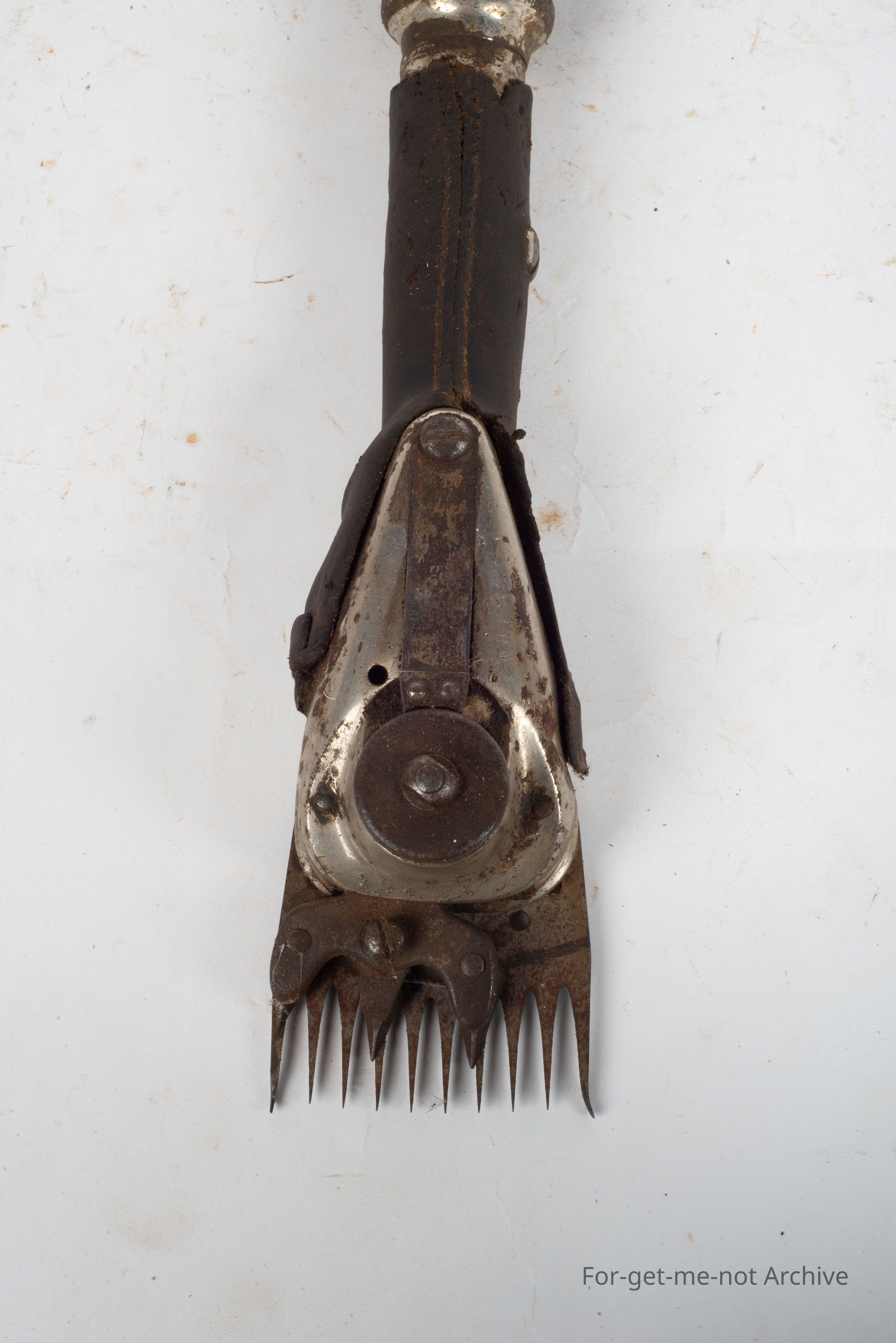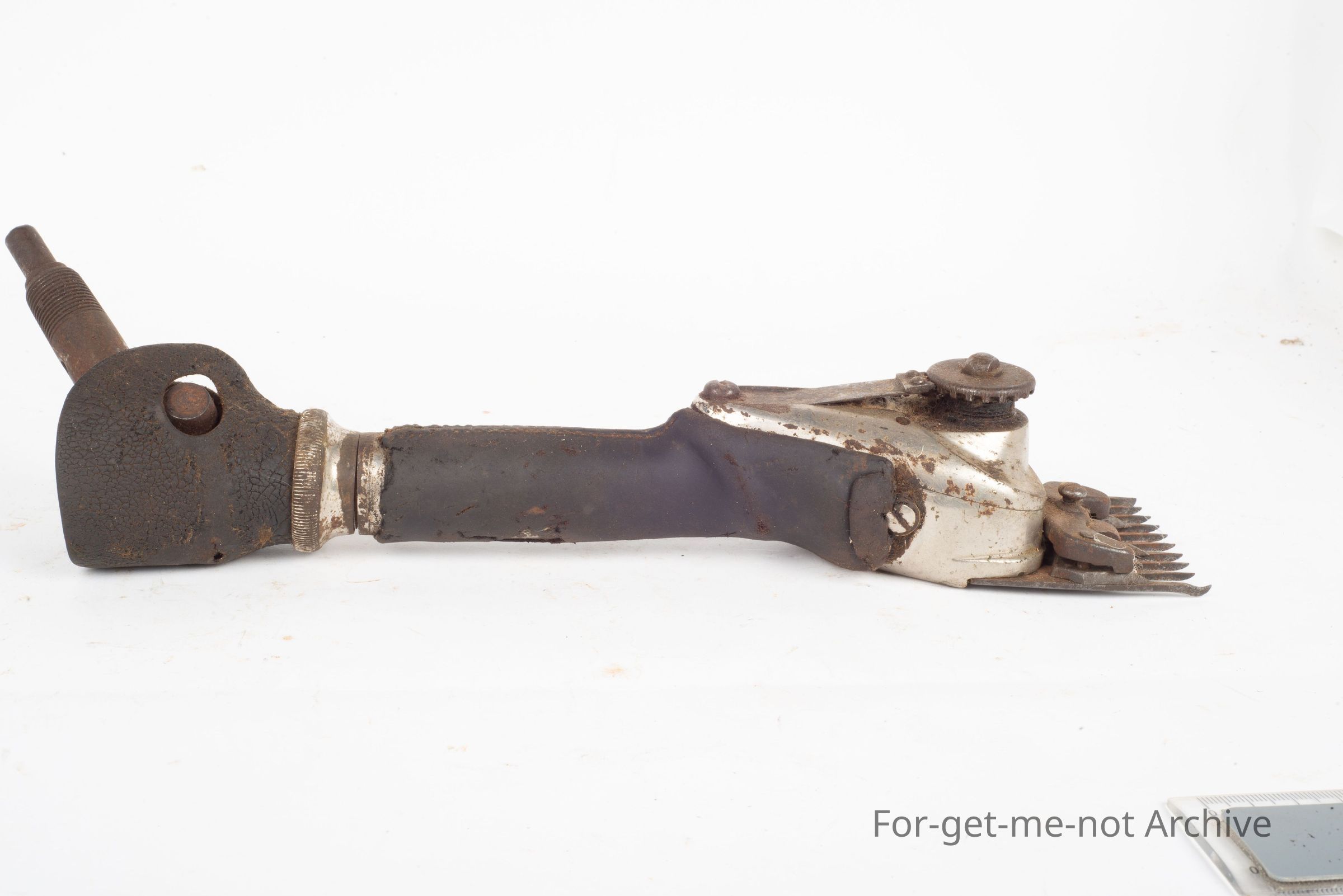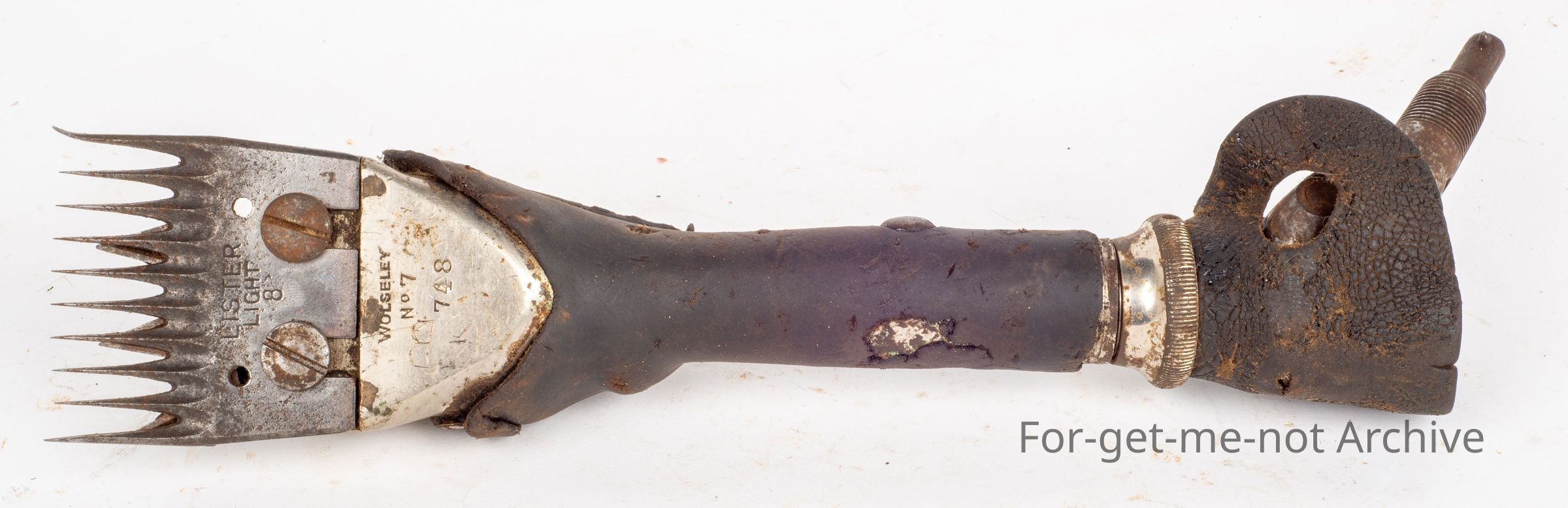A Wolseley No. 7 shaped for a more comfortable grip in the body. These were brass bodied covered in nickel. This is a later model in very good order, all complete with its original cover.