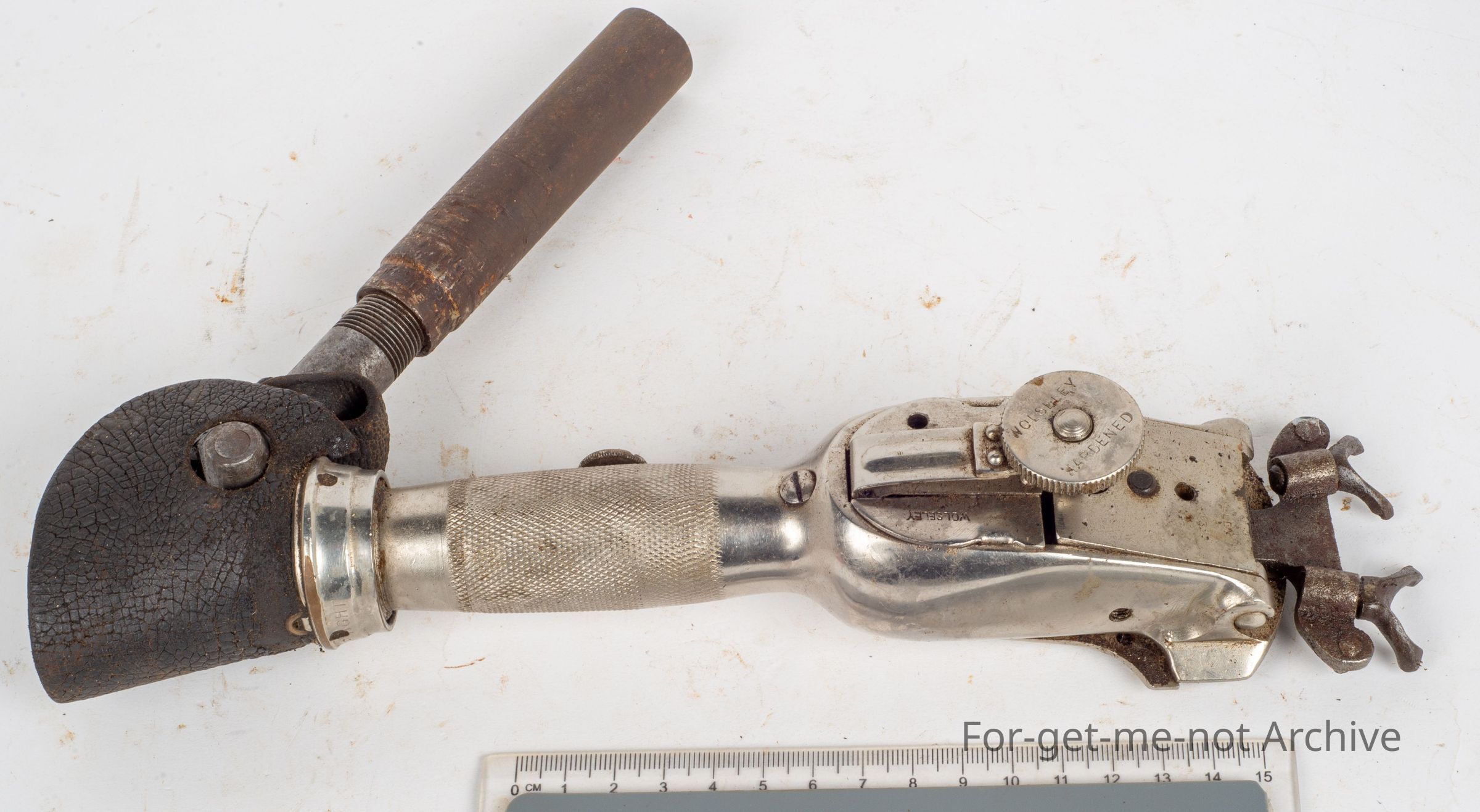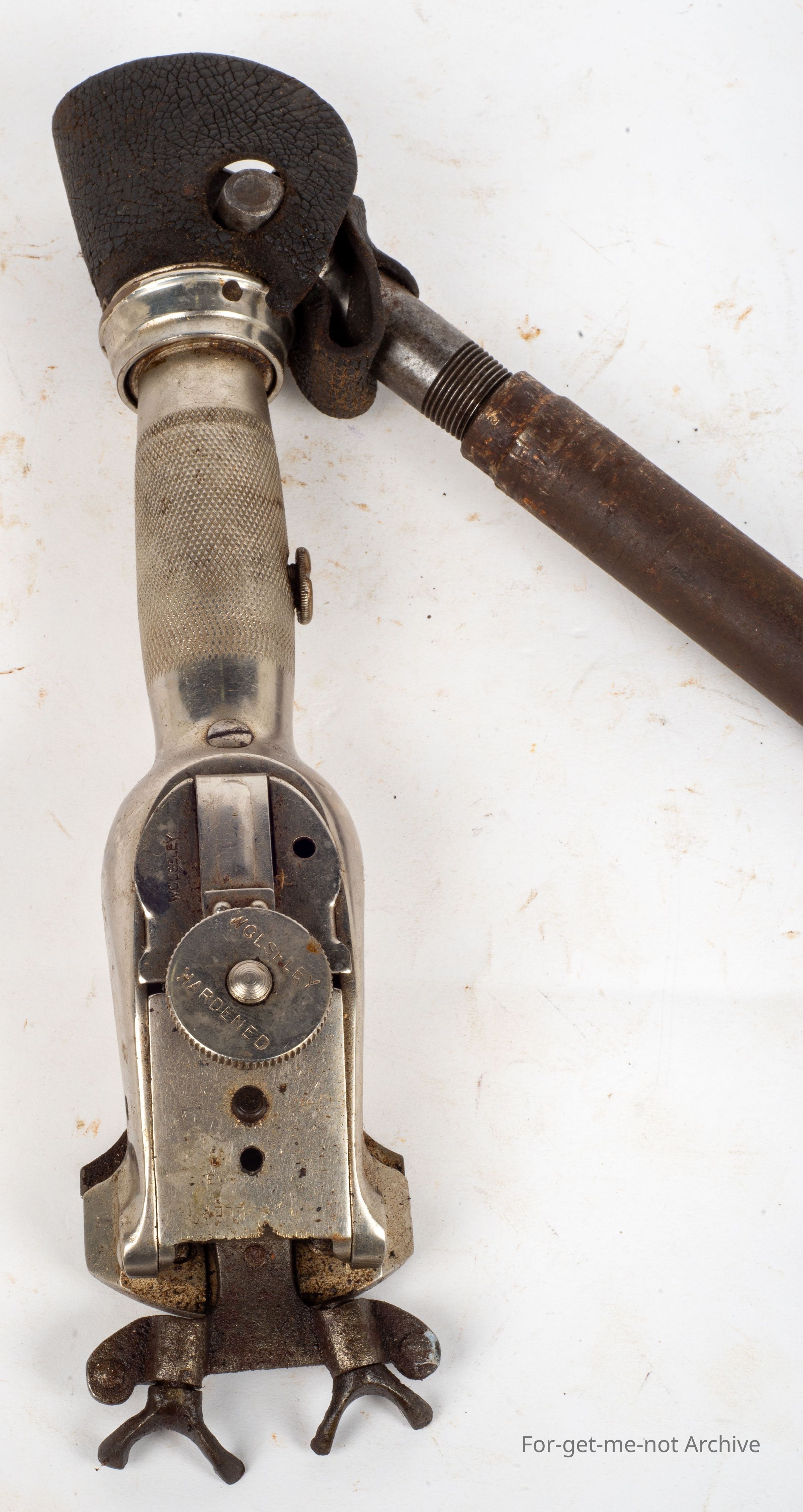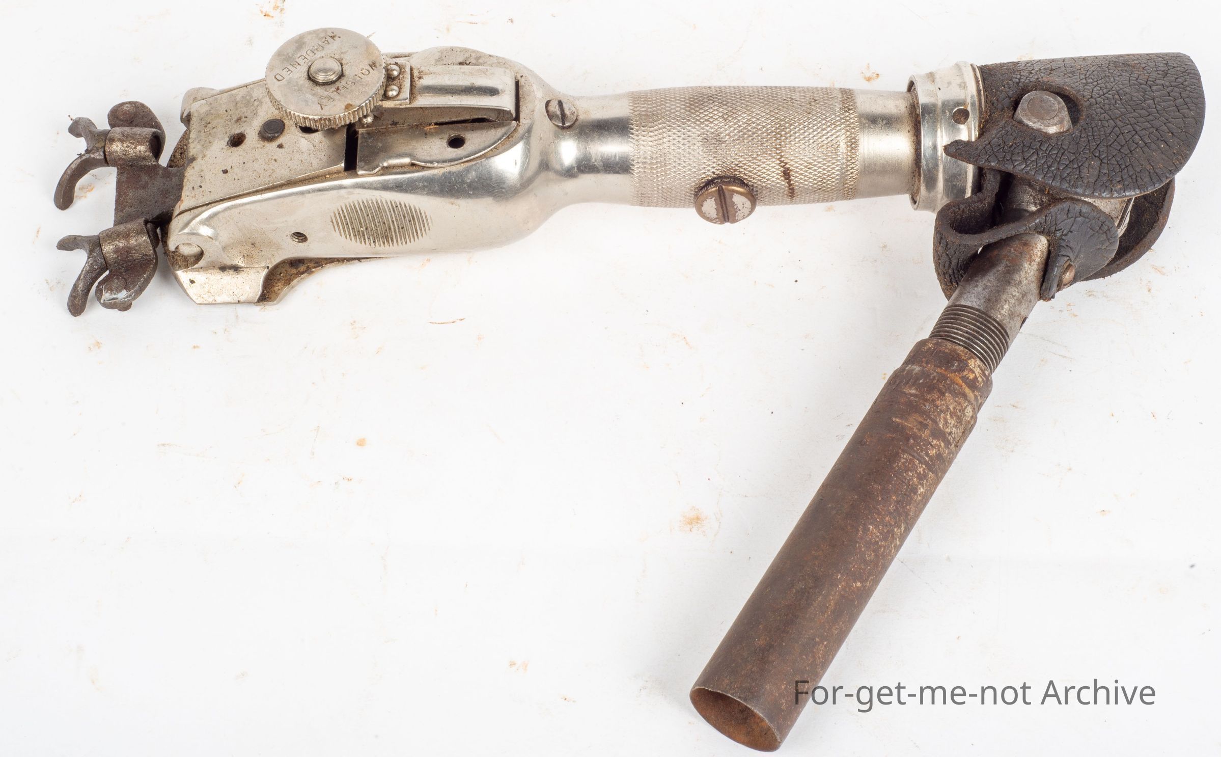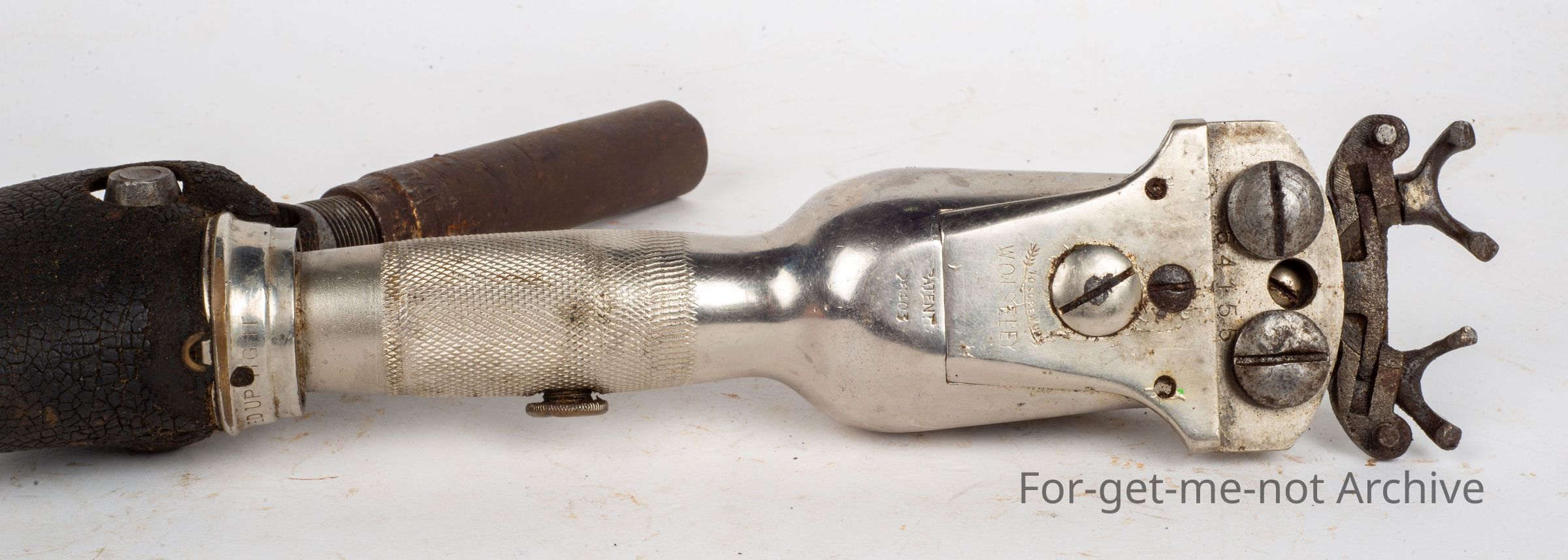 A Wolseley handpiece known as the No.10 This handpiece was fitted with a wide fork on manufacture, mainly used in New Zealand. They were using wide gear before Australia converted over to wide gear from narrow. This one is in excellent order and a part of the history of changing from wide to narrow gear or from narrow to wide.