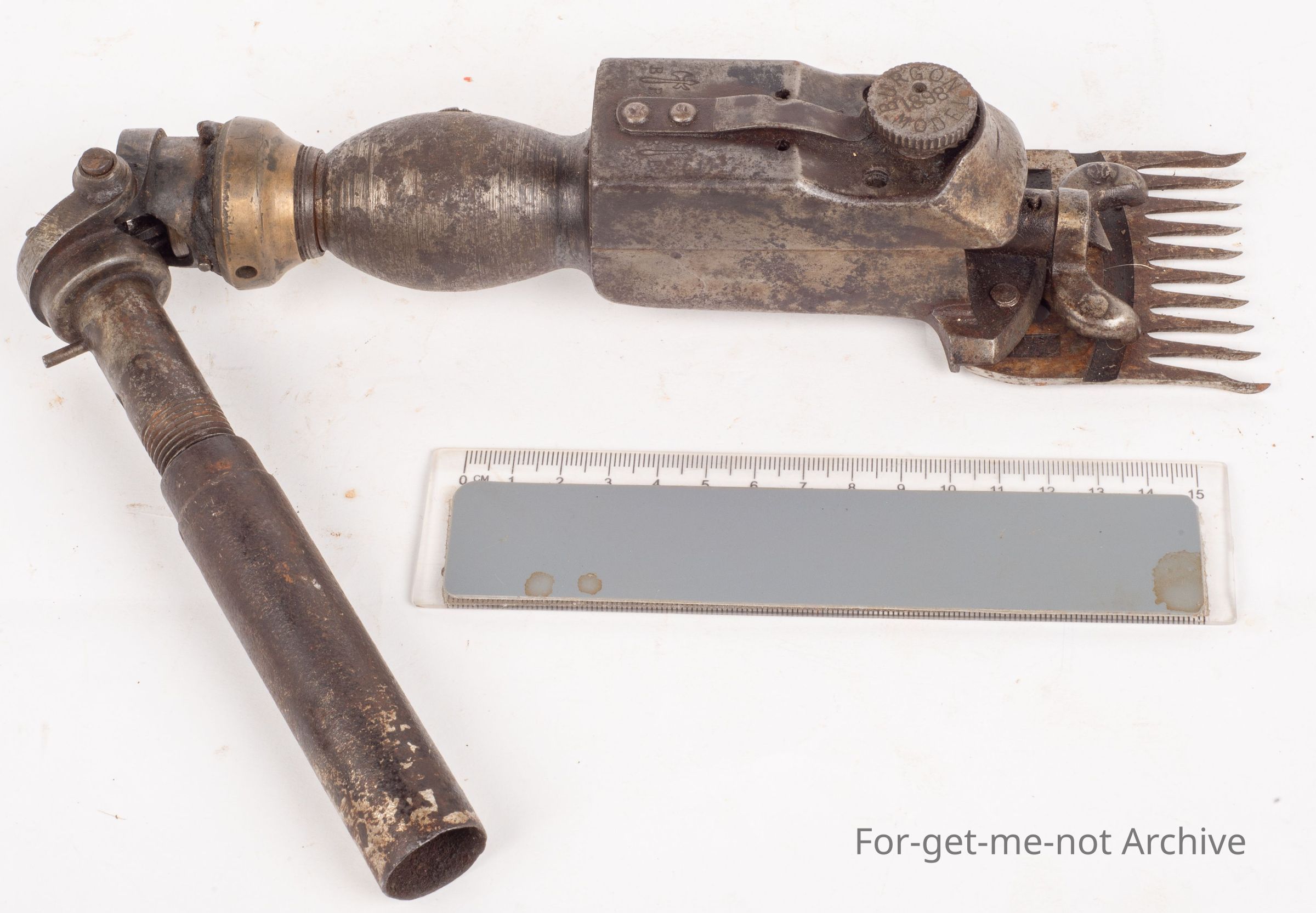 A Burgon and ball, "hot box", 1898. A very square, cumbersome type of a thing to hang on to. It was renowned for getting hot. Quite a rare one. This one is in perfect condition.