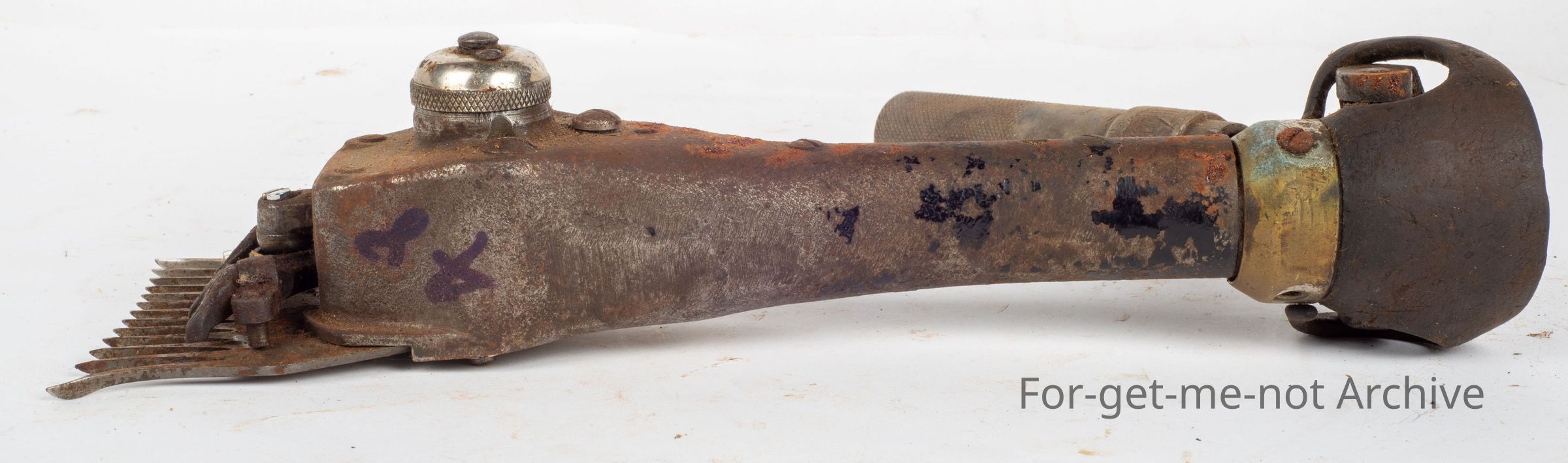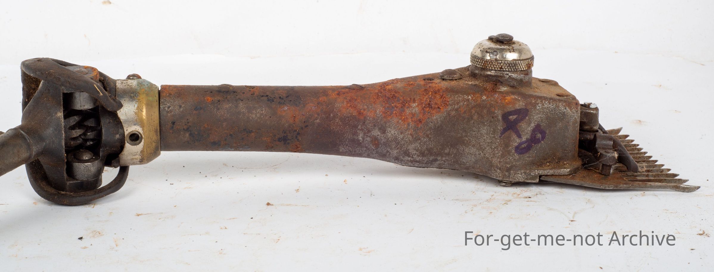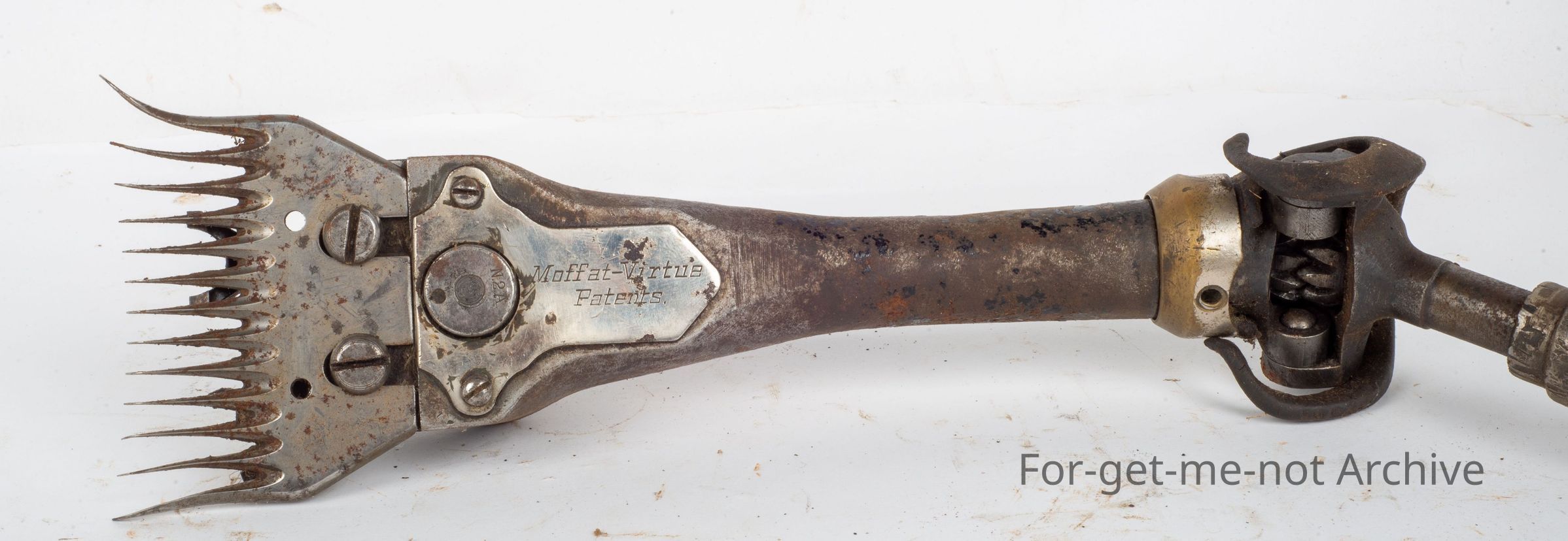 A Moffett Virtue No. 7. The special part about this handpiece is the front which is from a silver. This has been fitted to this handpiece in order to use wide gear. So very likely that it's been originally from New Zealand. This is the No. 7 model which certainly didn't have wide gear in Australia. This one has still got some of the original black paint still showing so incredibly good condition.
