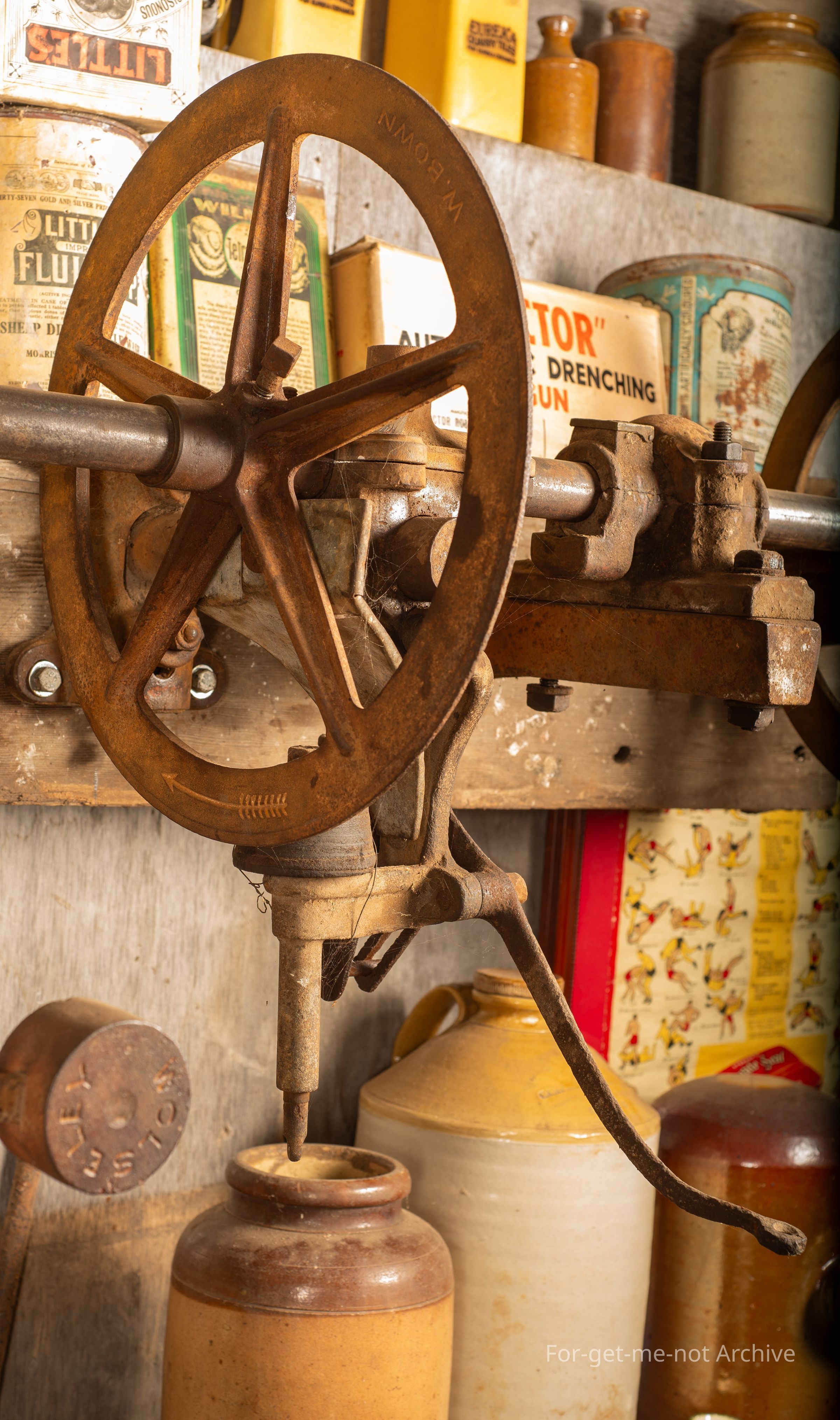 Shearing, This one is from 1890. Wolseley had these made in England under contract because he couldn't keep up for the demand that the graziers could see this was going to be the way to get sheep shorn. This one was made by a company called Bowen. Once again, it is all complete and in working order. Quite hard to find.Collection