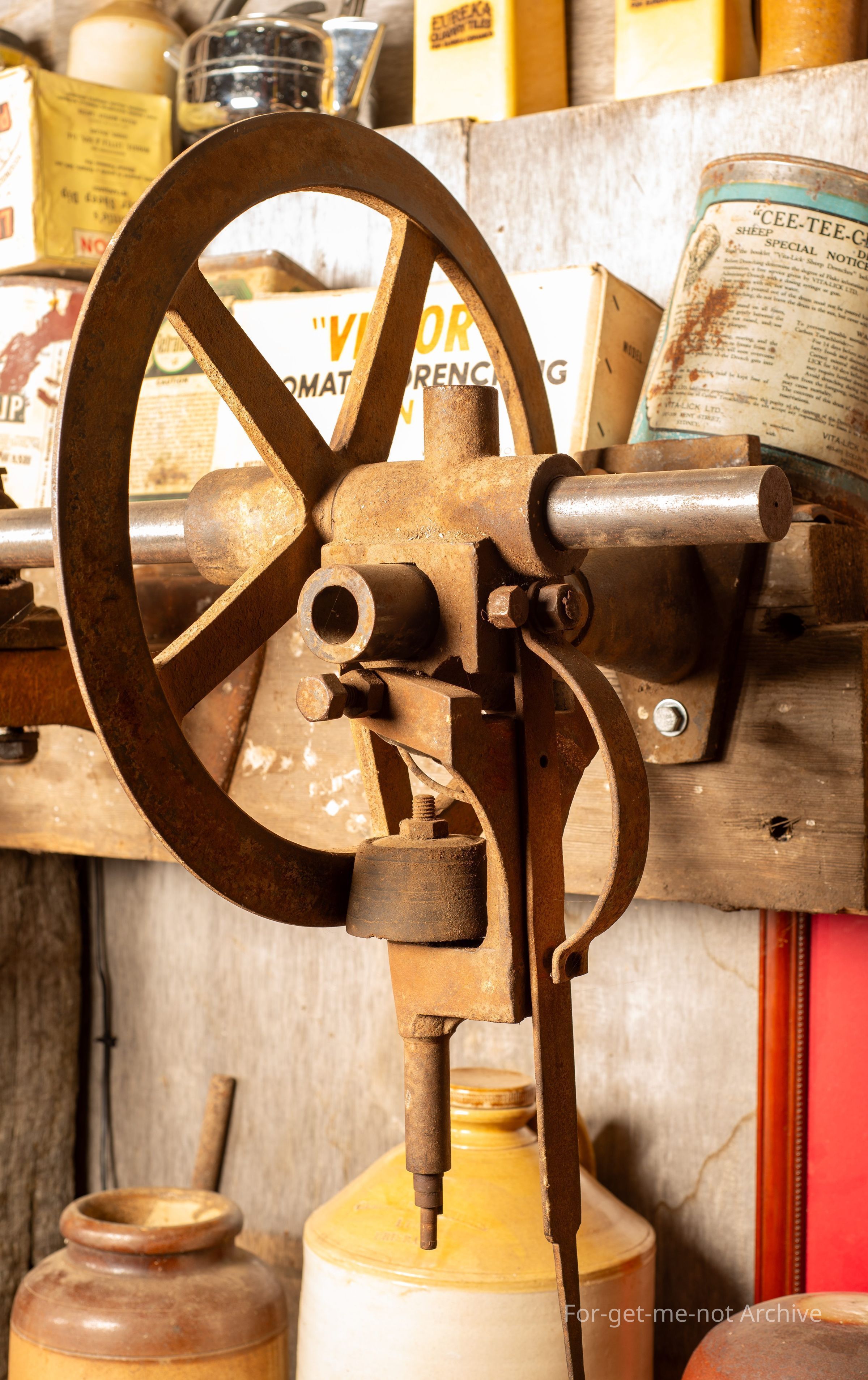 Shearing industry. This is a, a model of the shaft driven shearing from 1889. This, piece is was constructed by Fred Wolseley. He had this built in Melbourne, under contract. This is extremely rare to see it all complete in working order.Collection
